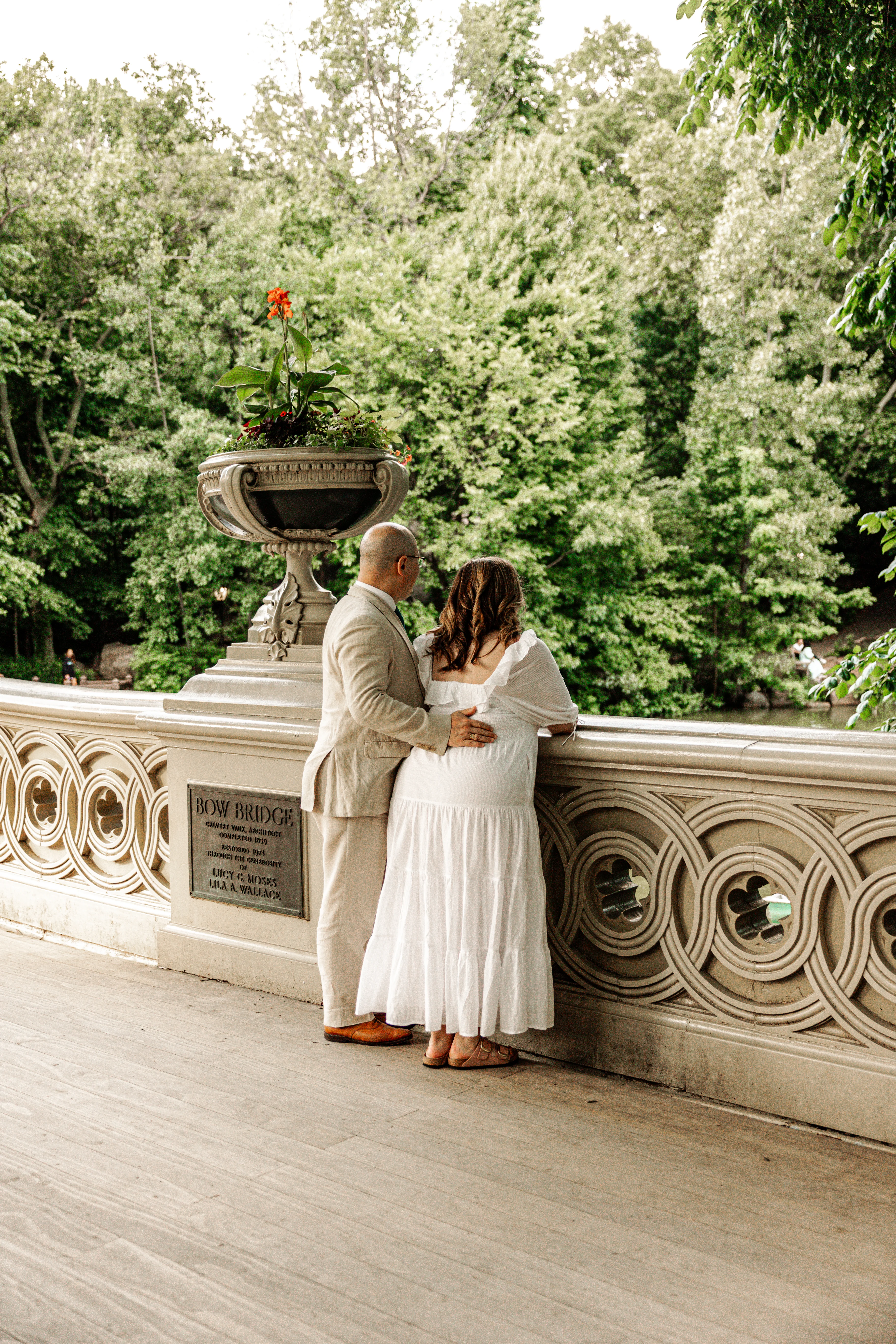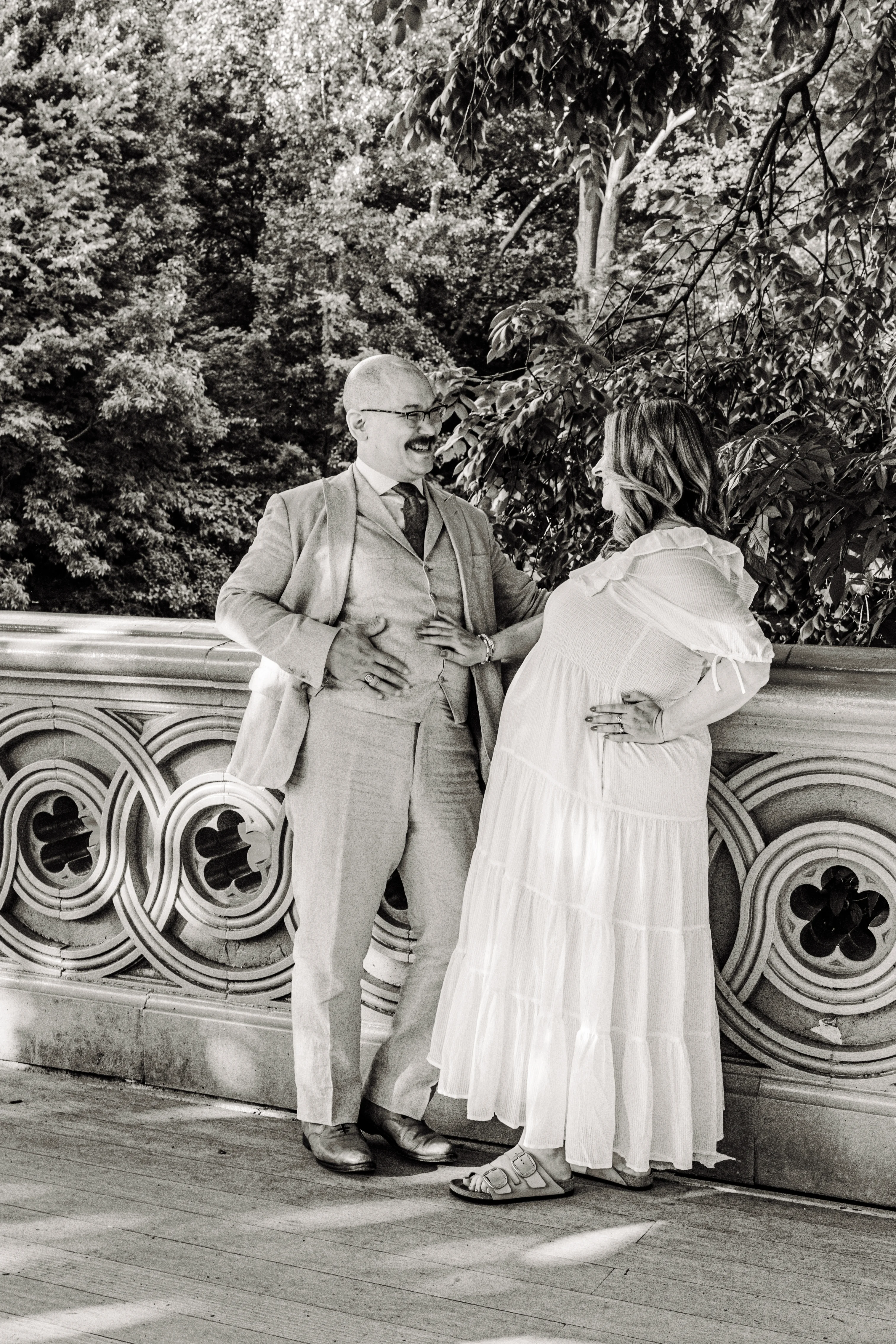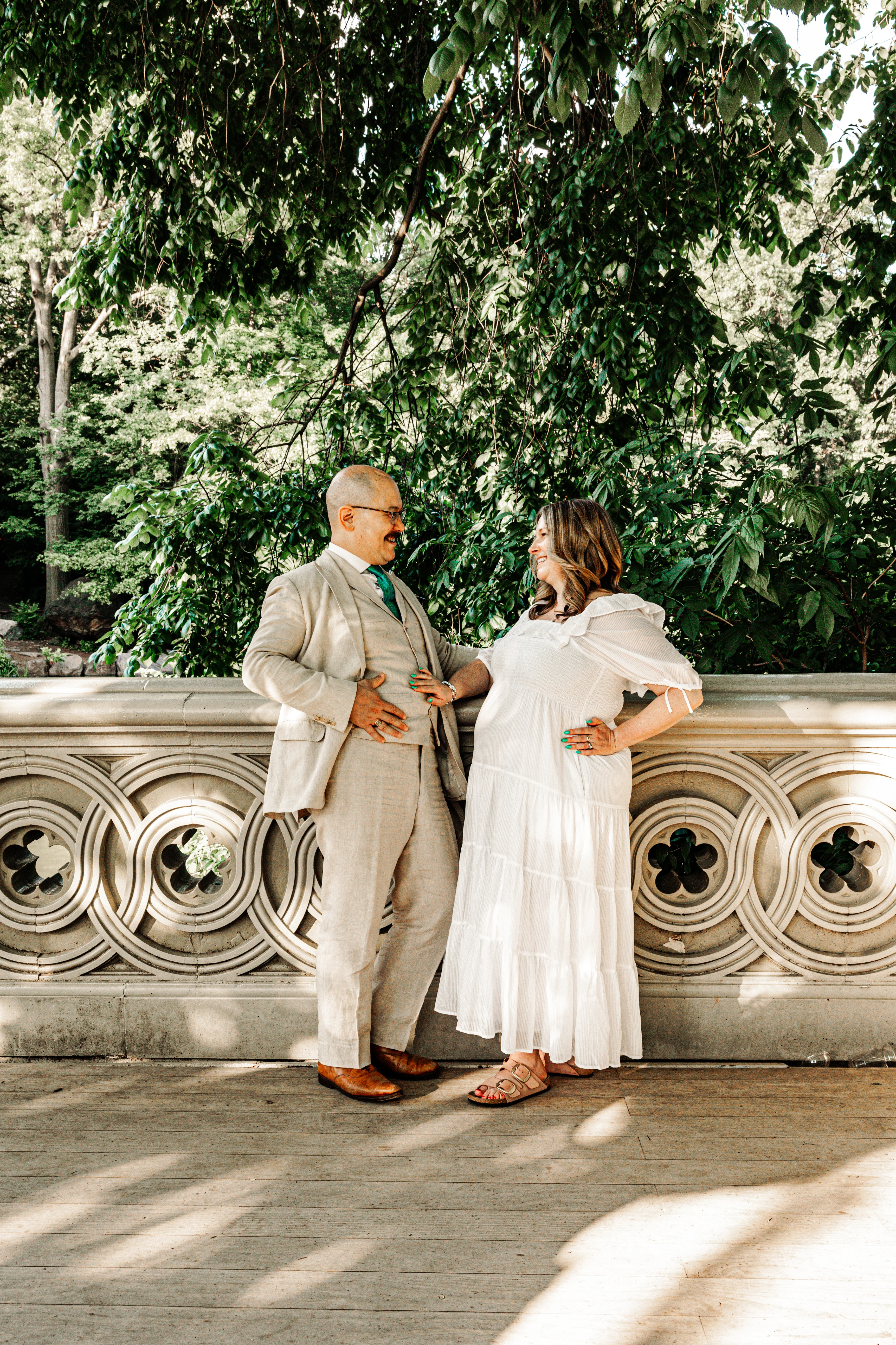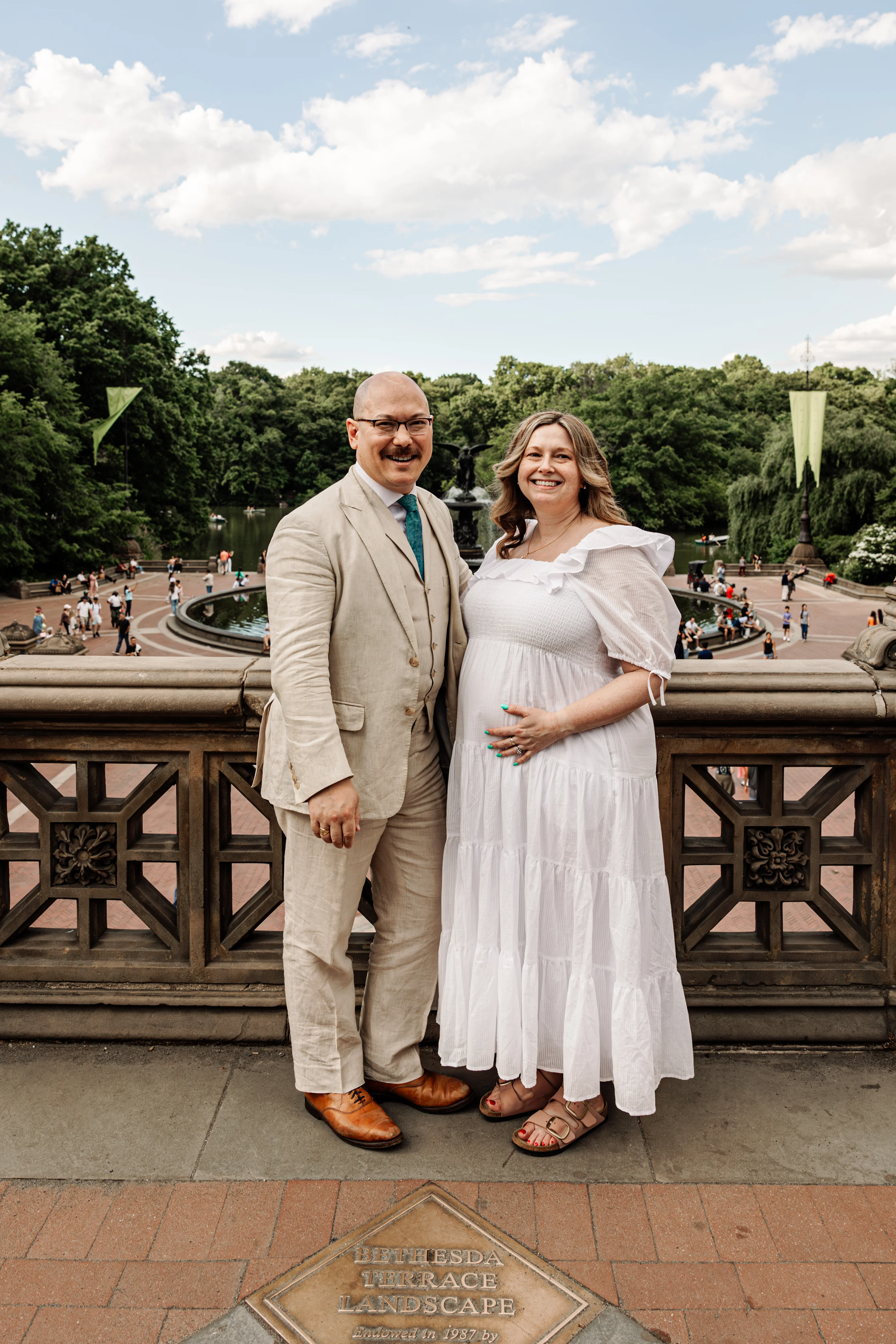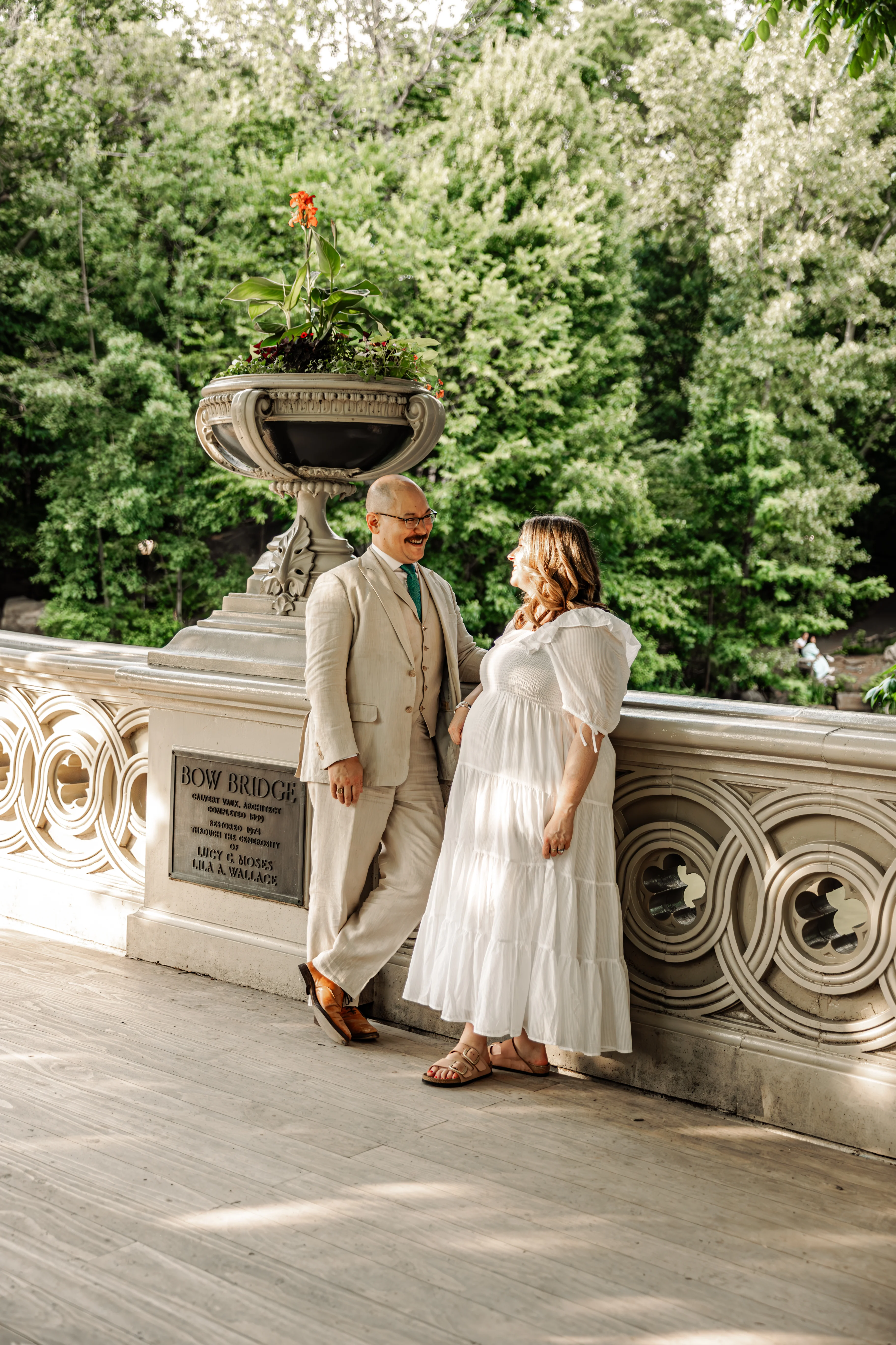 Alison and Frank had both worked a full day when they showed up to Central Park at 5:30 on the dot — Alison nine months pregnant, somehow having squeezed in the perfect blowout, stunning in a white dress. Frank, dapper as ever in a three piece suit, completely in awe of his wife. Not a hair out of place — well, Frank doesn't have any, but you get the idea.