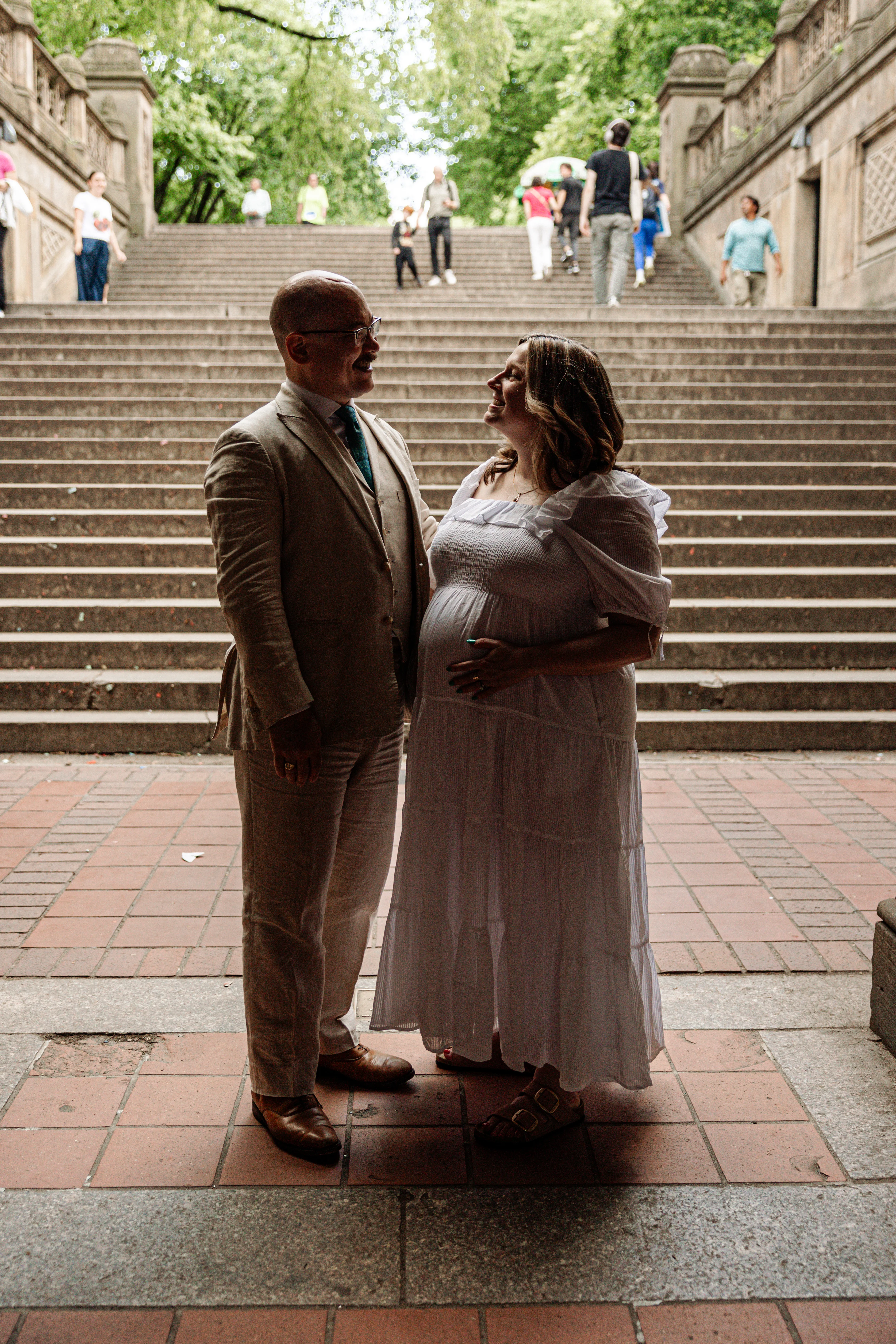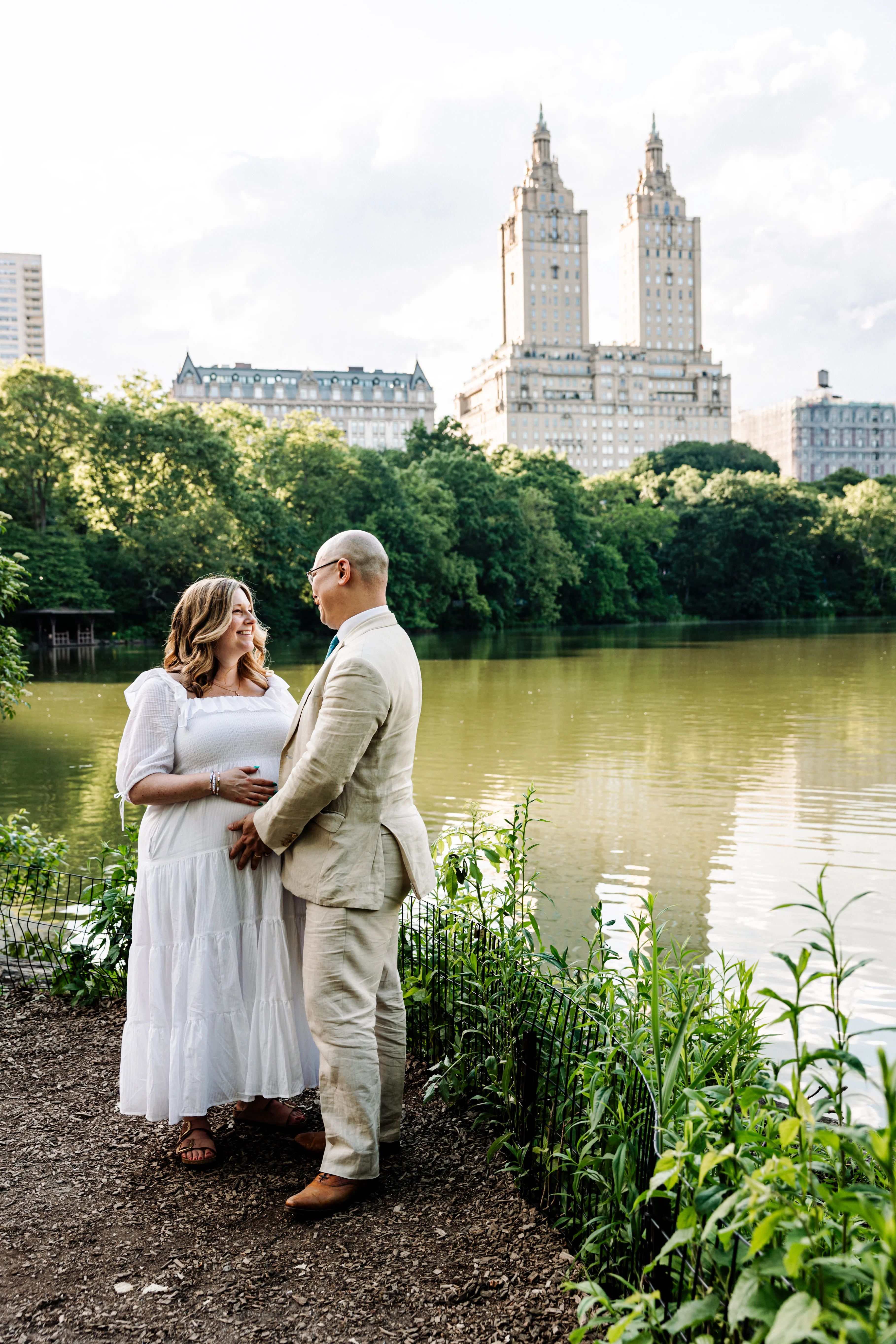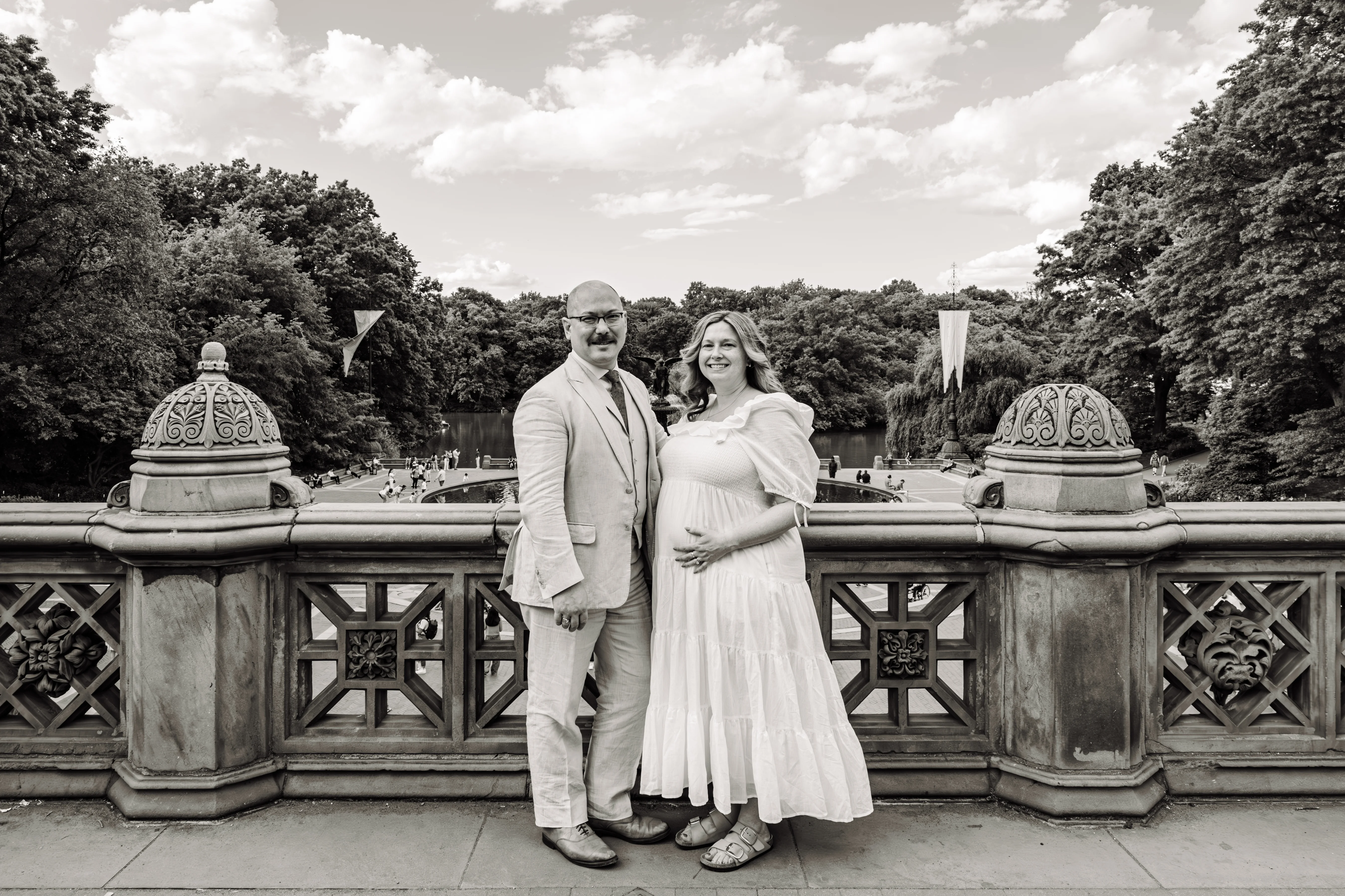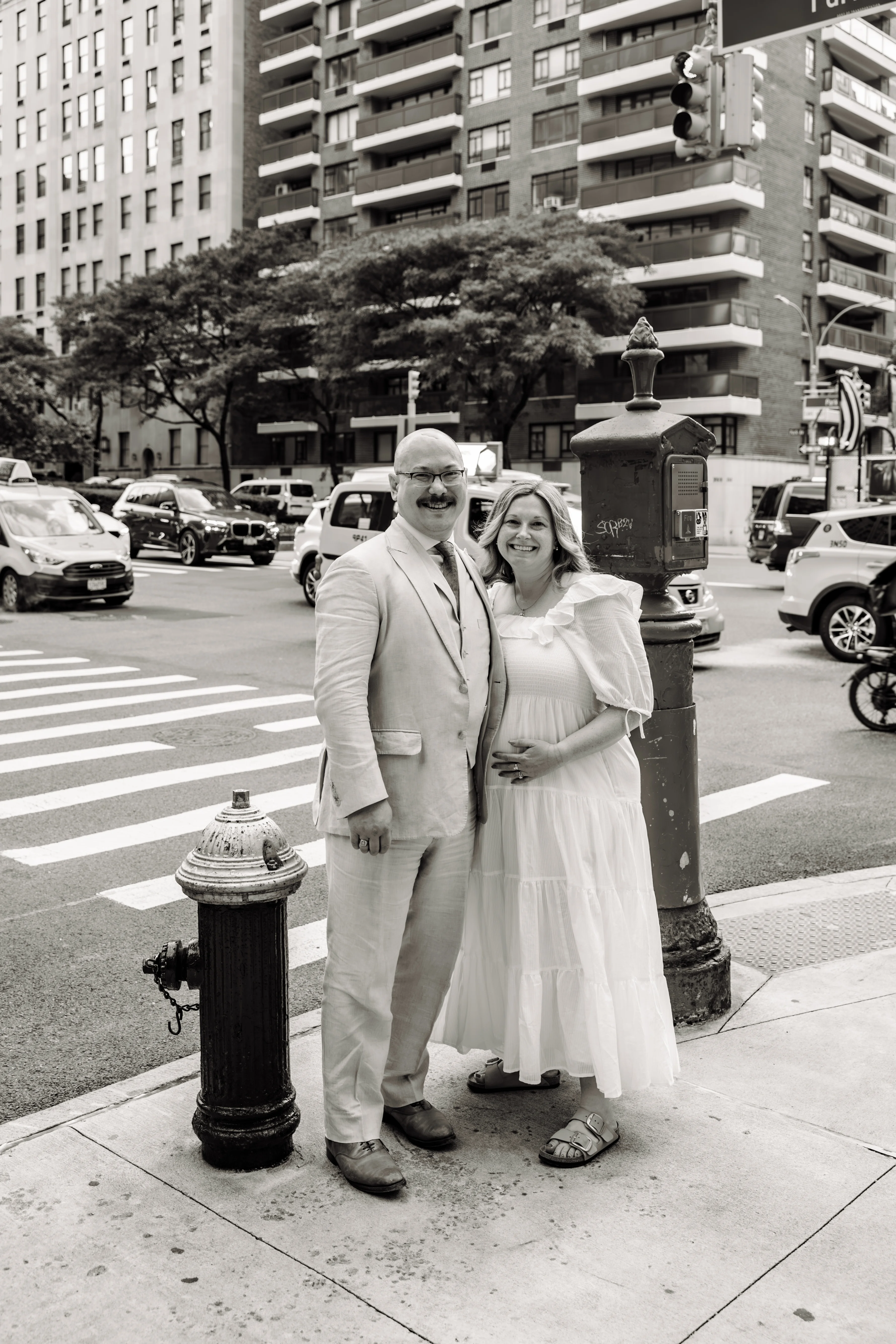 Alison and Frank had both worked a full day when they showed up to Central Park at 5:30 on the dot — Alison nine months pregnant, somehow having squeezed in the perfect blowout, stunning in a white dress. Frank, dapper as ever in a three piece suit, completely in awe of his wife. Not a hair out of place — well, Frank doesn't have any, but you get the idea.