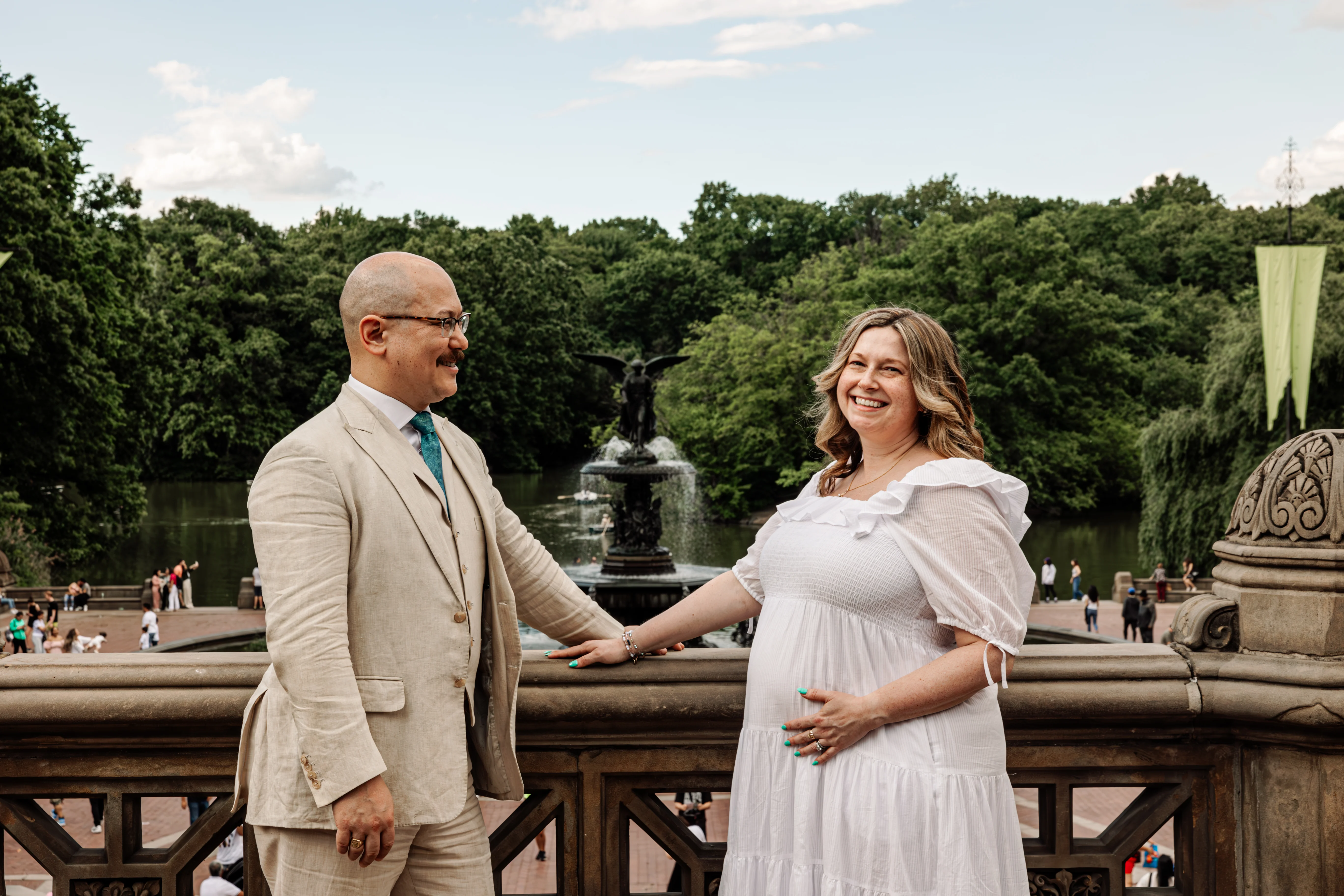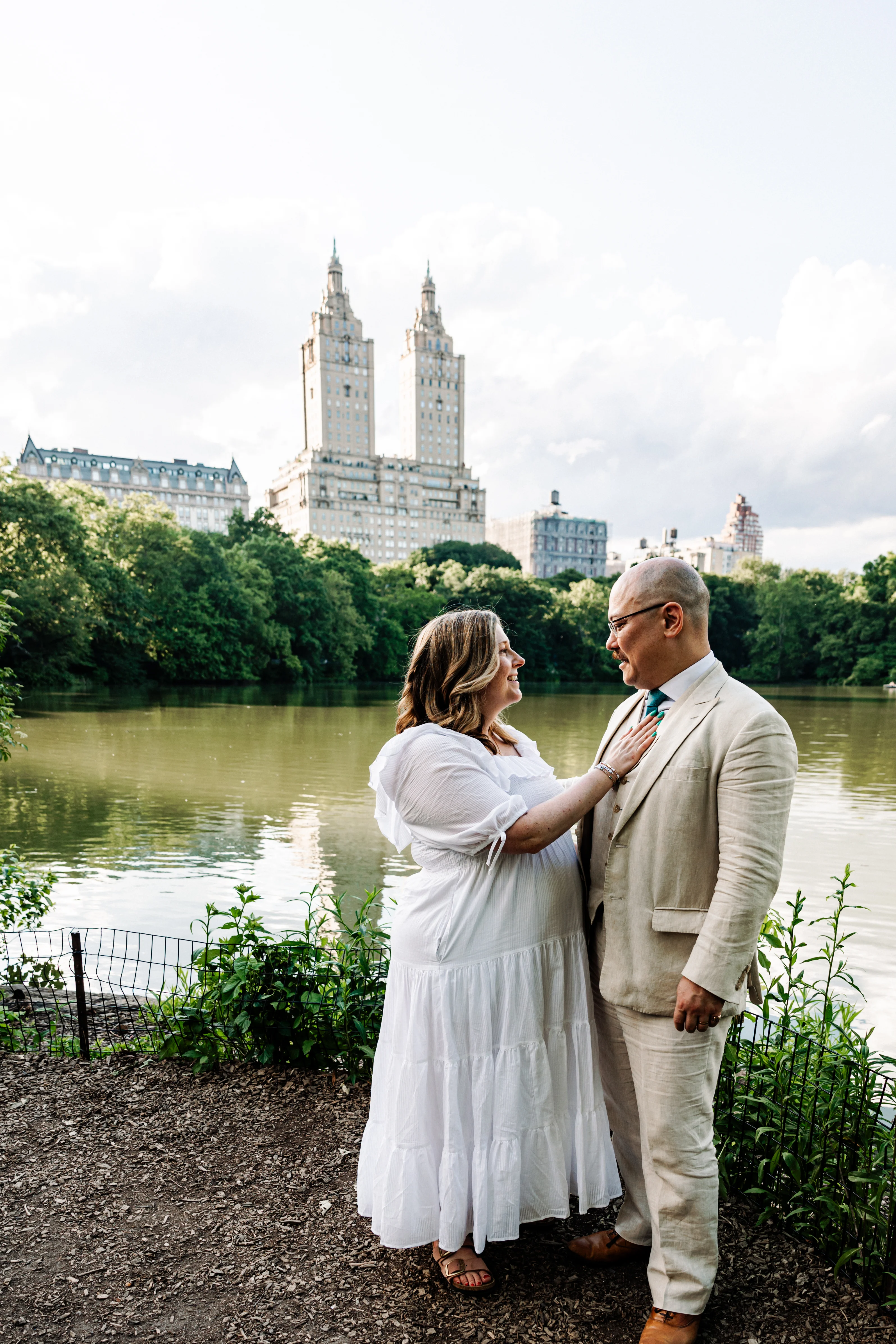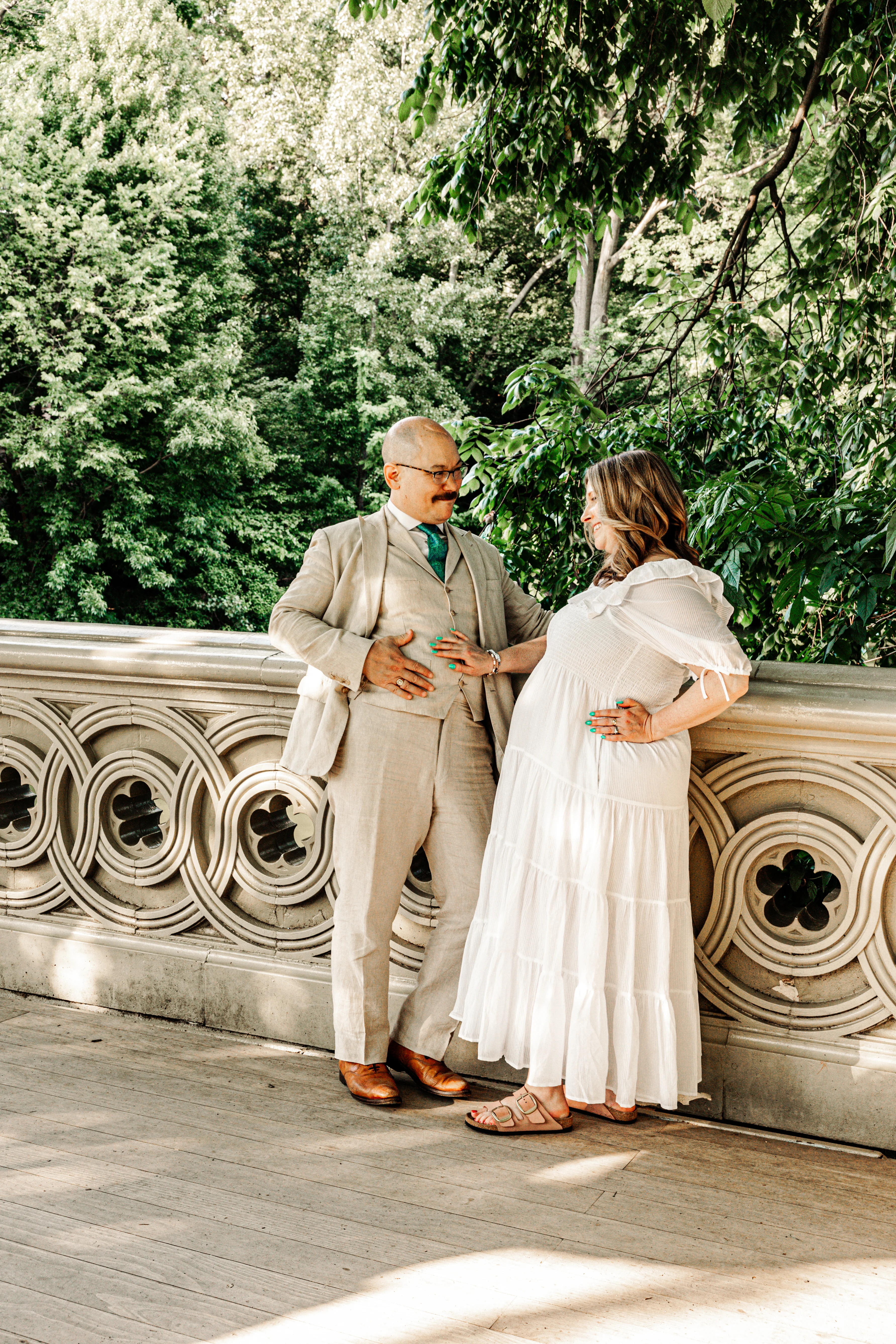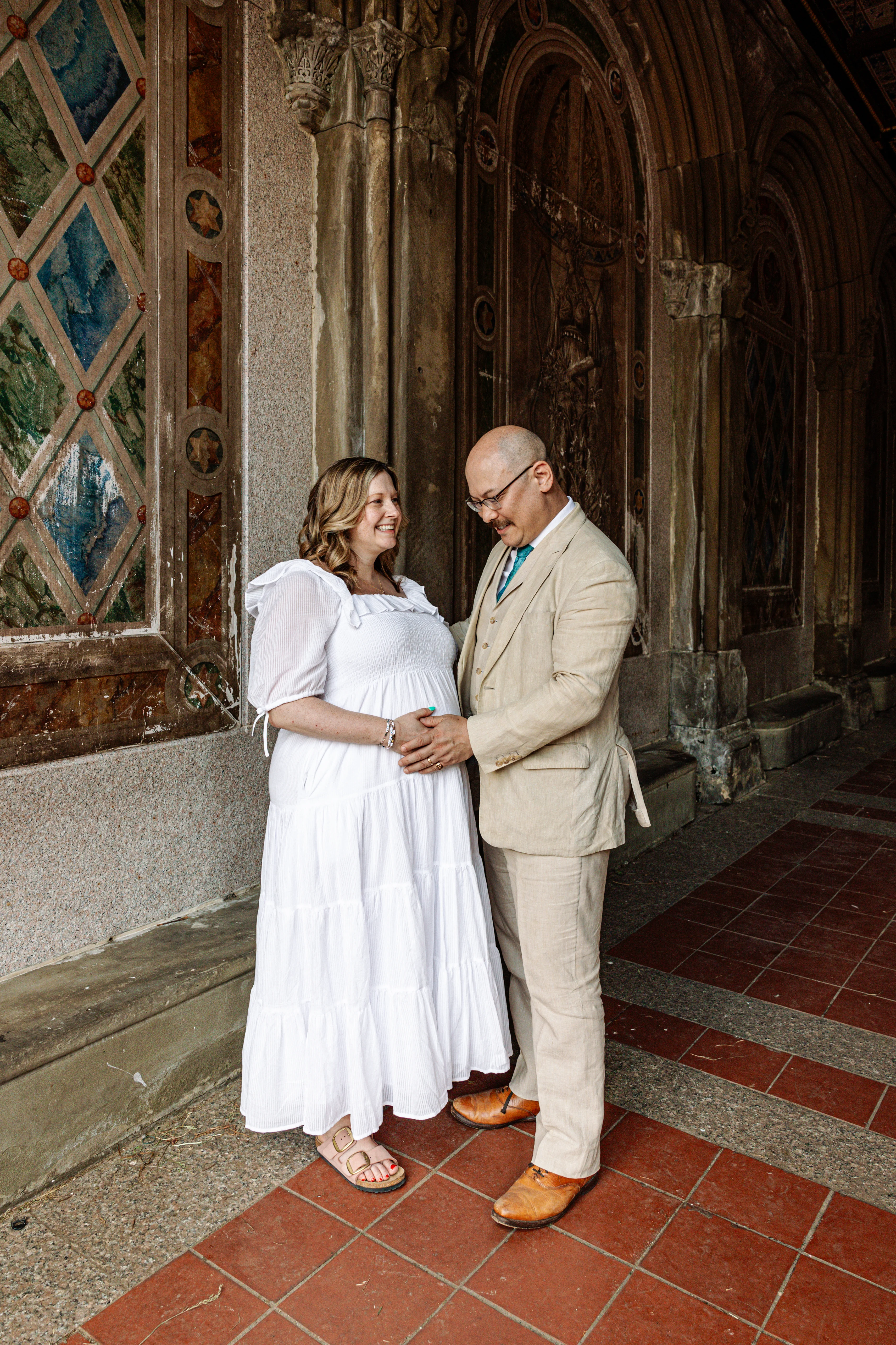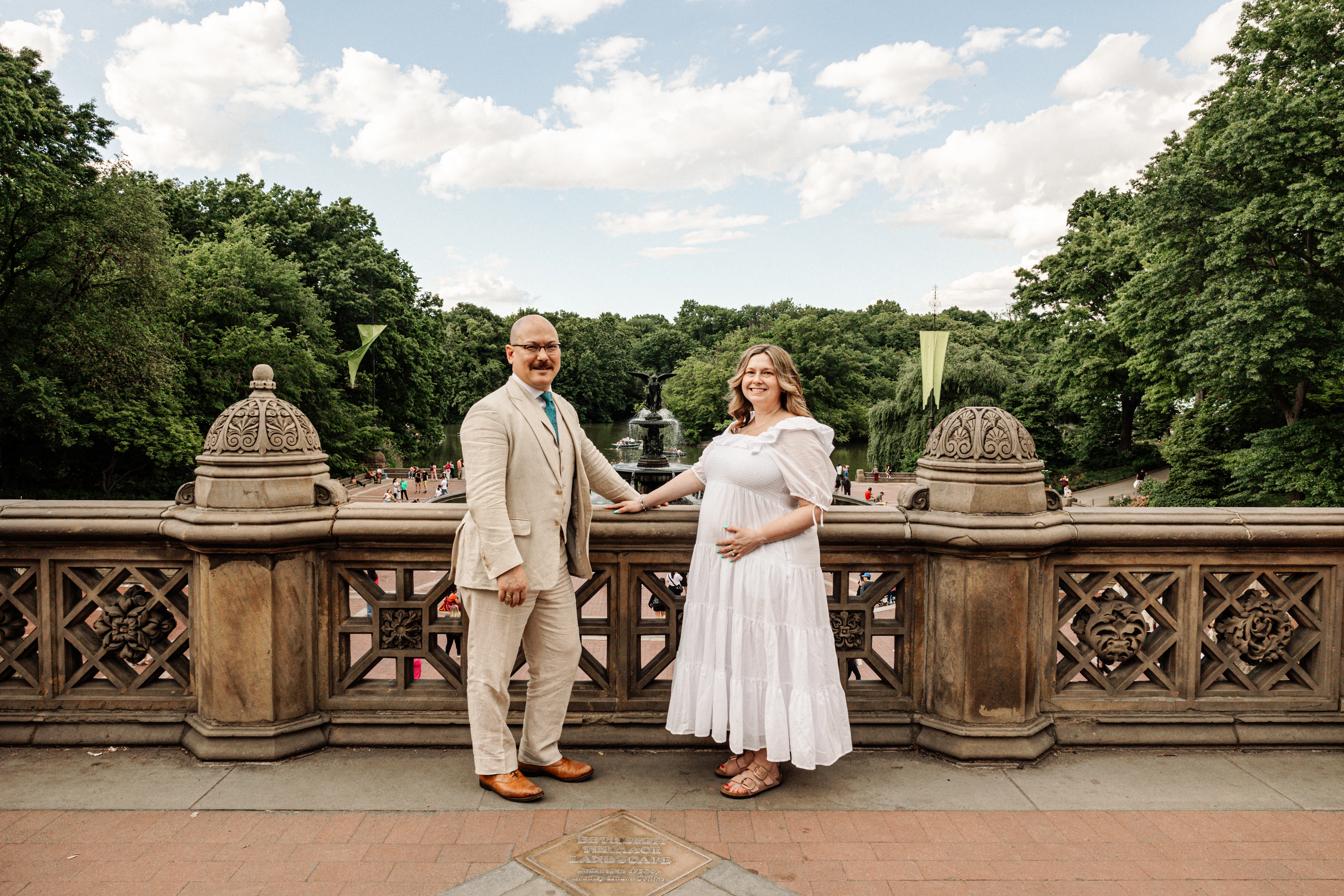 Alison and Frank had both worked a full day when they showed up to Central Park at 5:30 on the dot — Alison nine months pregnant, somehow having squeezed in the perfect blowout, stunning in a white dress. Frank, dapper as ever in a three piece suit, completely in awe of his wife. Not a hair out of place — well, Frank doesn't have any, but you get the idea.