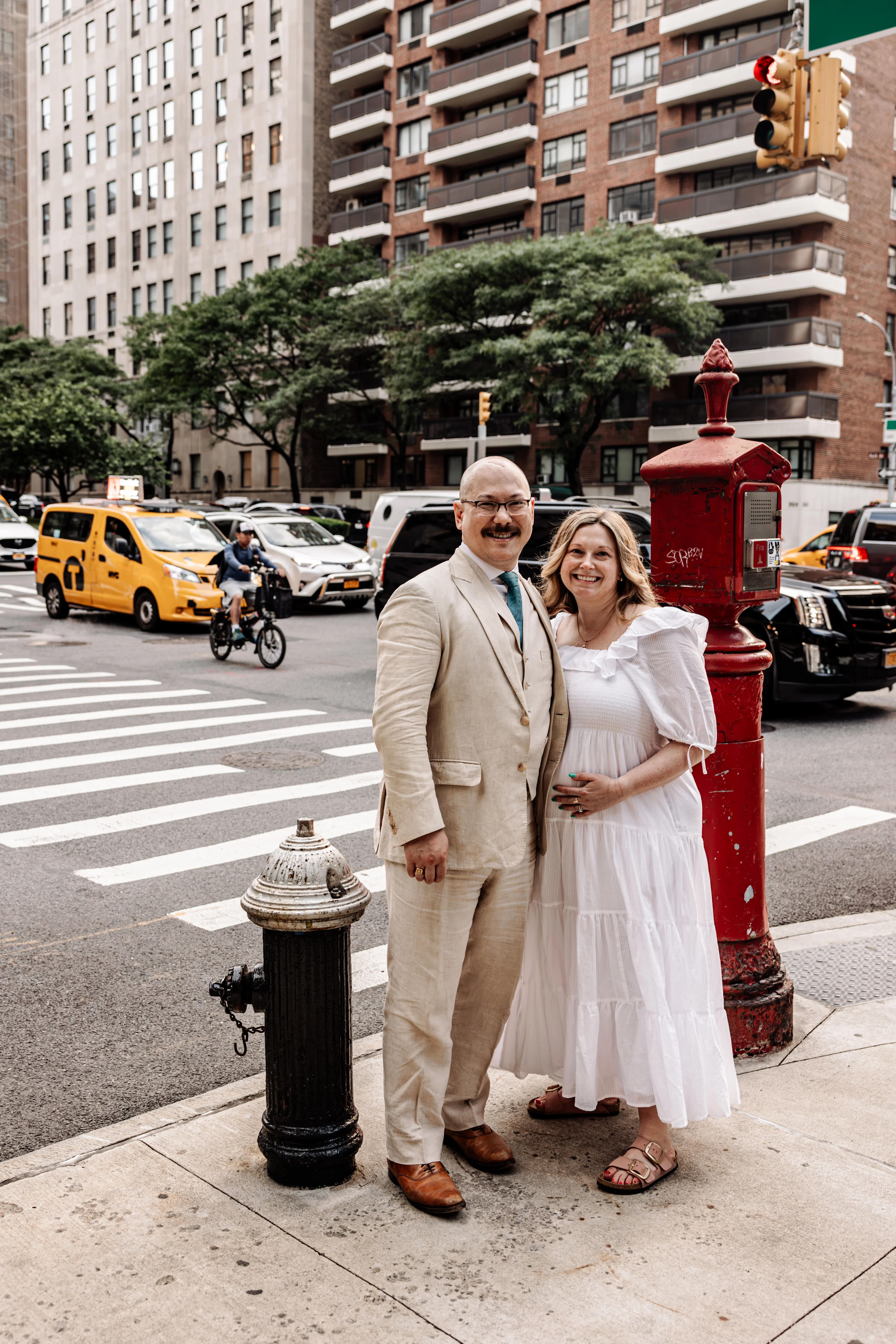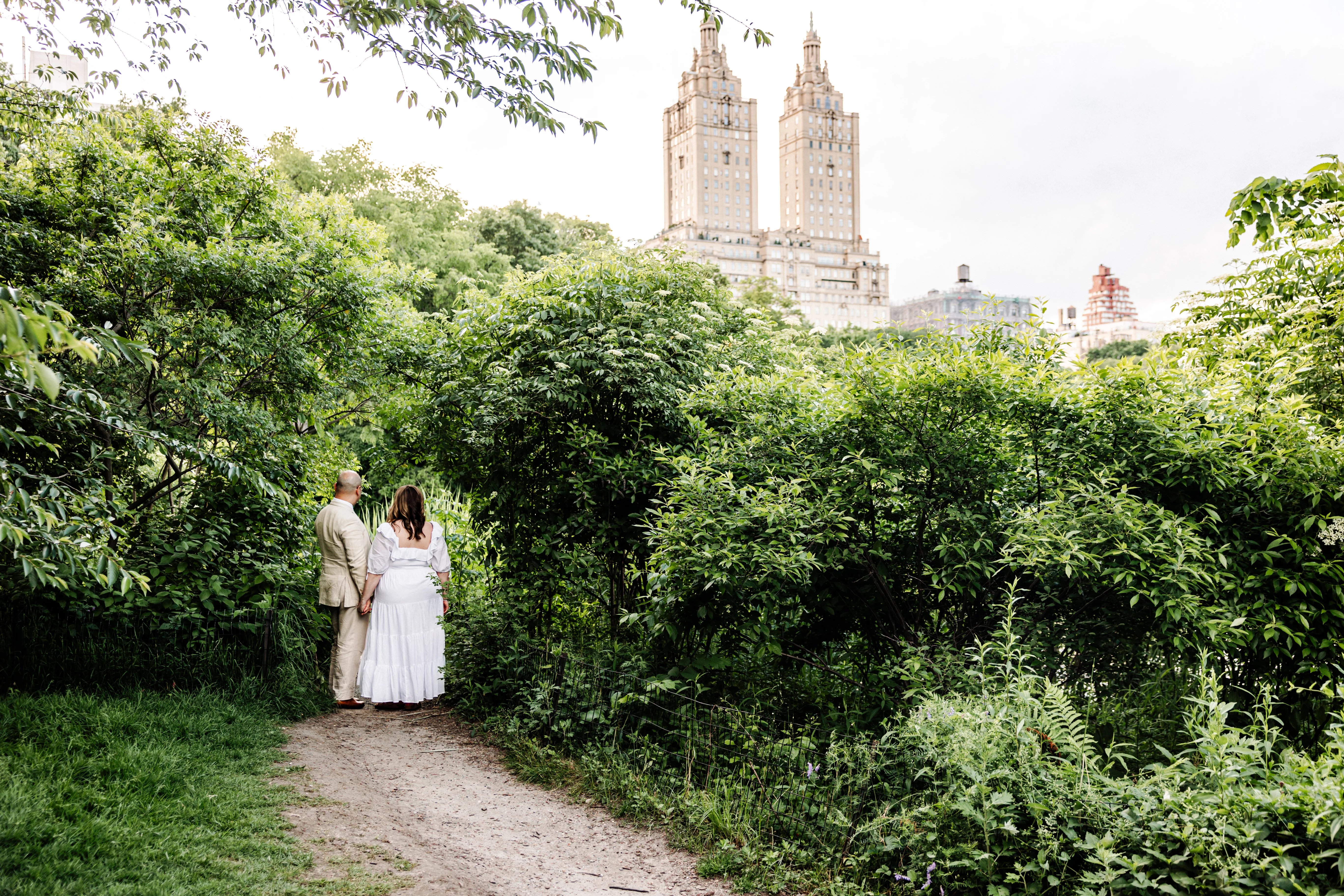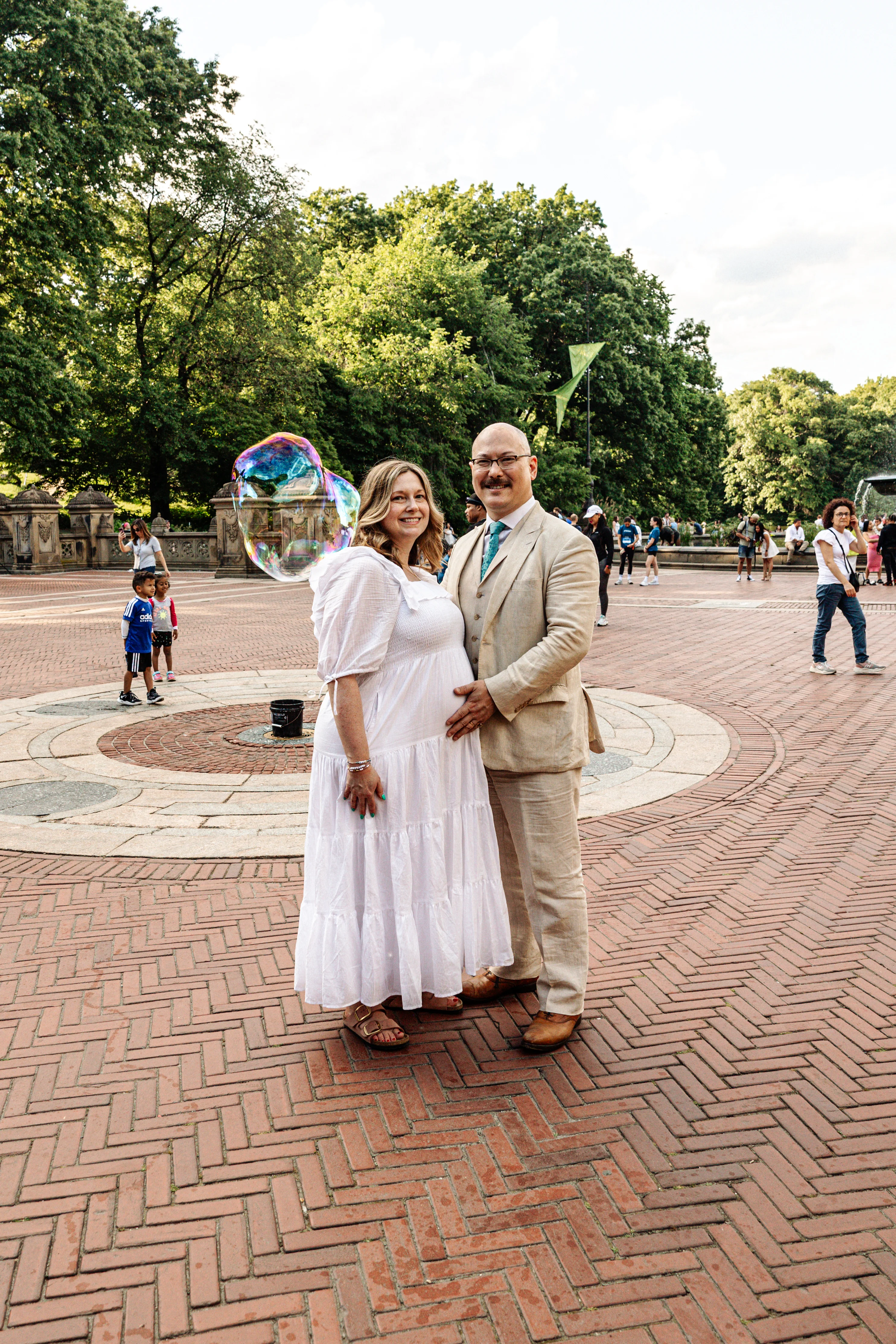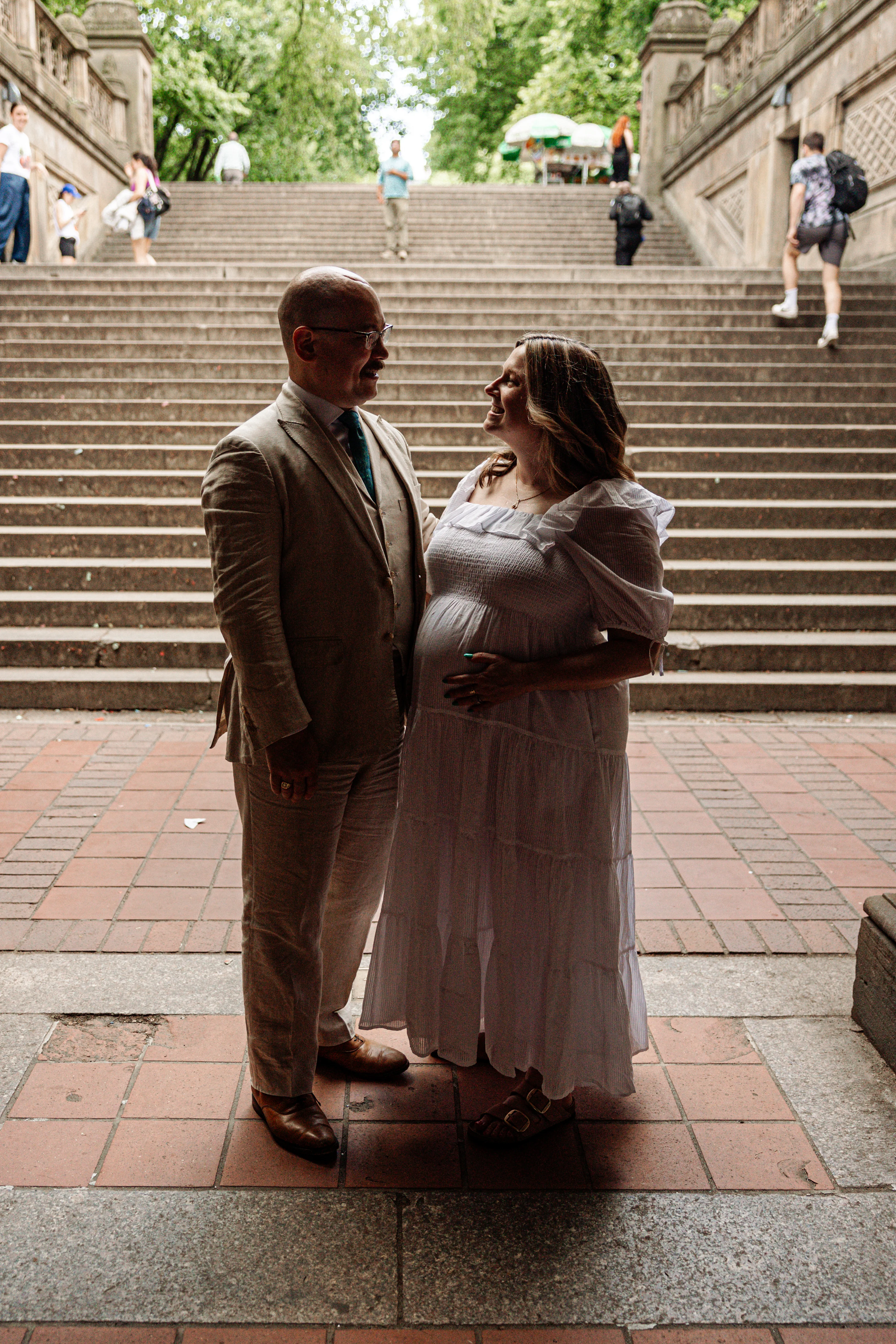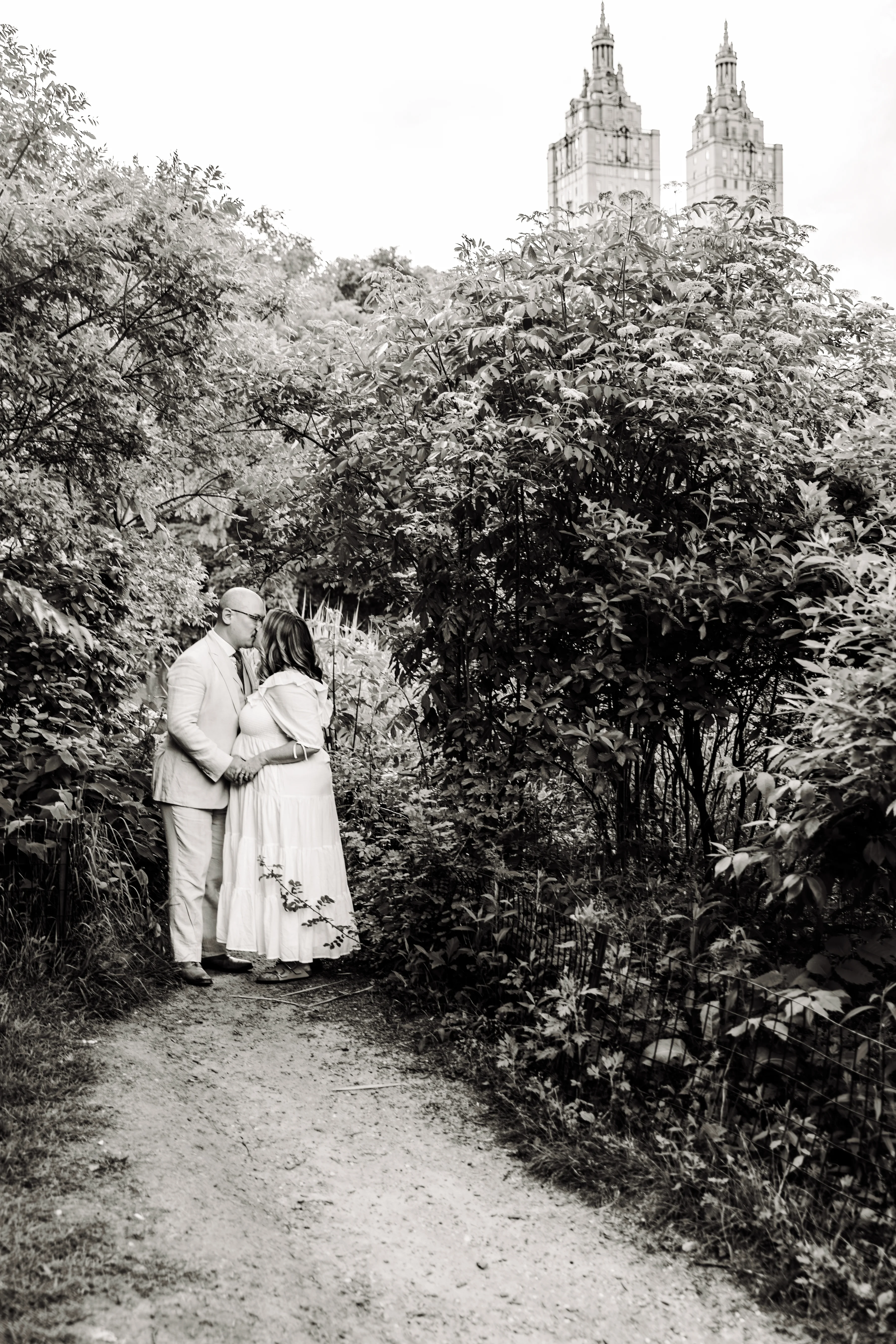 Alison and Frank had both worked a full day when they showed up to Central Park at 5:30 on the dot — Alison nine months pregnant, somehow having squeezed in the perfect blowout, stunning in a white dress. Frank, dapper as ever in a three piece suit, completely in awe of his wife. Not a hair out of place — well, Frank doesn't have any, but you get the idea.
