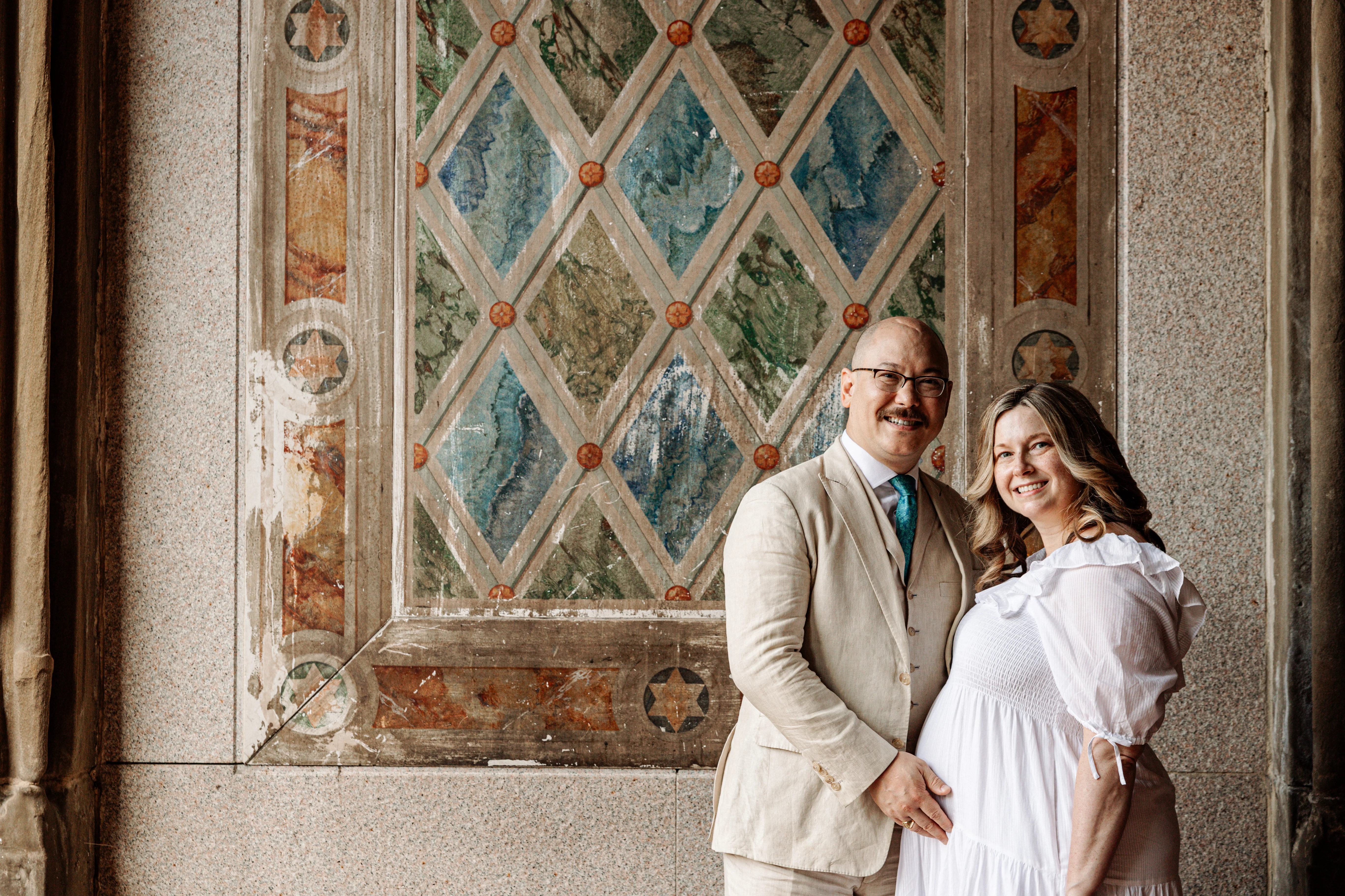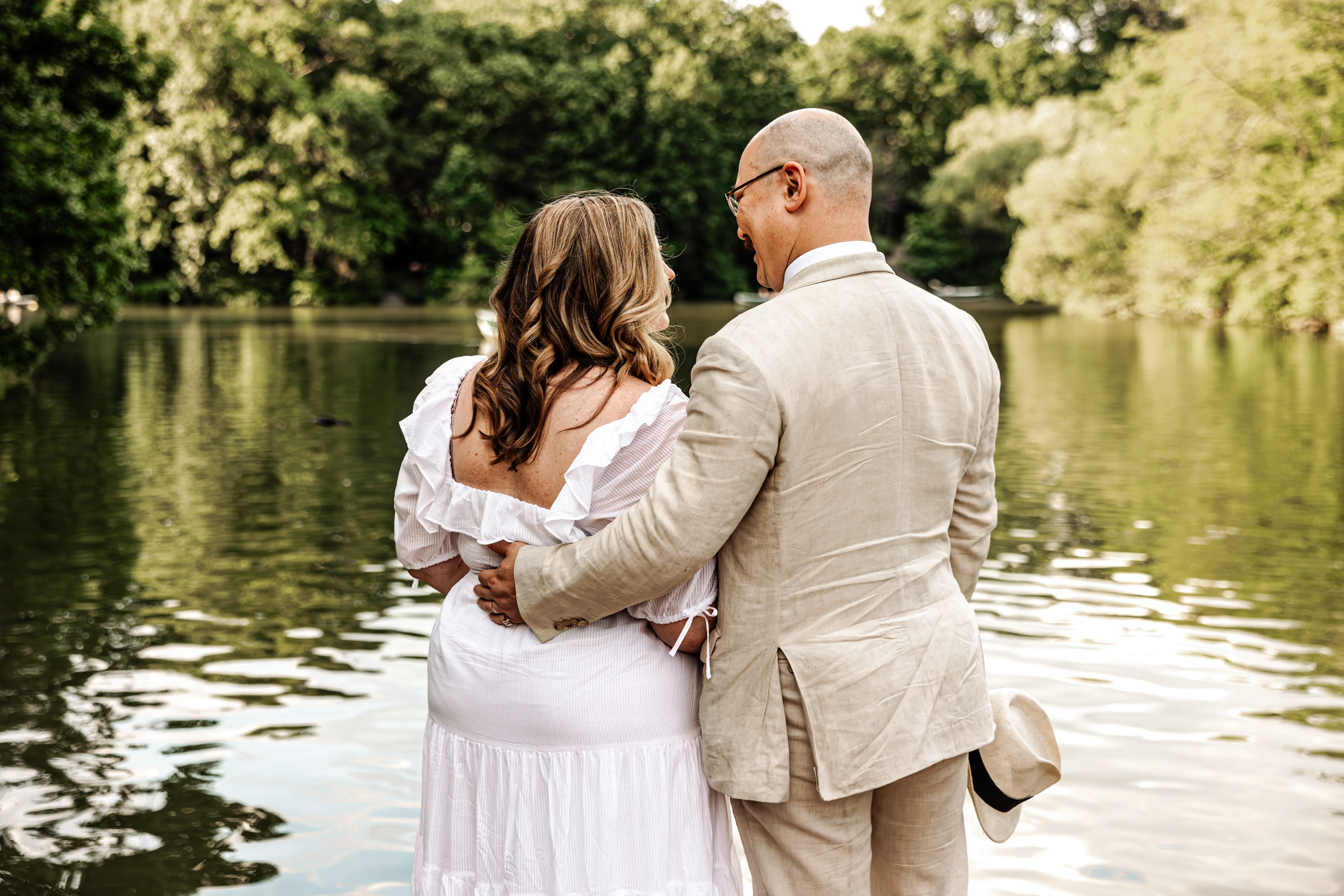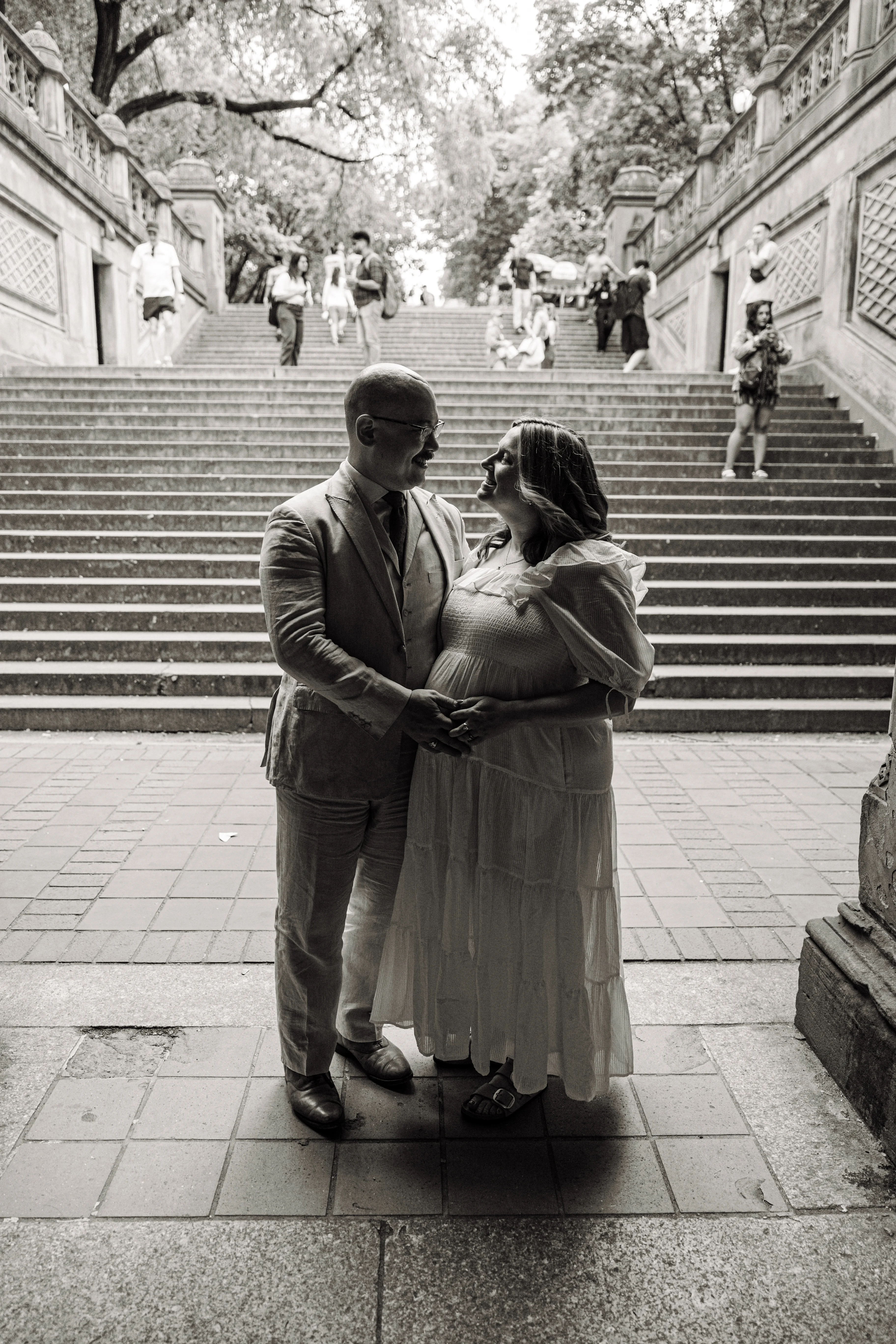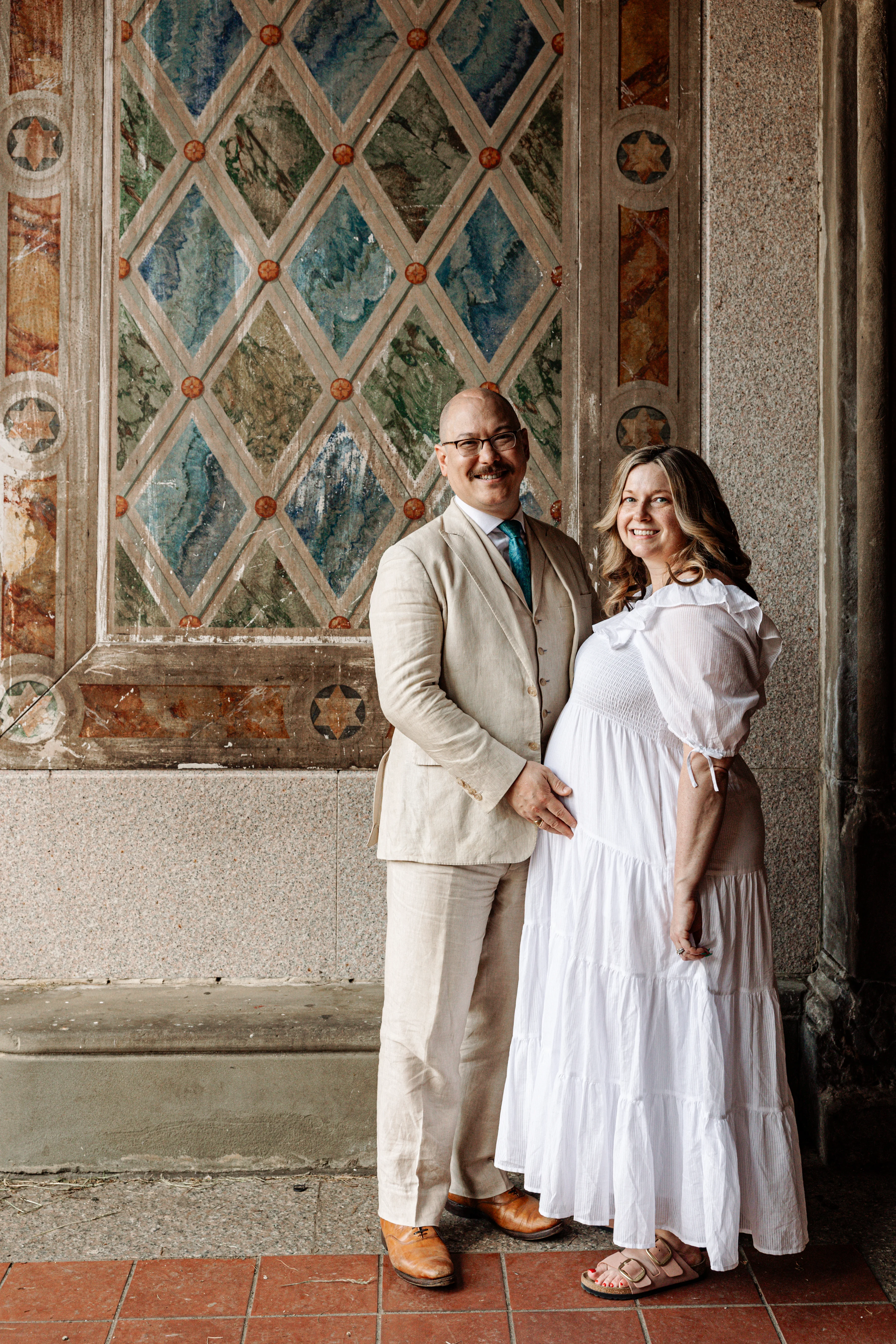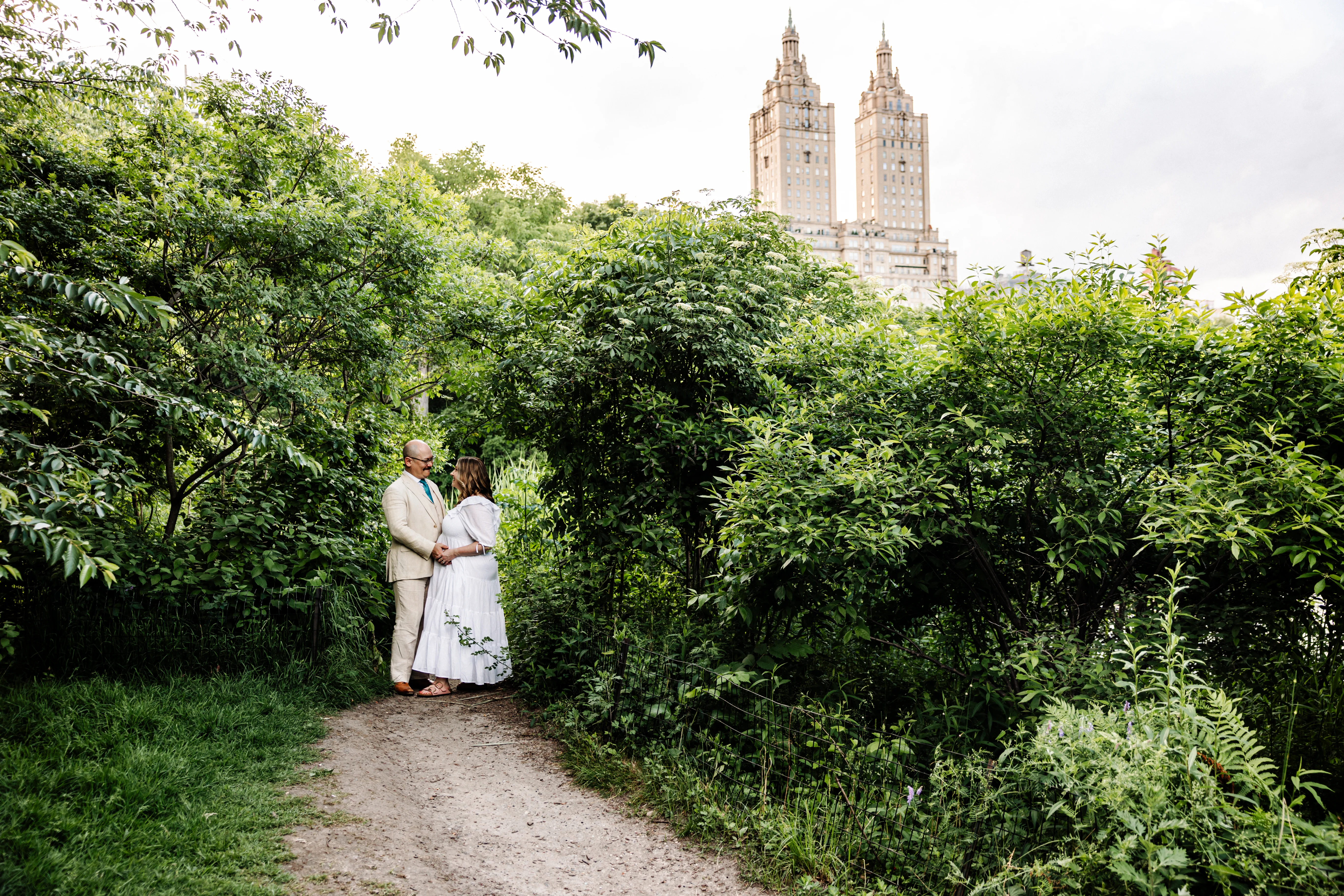 Alison and Frank had both worked a full day when they showed up to Central Park at 5:30 on the dot — Alison nine months pregnant, somehow having squeezed in the perfect blowout, stunning in a white dress. Frank, dapper as ever in a three piece suit, completely in awe of his wife. Not a hair out of place — well, Frank doesn't have any, but you get the idea.