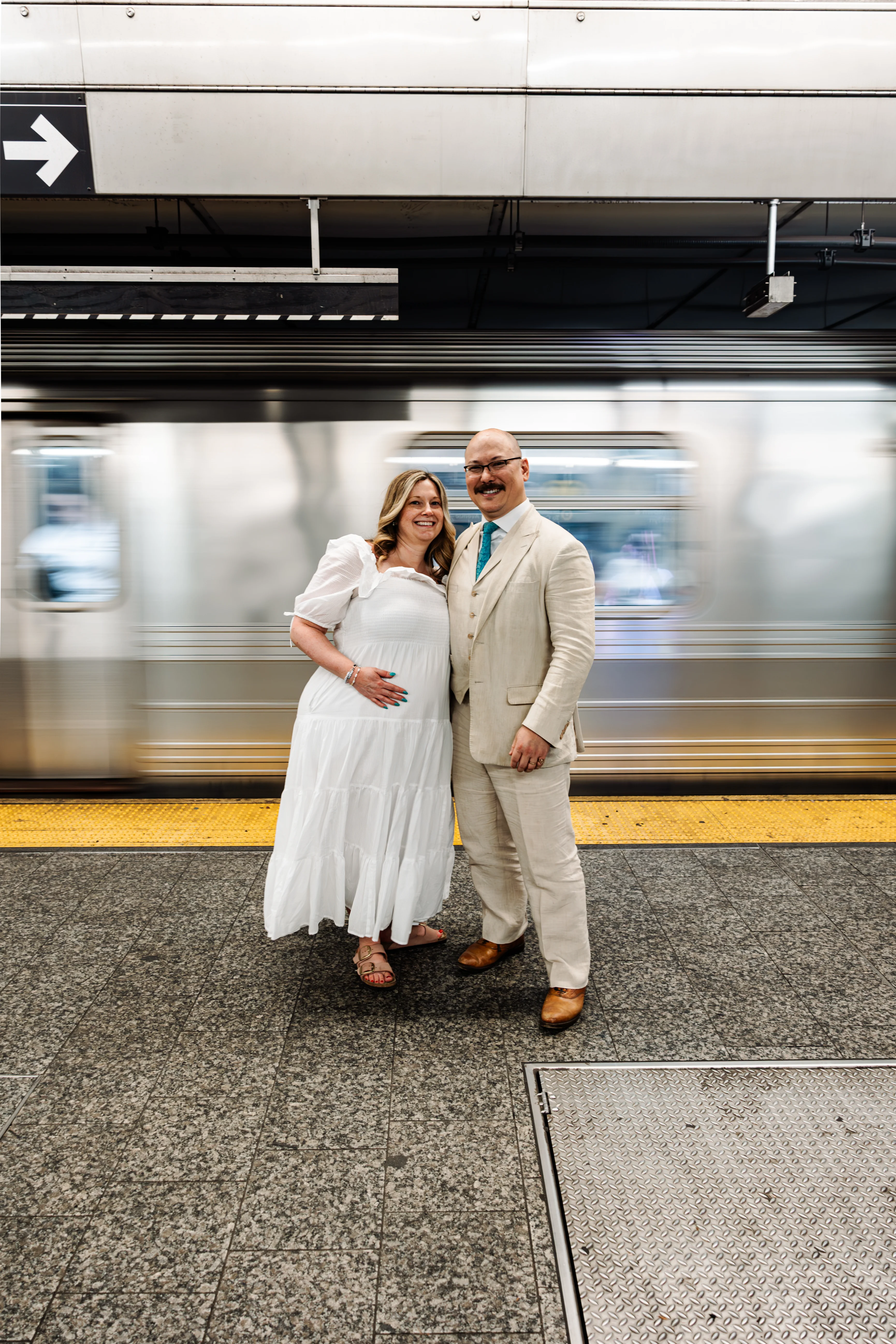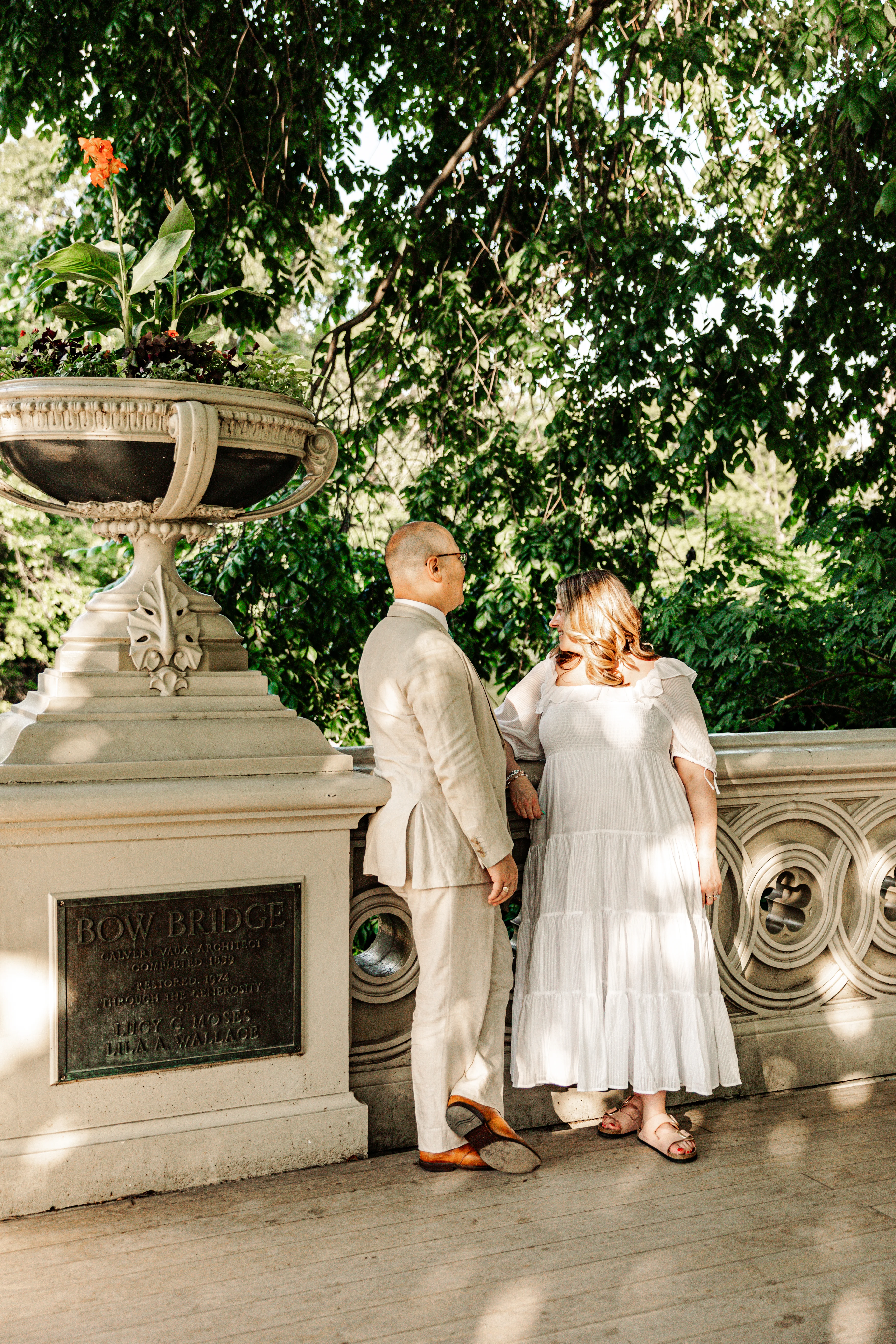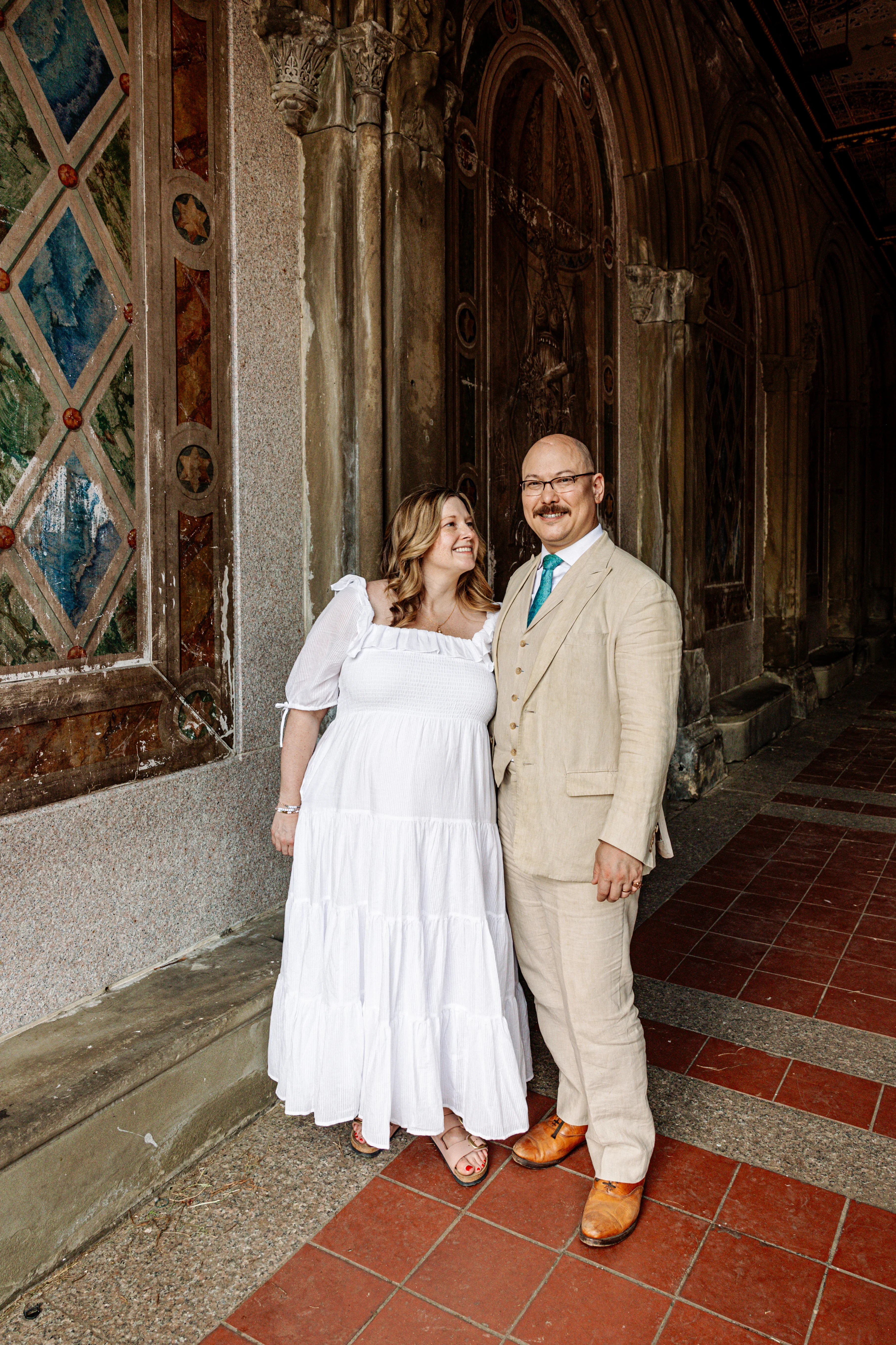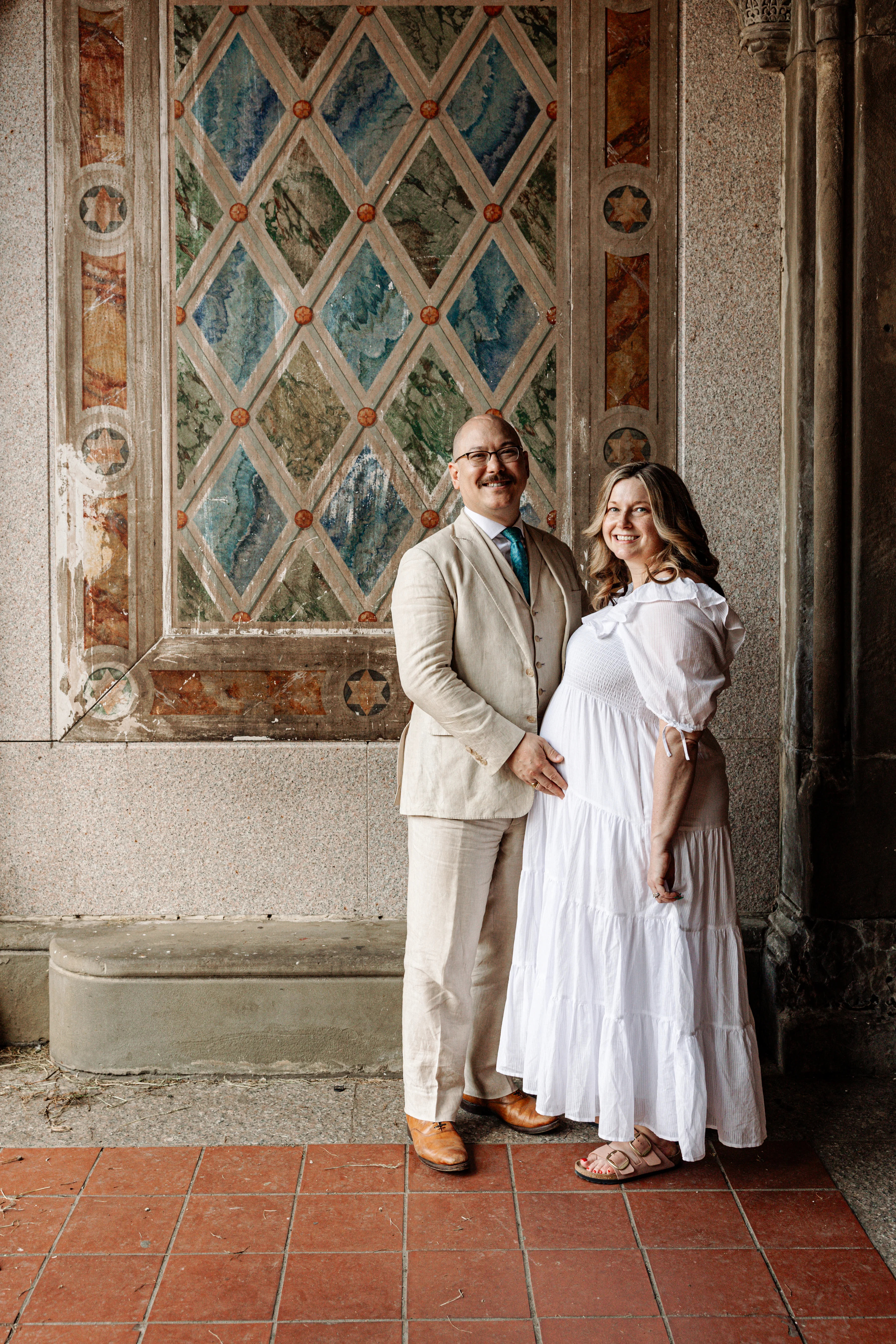 Alison and Frank had both worked a full day when they showed up to Central Park at 5:30 on the dot — Alison nine months pregnant, somehow having squeezed in the perfect blowout, stunning in a white dress. Frank, dapper as ever in a three piece suit, completely in awe of his wife. Not a hair out of place — well, Frank doesn't have any, but you get the idea.