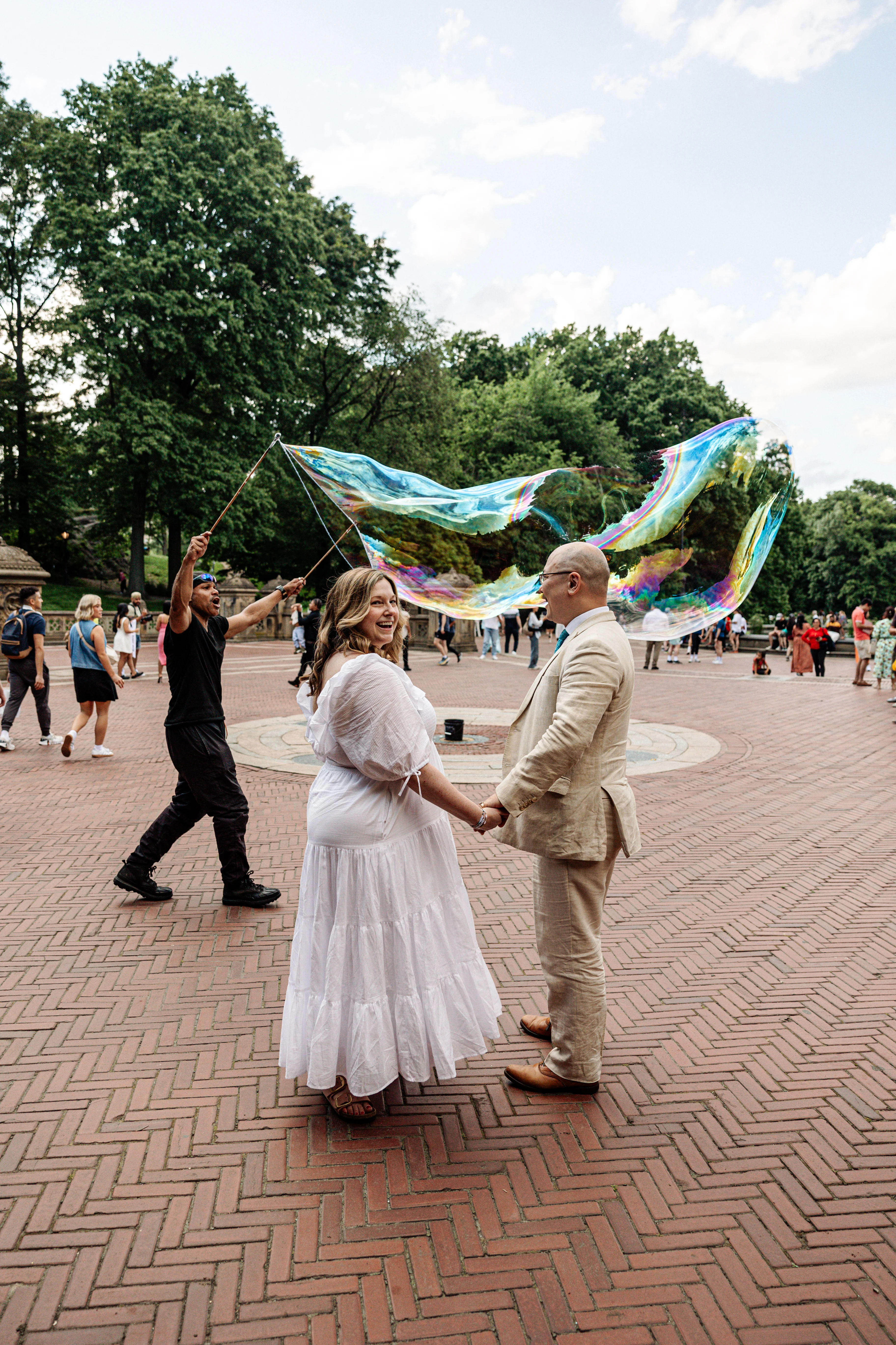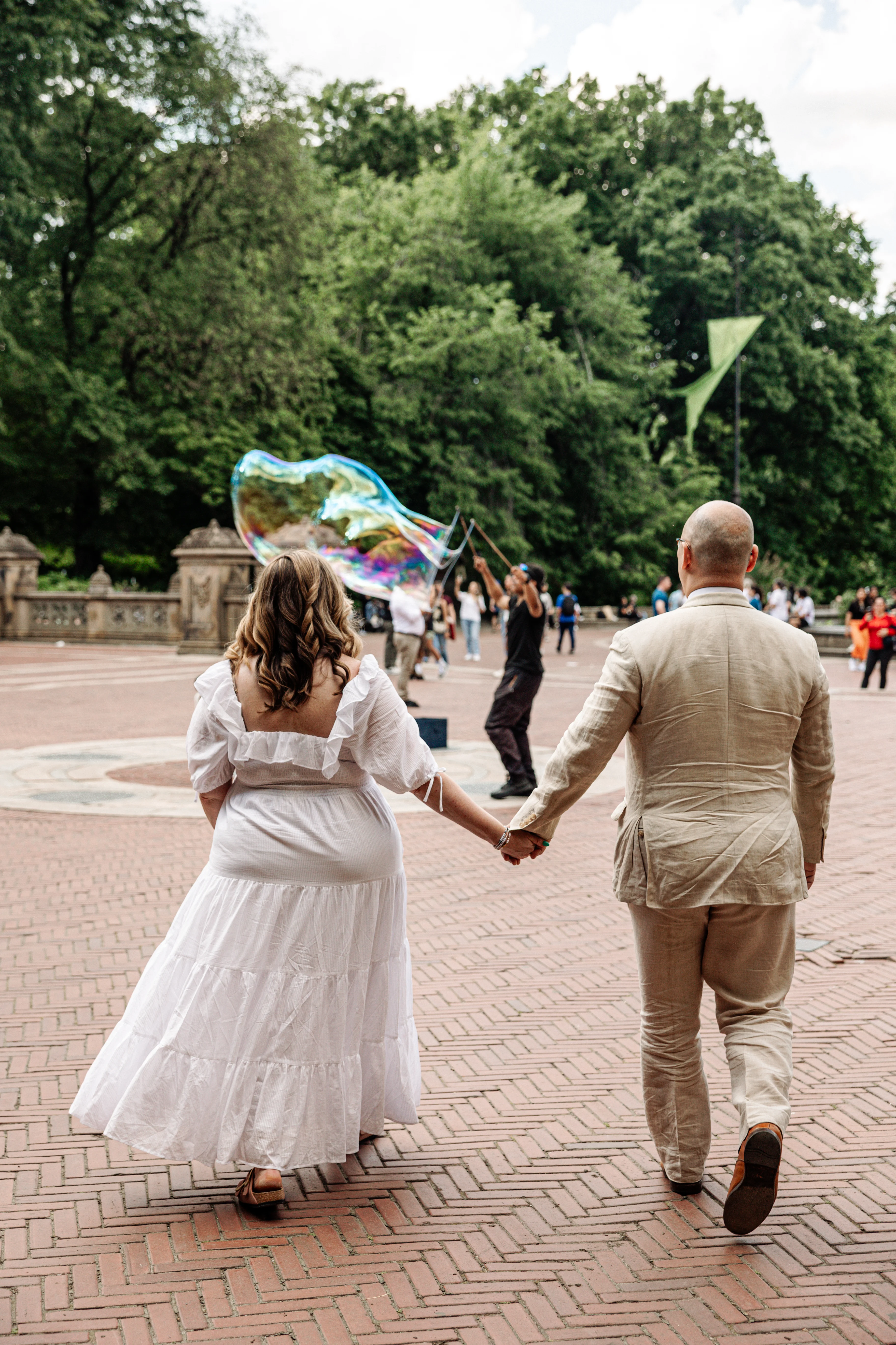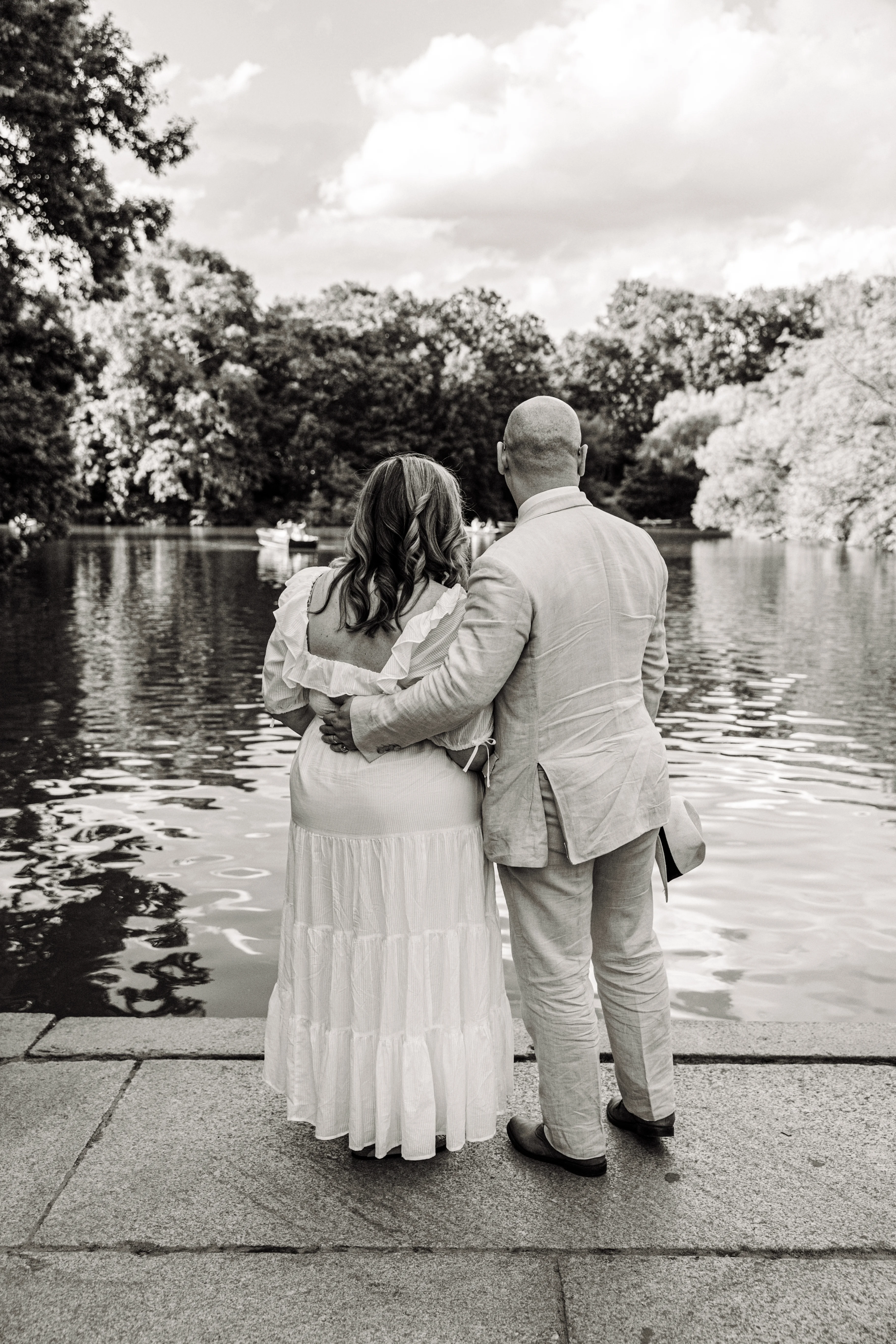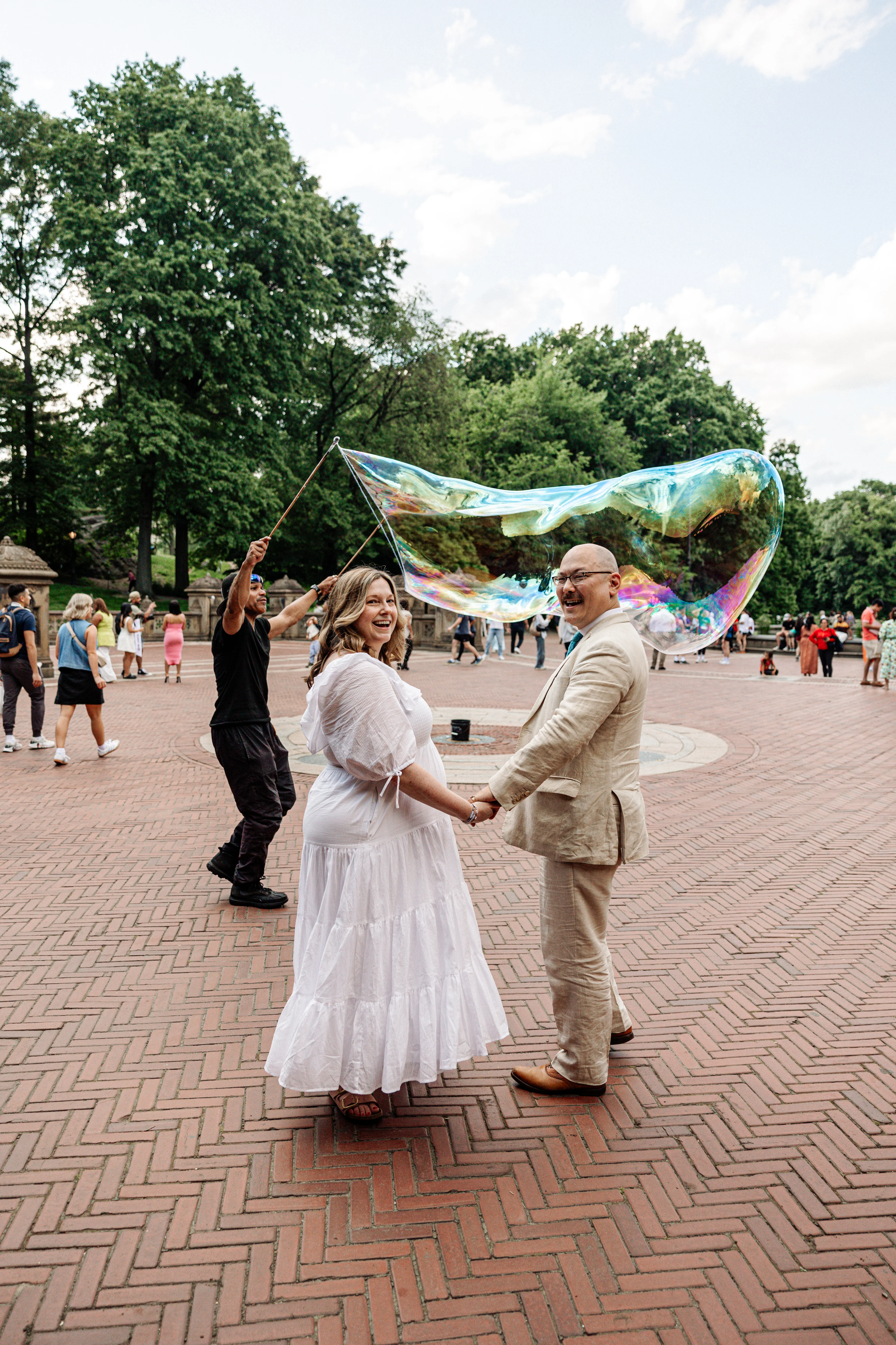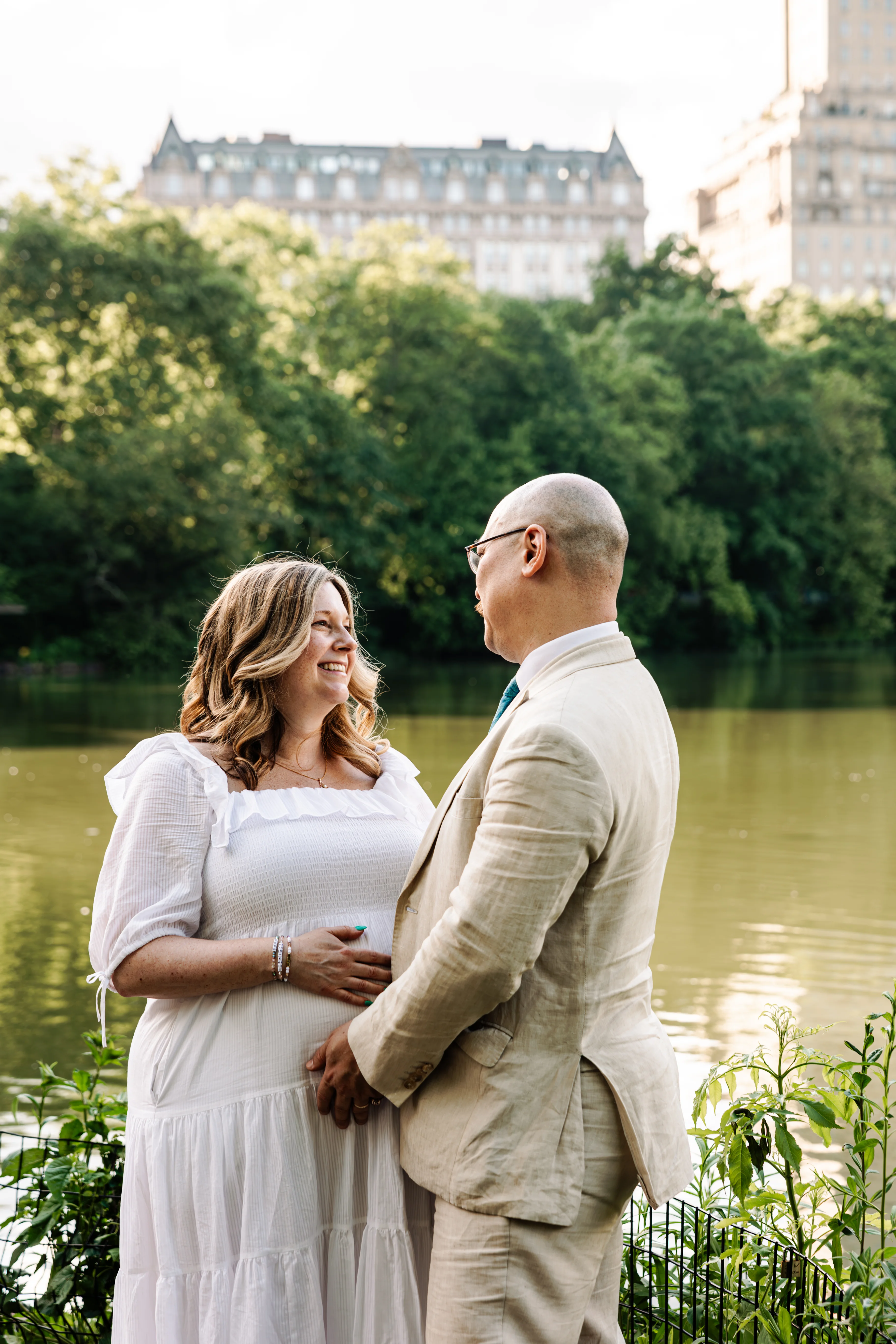 Alison and Frank had both worked a full day when they showed up to Central Park at 5:30 on the dot — Alison nine months pregnant, somehow having squeezed in the perfect blowout, stunning in a white dress. Frank, dapper as ever in a three piece suit, completely in awe of his wife. Not a hair out of place — well, Frank doesn't have any, but you get the idea.