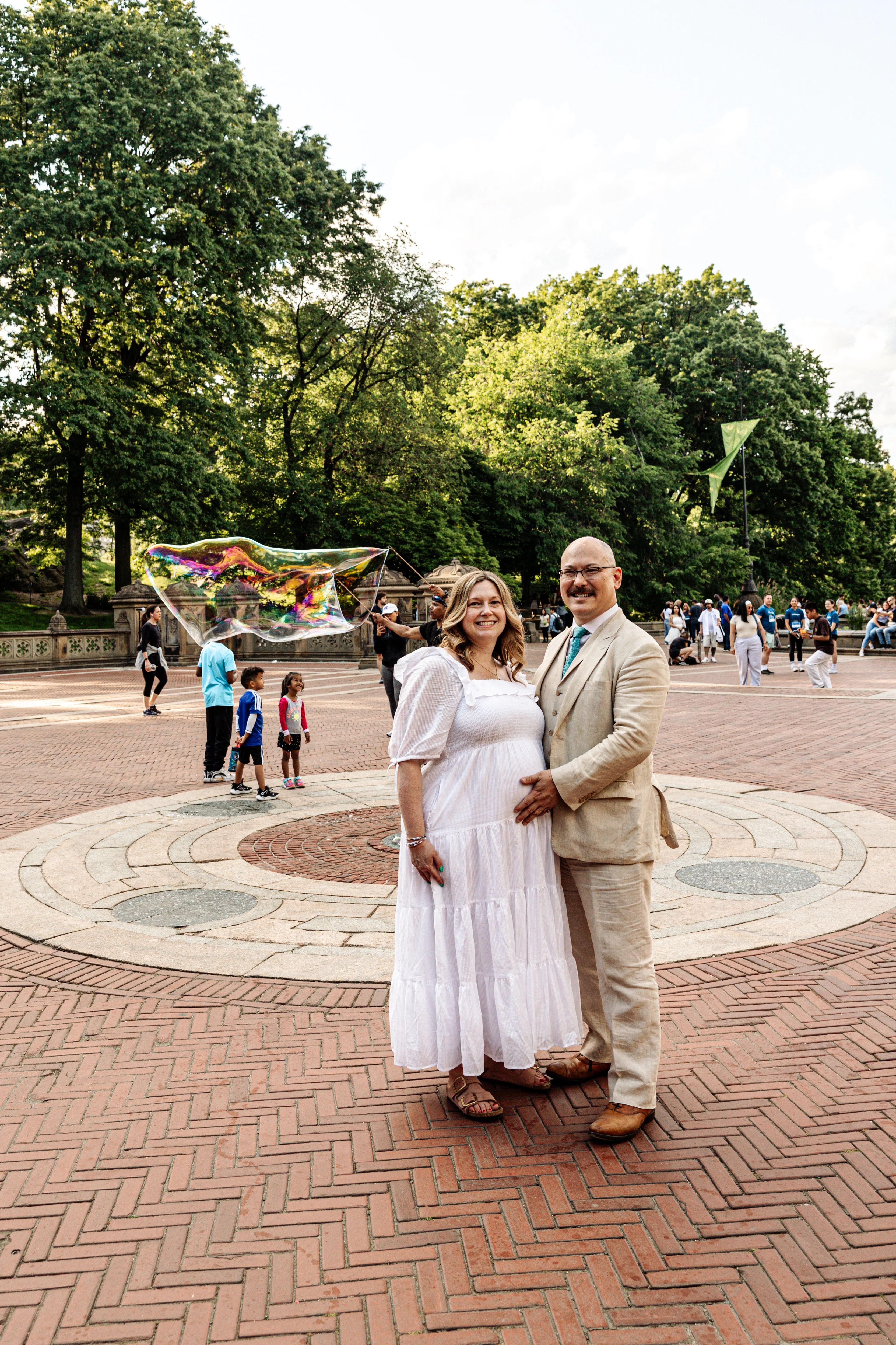 Central Park was totally showing off that evening. Lush and deeply green, Spring completely in full effect, the iconic San Remo rising up behind so many frames in that unmistakably NYC way. And through all of it, Alison — waddling gracefully and laughing about it — was radiant. Frank never once stopped looking at her like she was the most beautiful thing he had ever seen.