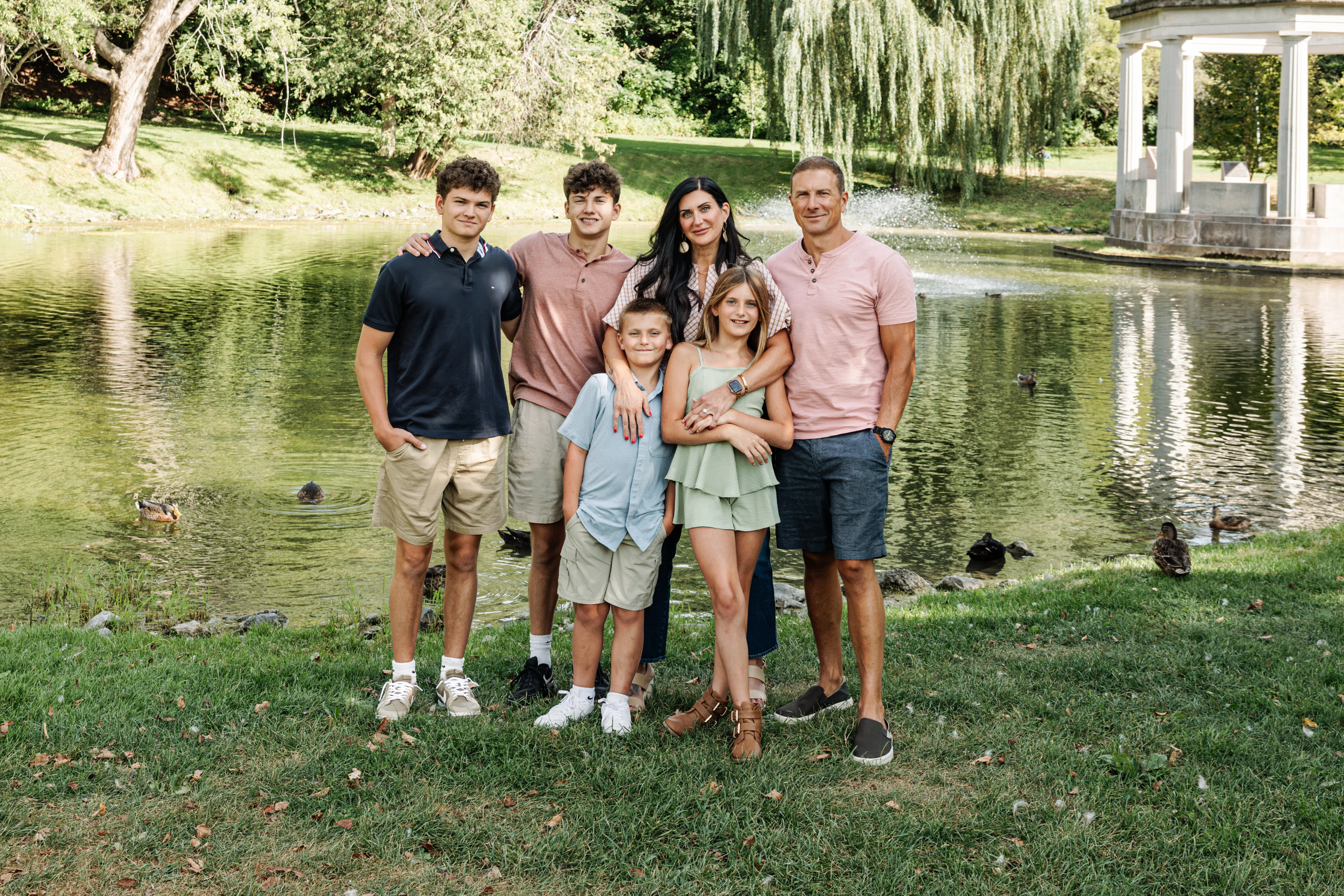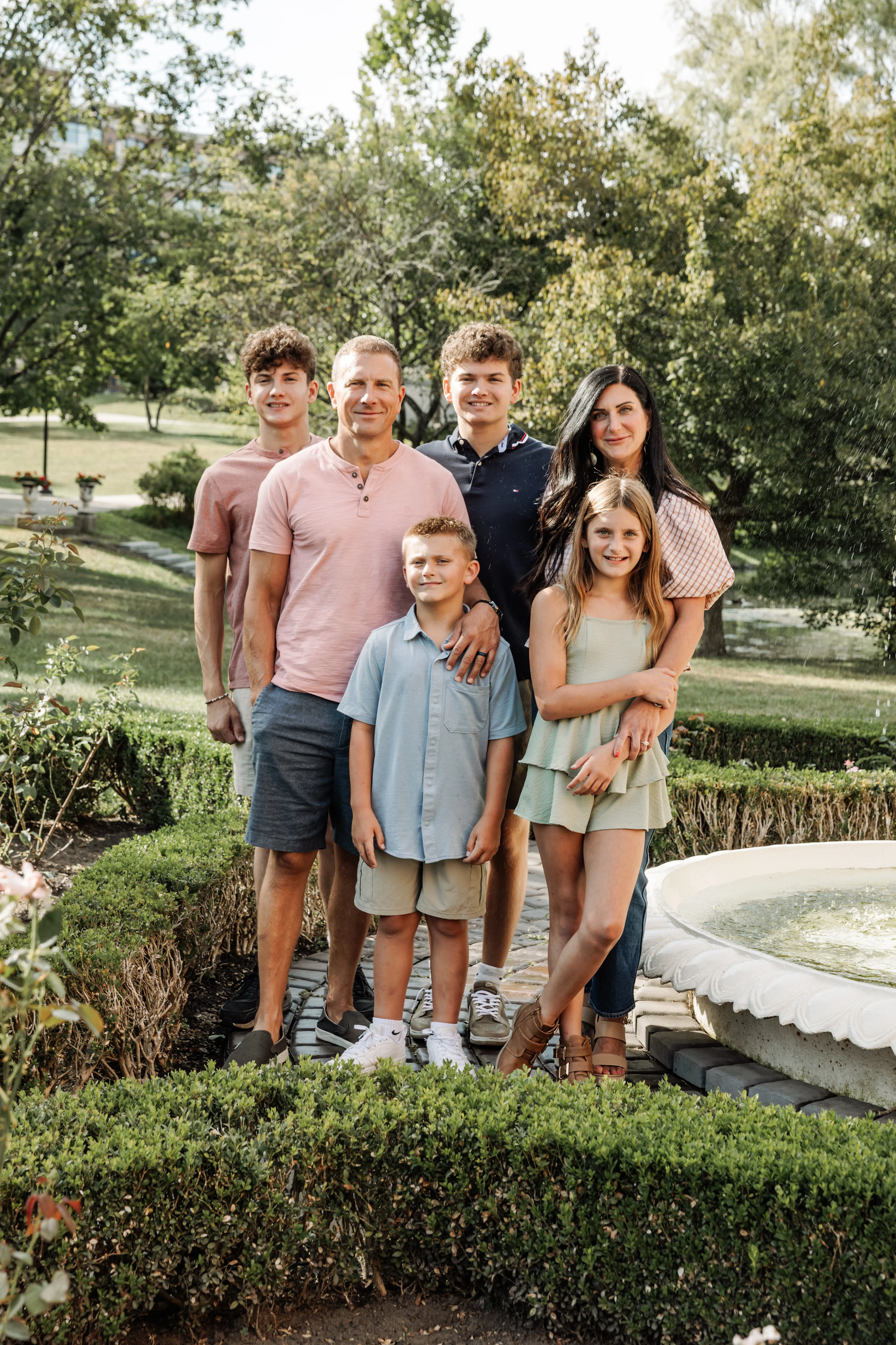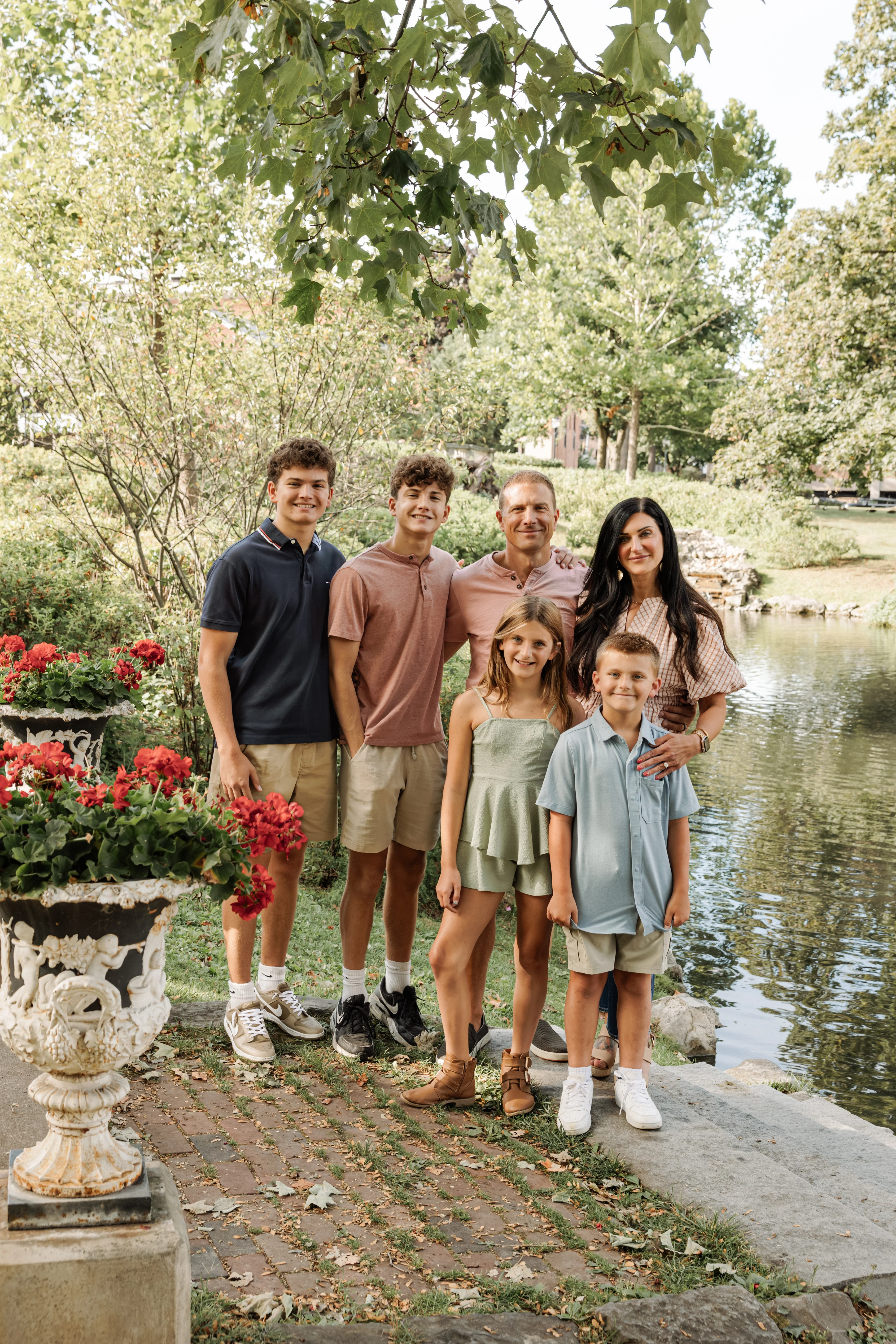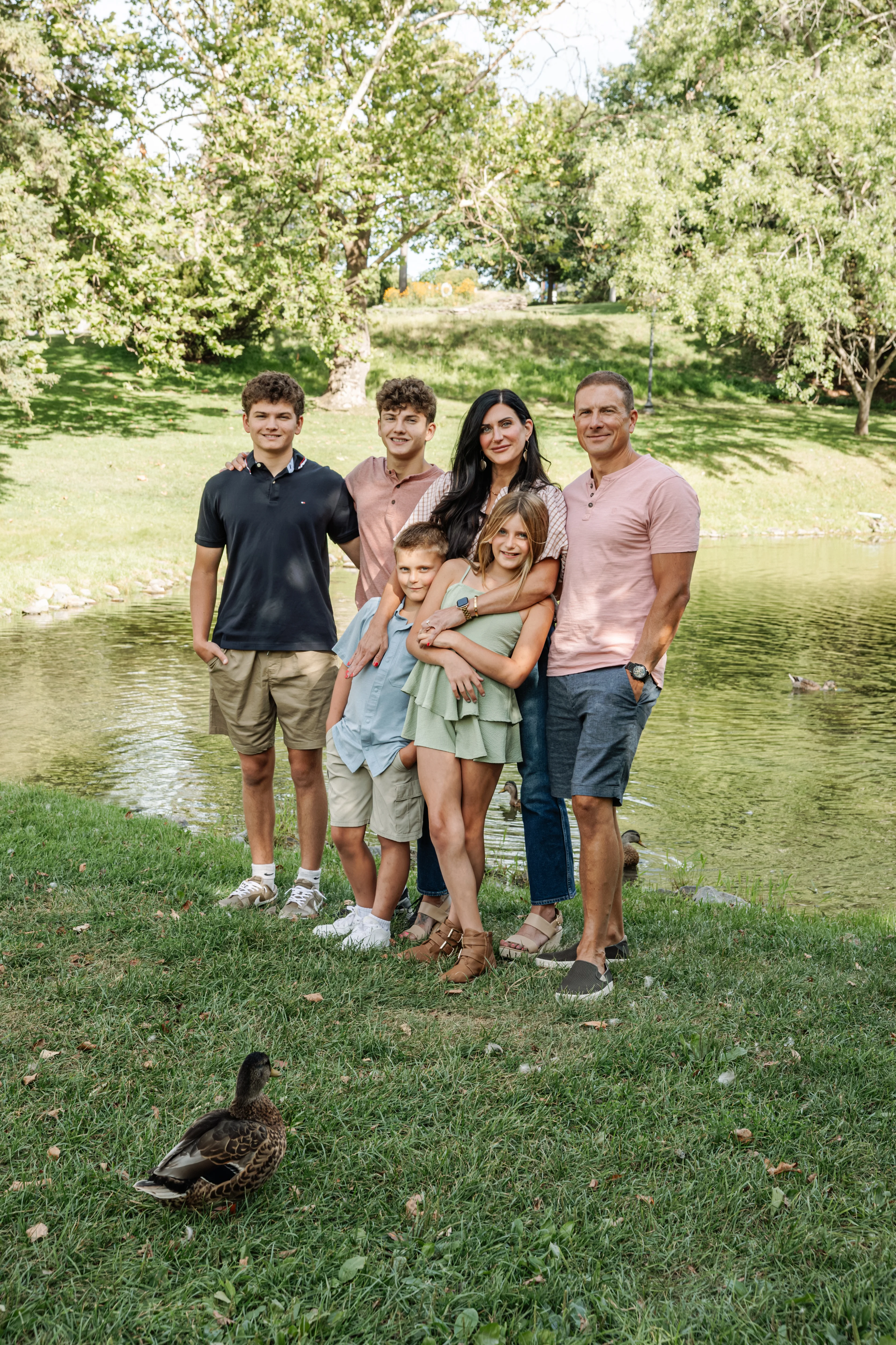 Joanna arrived at Congress Park on a warm summer afternoon with her two children, her partner Jay, and his two boys in tow — three boys and a girl in total, and an energy that was immediately warm, easy and full of love. Joanna held the matriarch role like she was born for it — gorgeous, long dark hair, crystal blue eyes, completely natural with all four kids around her. Jay watched her proudly, and you could see it in the way his boys gravitated toward her too.