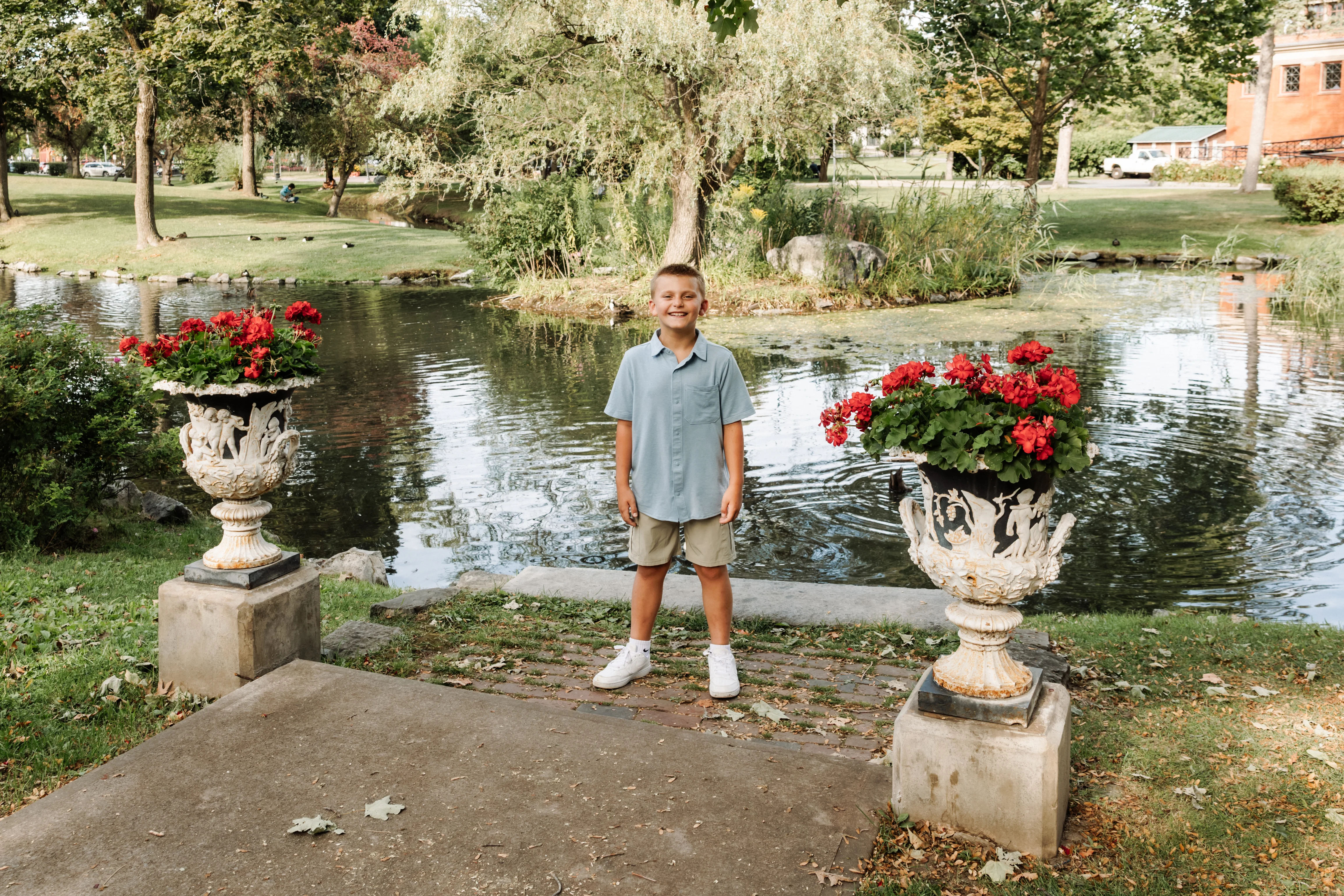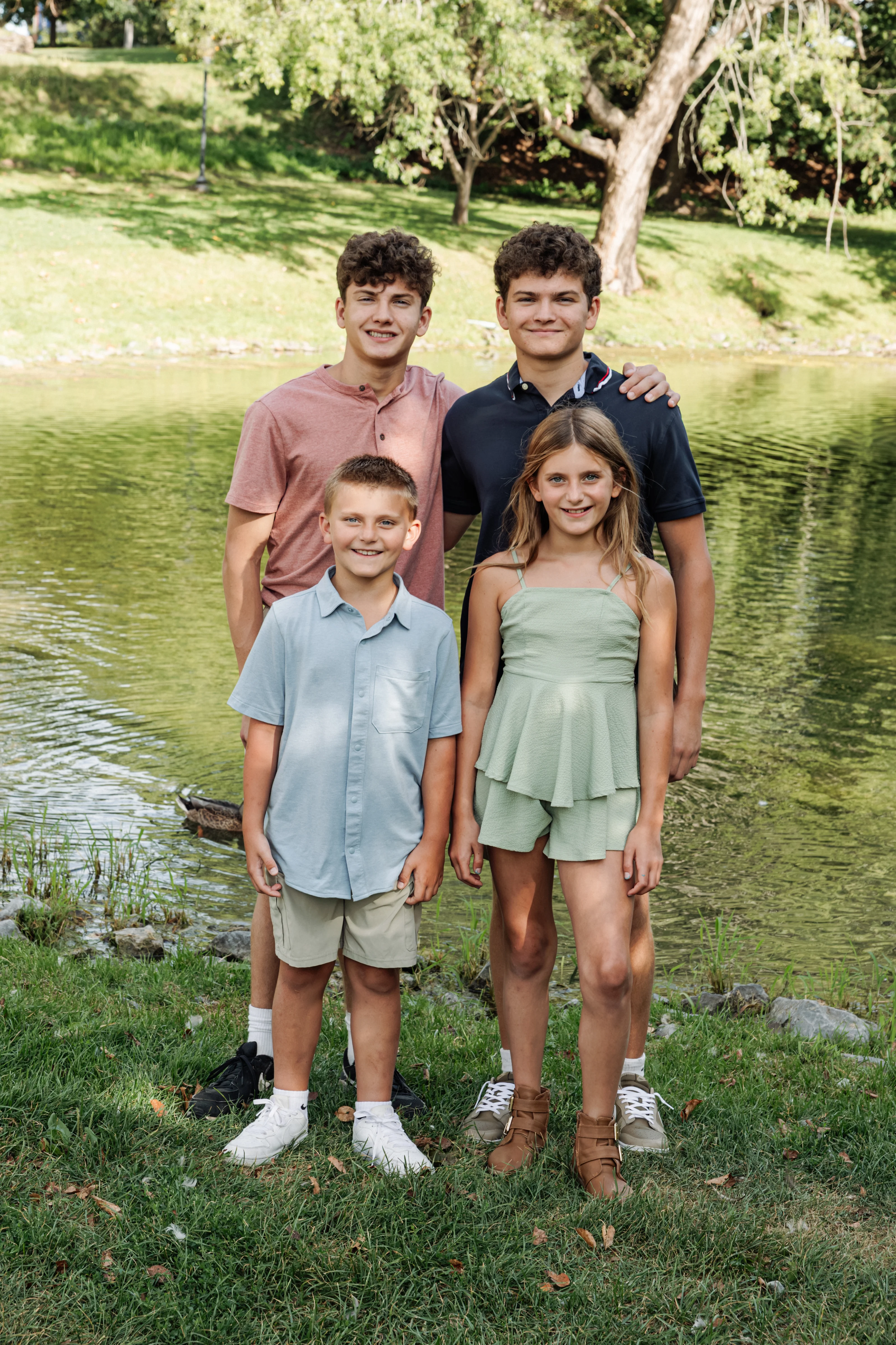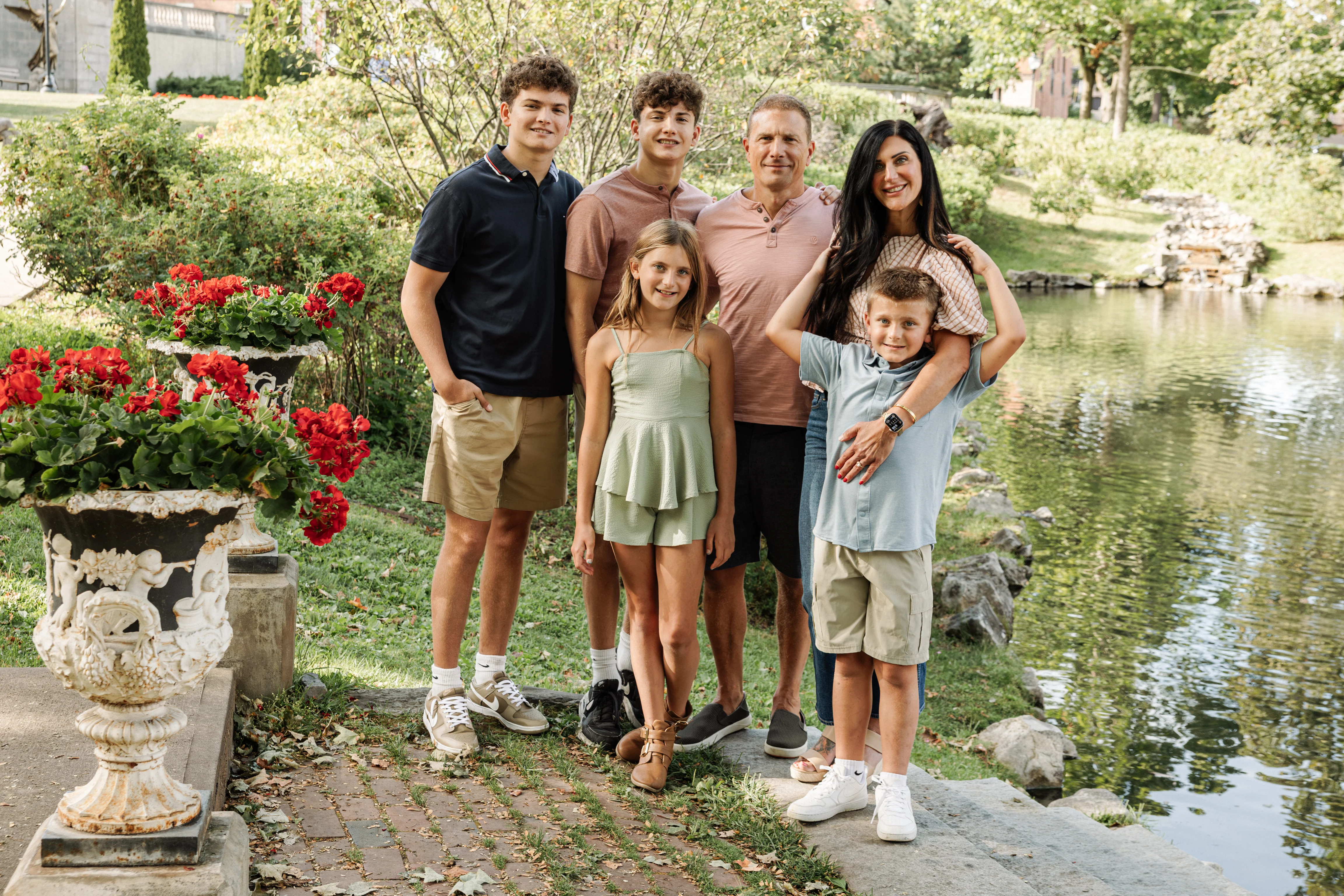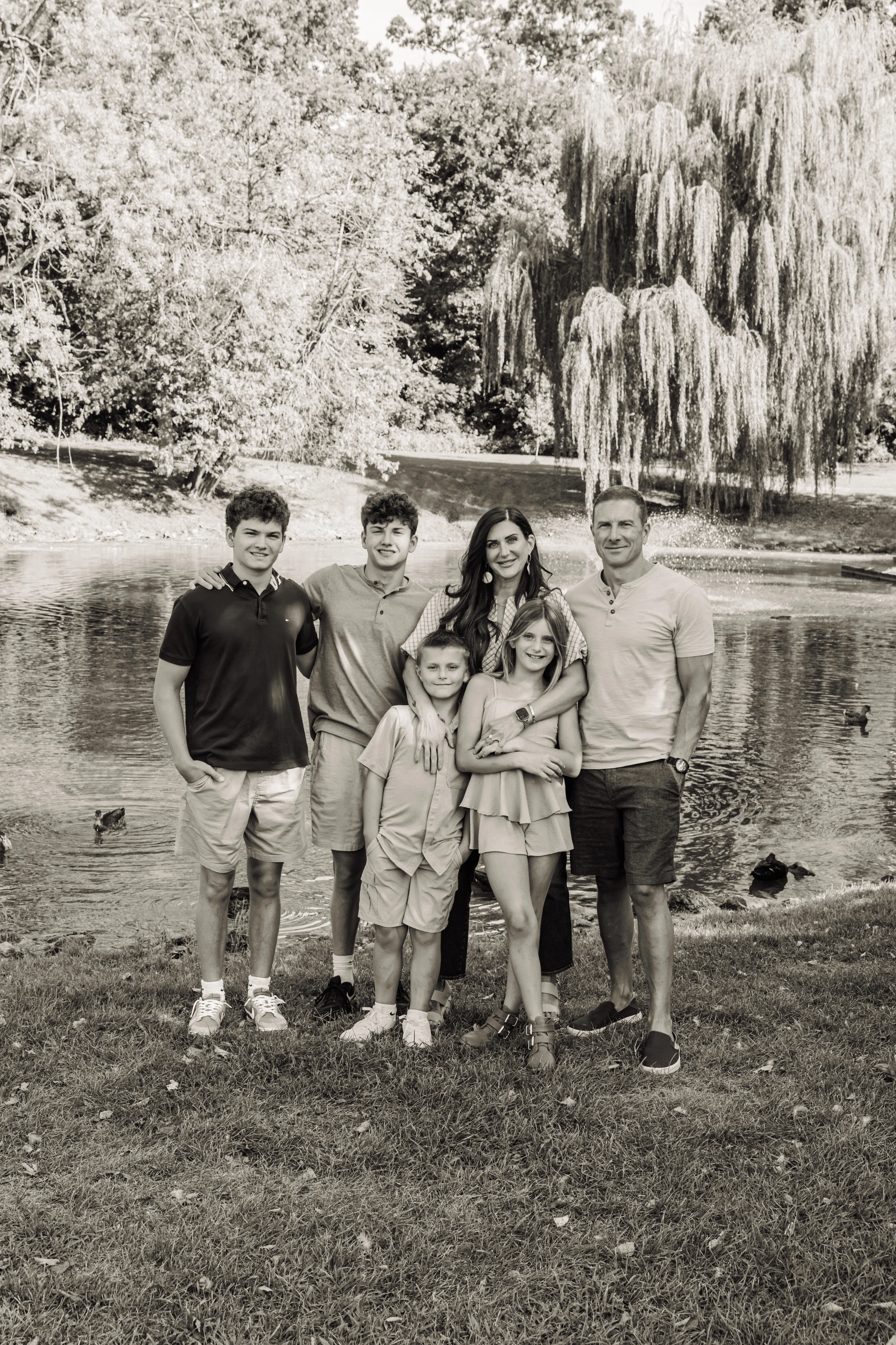 Joanna arrived at Congress Park on a warm summer afternoon with her two children, her partner Jay, and his two boys in tow — three boys and a girl in total, and an energy that was immediately warm, easy and full of love. Joanna held the matriarch role like she was born for it — gorgeous, long dark hair, crystal blue eyes, completely natural with all four kids around her. Jay watched her proudly, and you could see it in the way his boys gravitated toward her too.