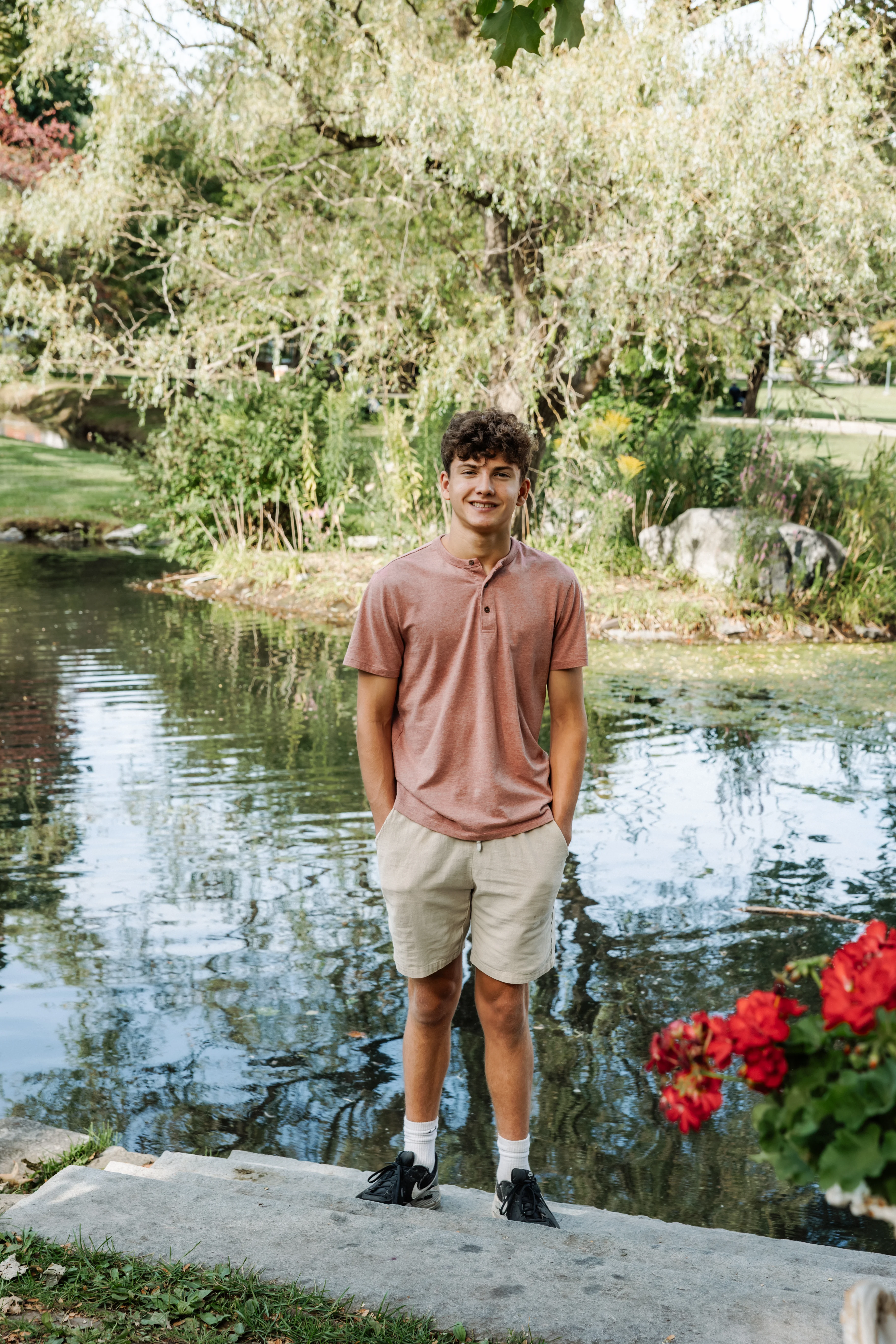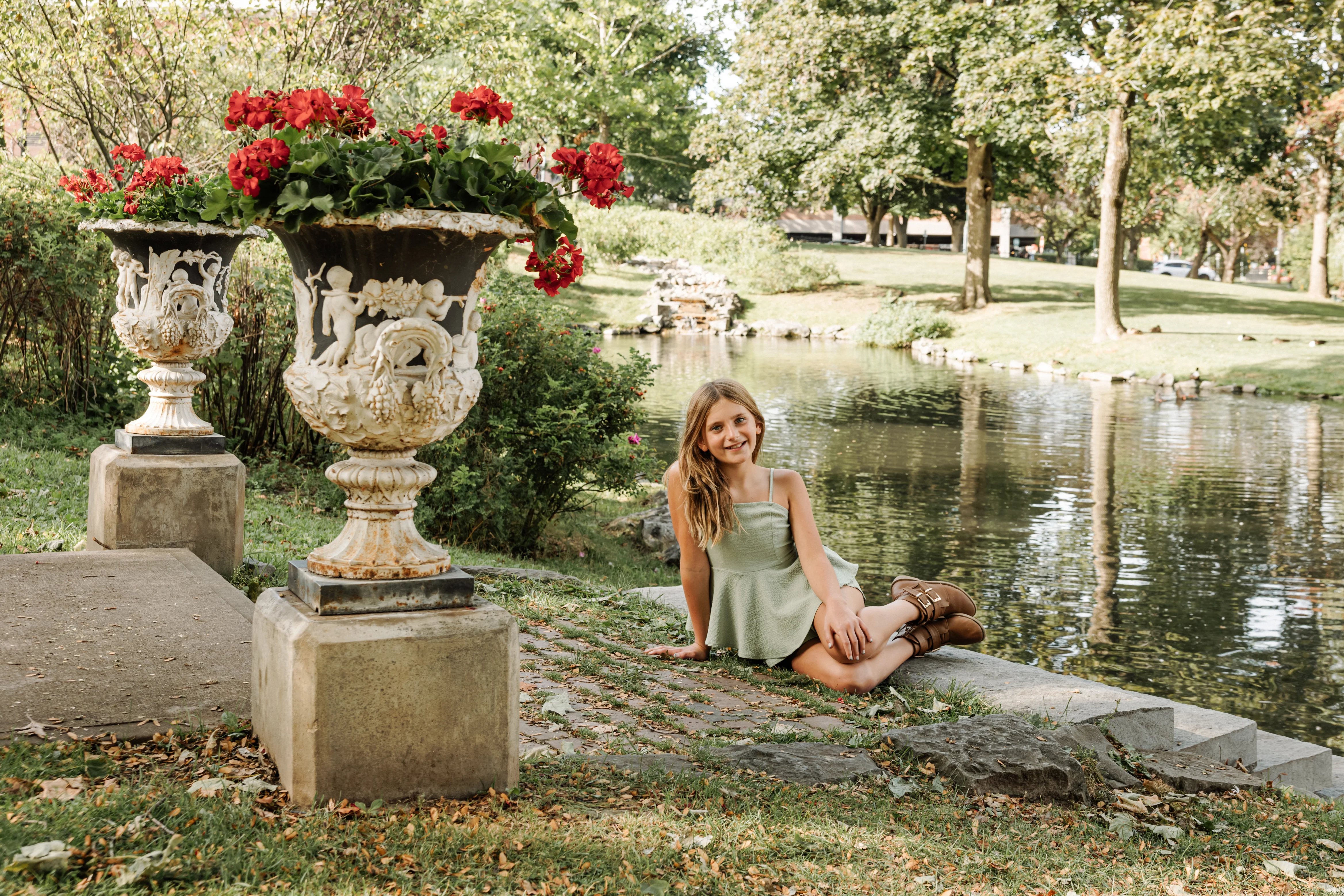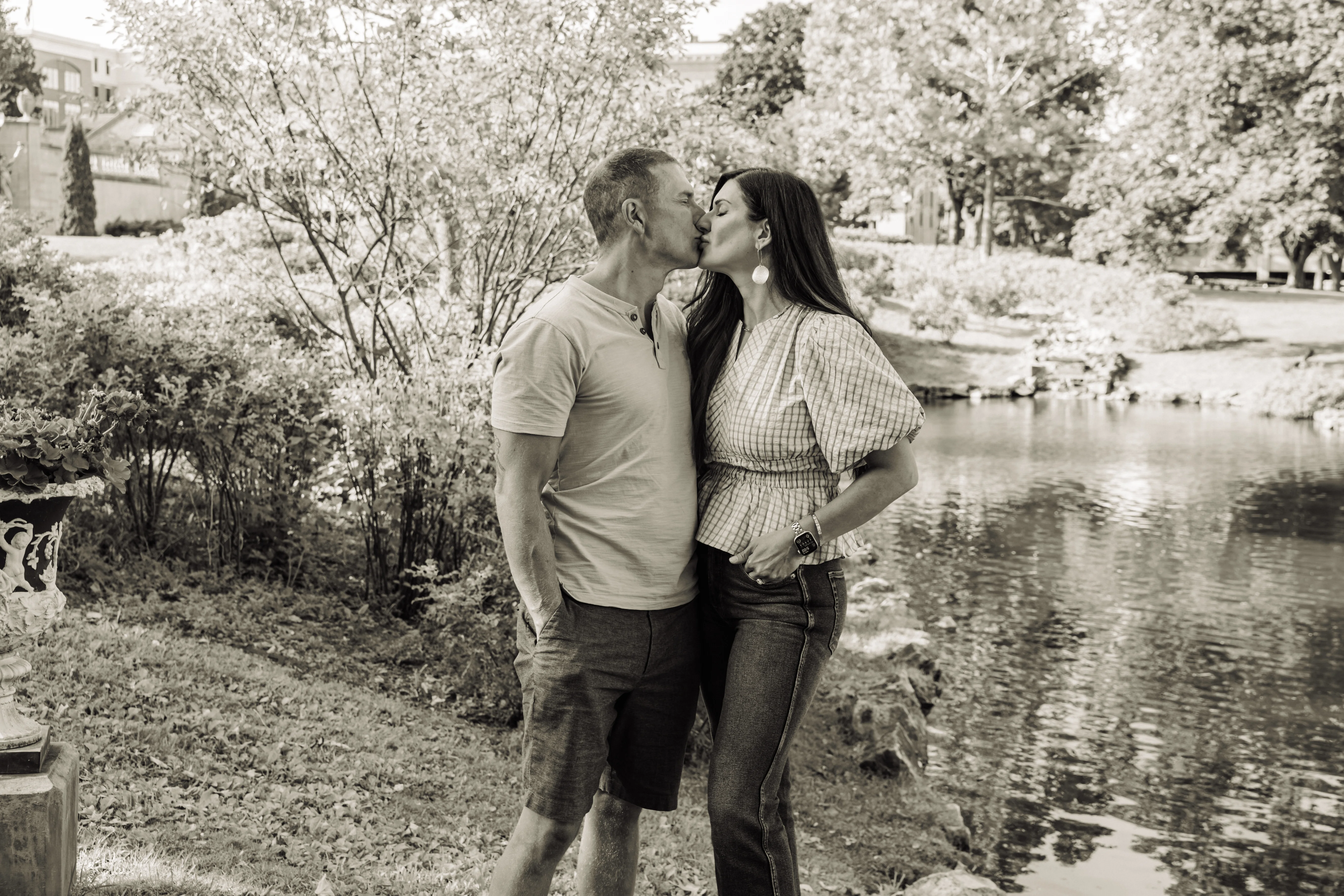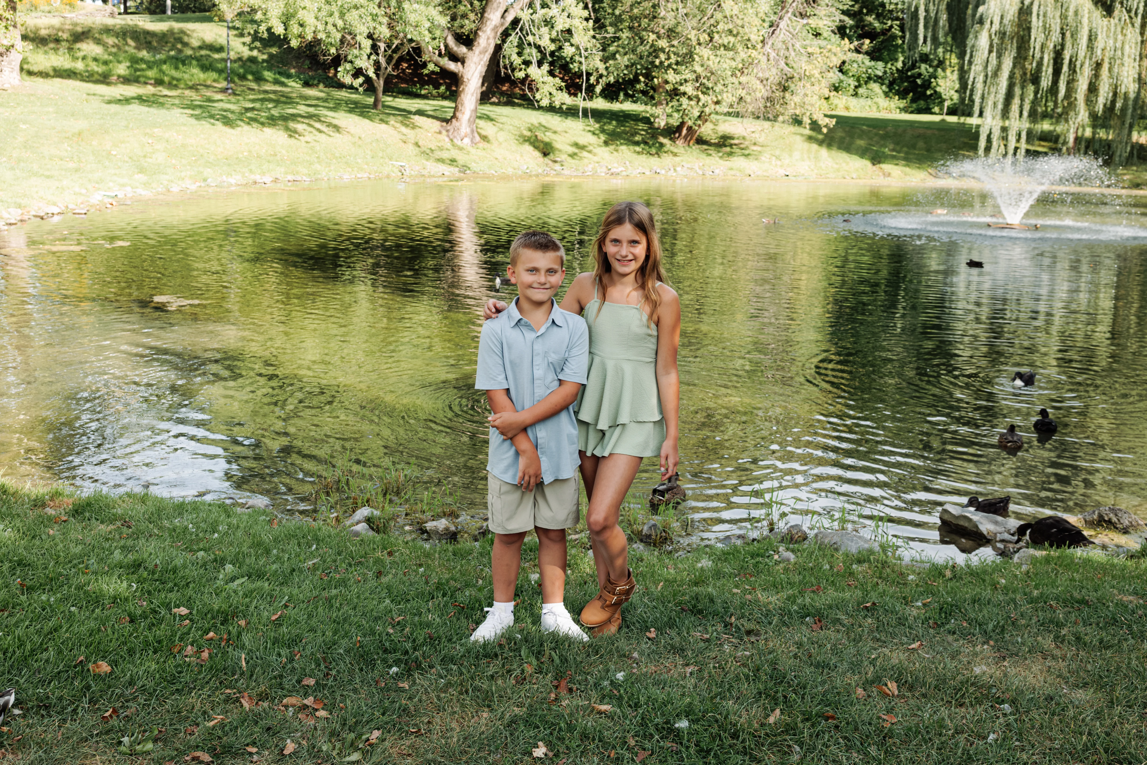 Joanna arrived at Congress Park on a warm summer afternoon with her two children, her partner Jay, and his two boys in tow — three boys and a girl in total, and an energy that was immediately warm, easy and full of love. Joanna held the matriarch role like she was born for it — gorgeous, long dark hair, crystal blue eyes, completely natural with all four kids around her. Jay watched her proudly, and you could see it in the way his boys gravitated toward her too.