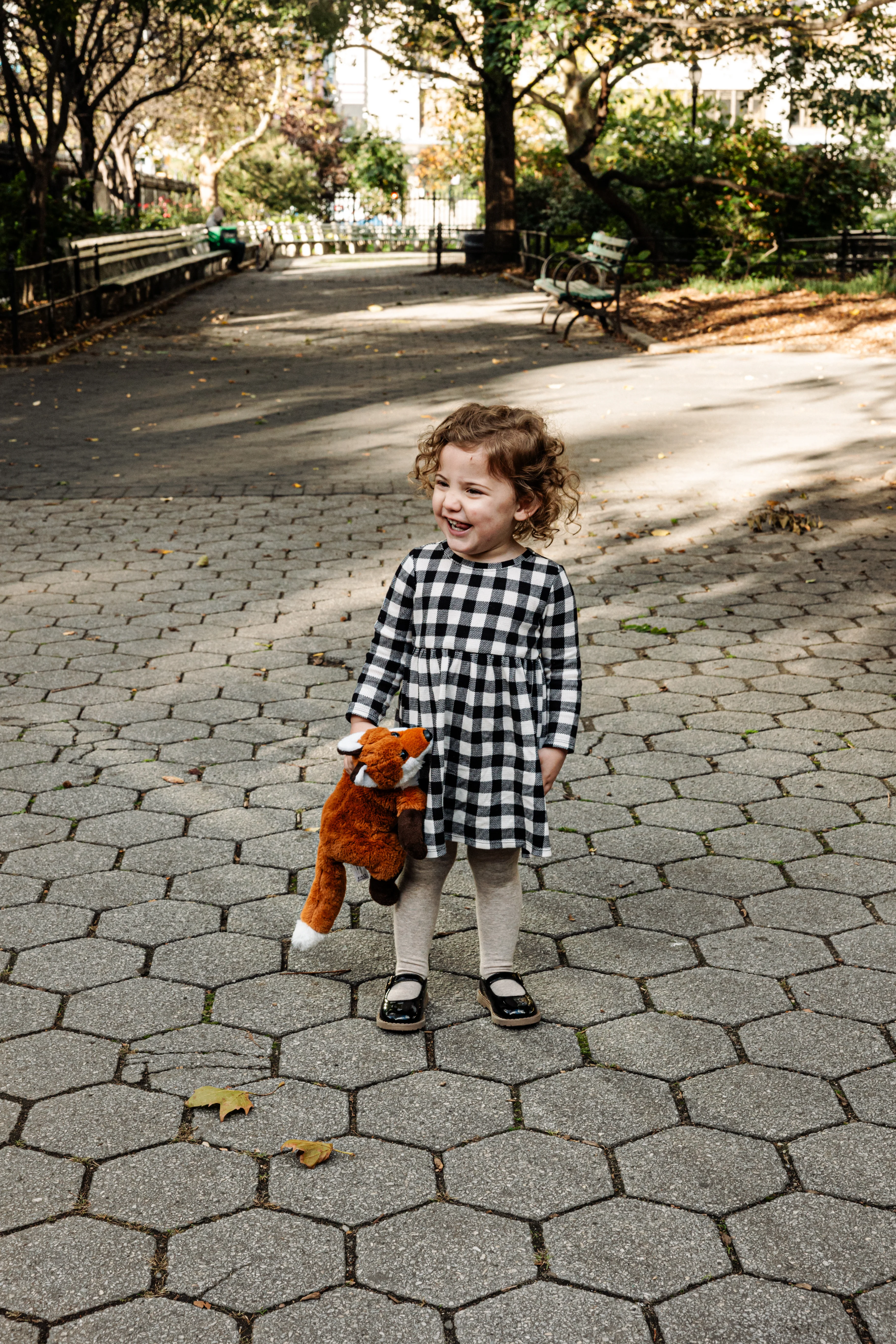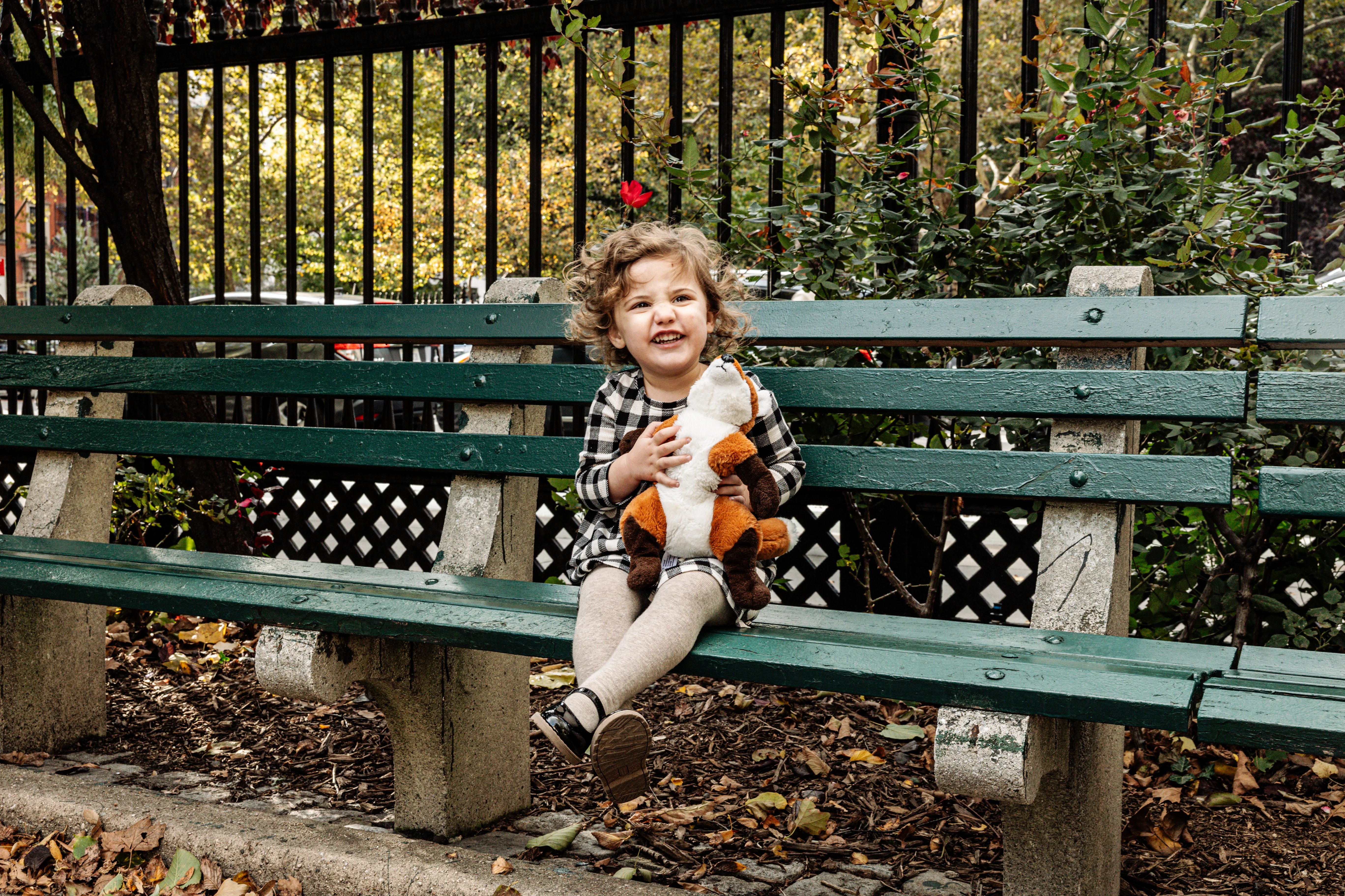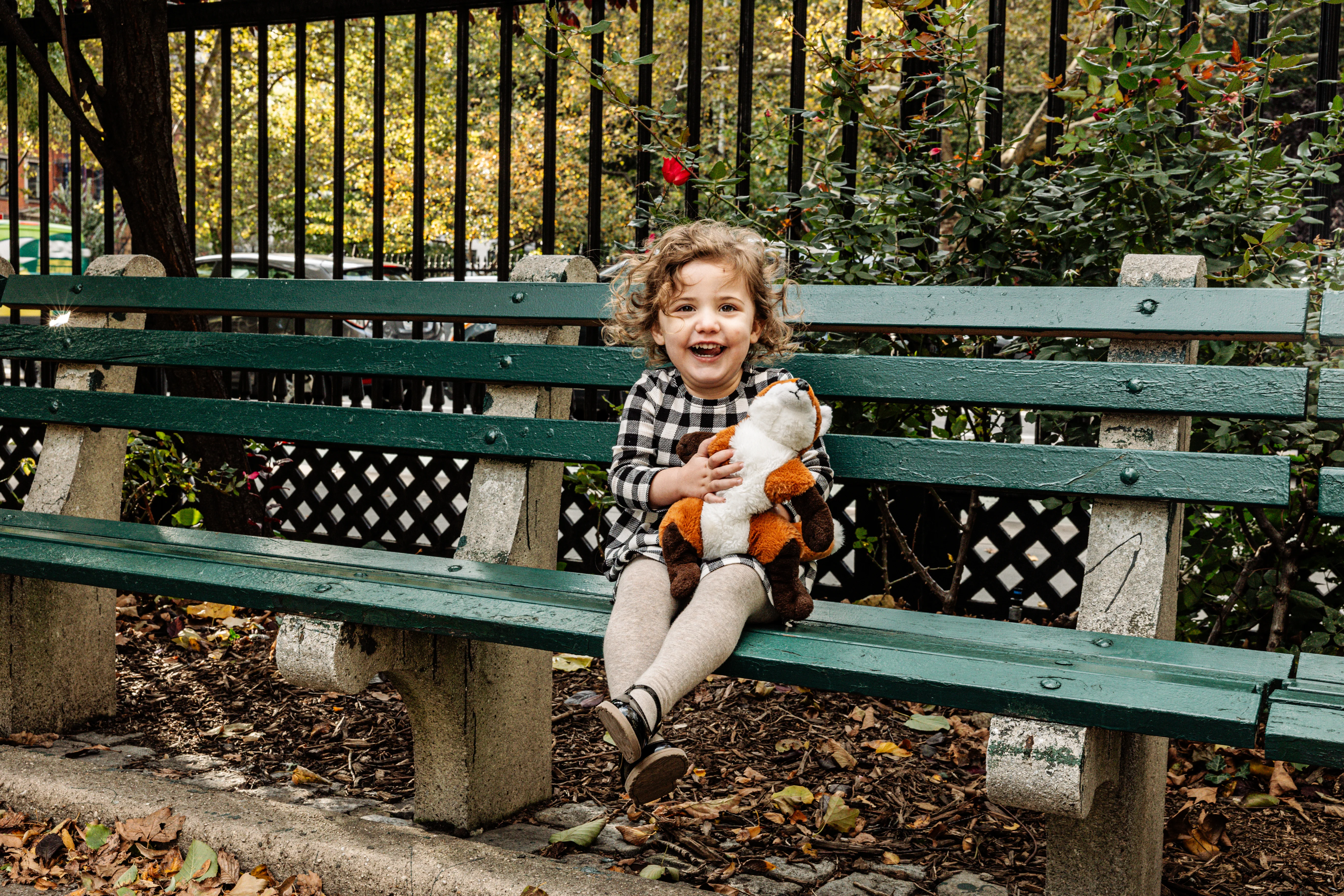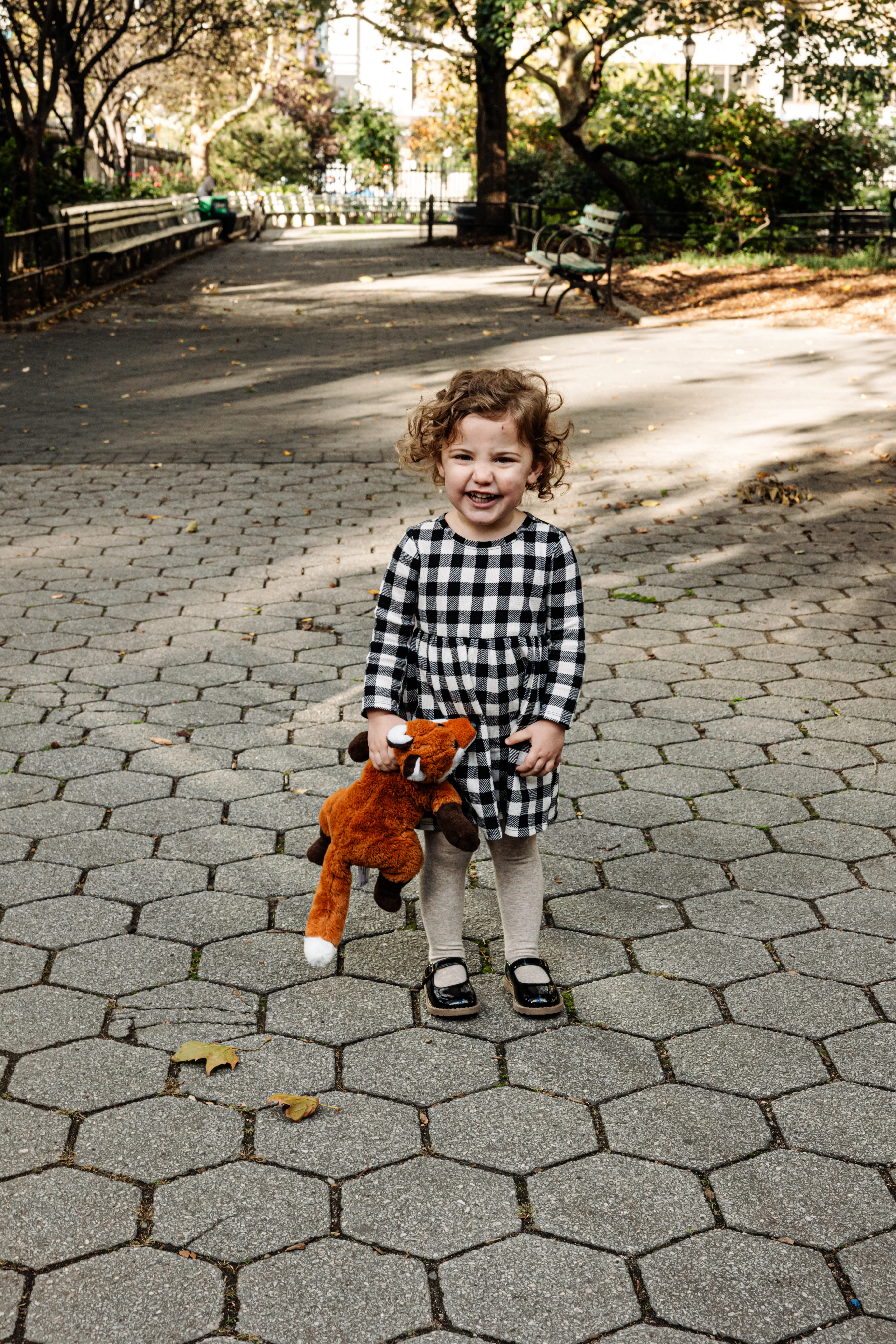 By the time Cristina, Grant and Maeve showed up to Stuyvesant Square on a sunny late October afternoon, this was already our third shoot together. I photographed their maternity session, I was there when Maeve was brand new, and now here we were two years later - Maeve and her extraordinary curls leading the way, absolutely owning every single frame (with Mr. Fox!).