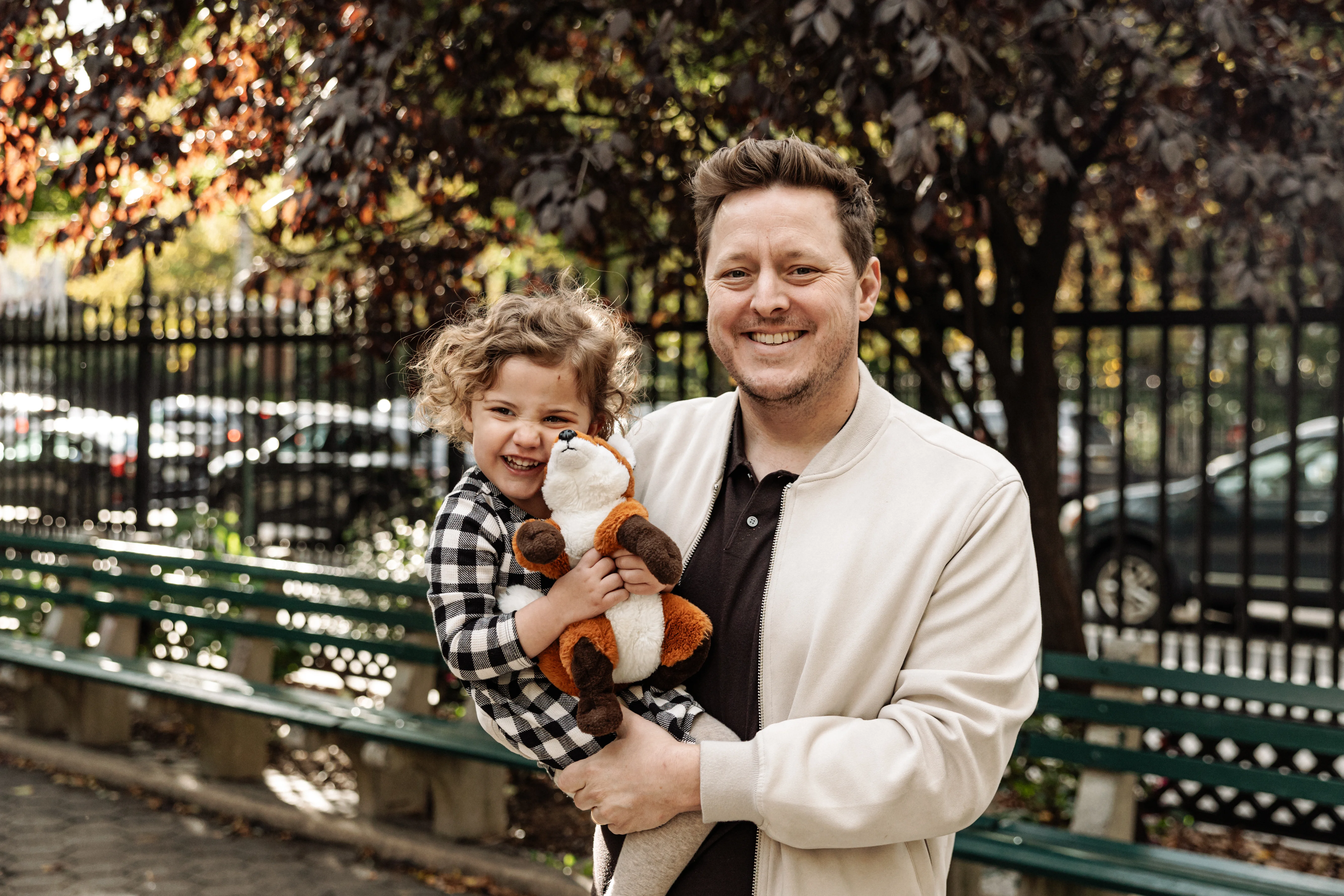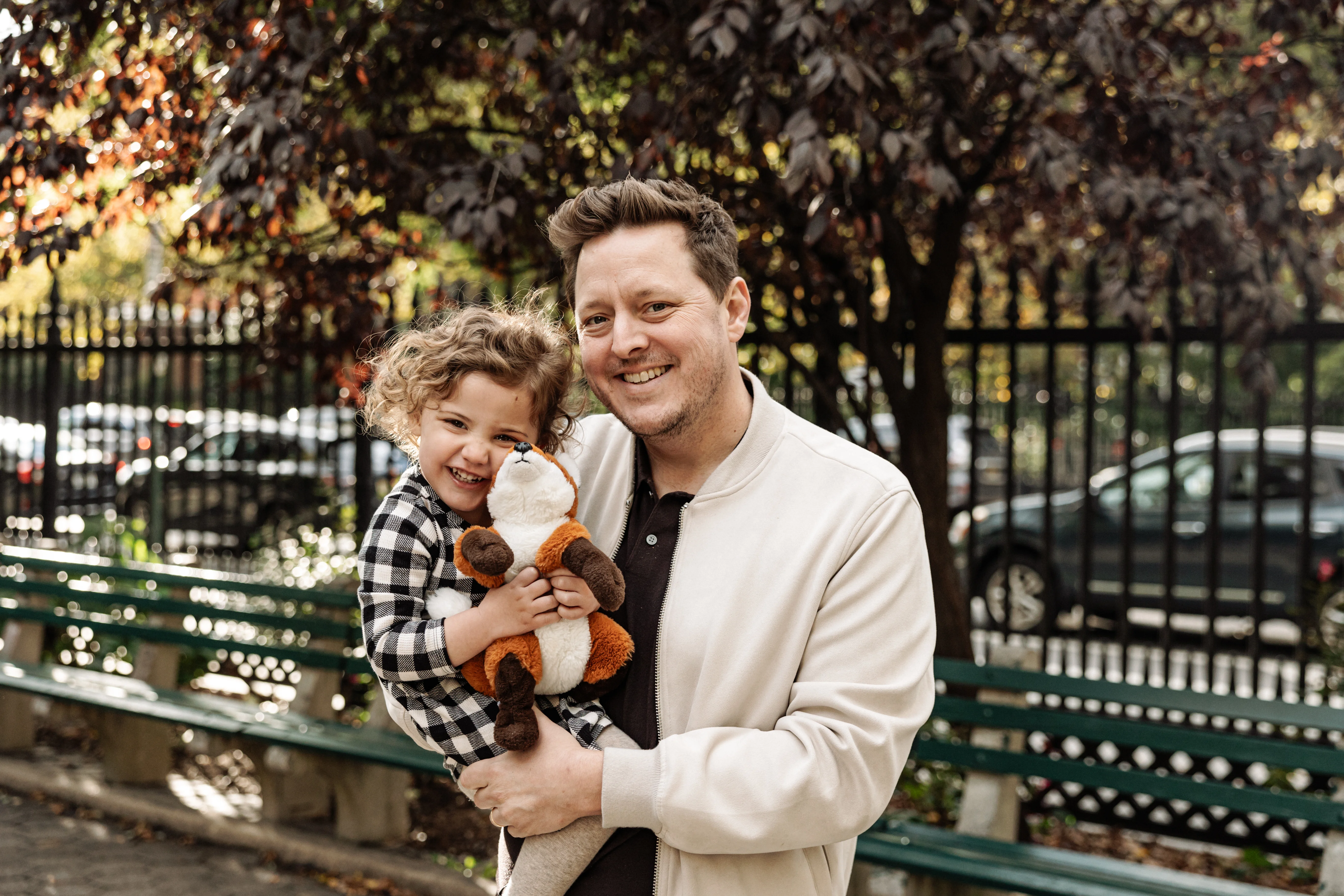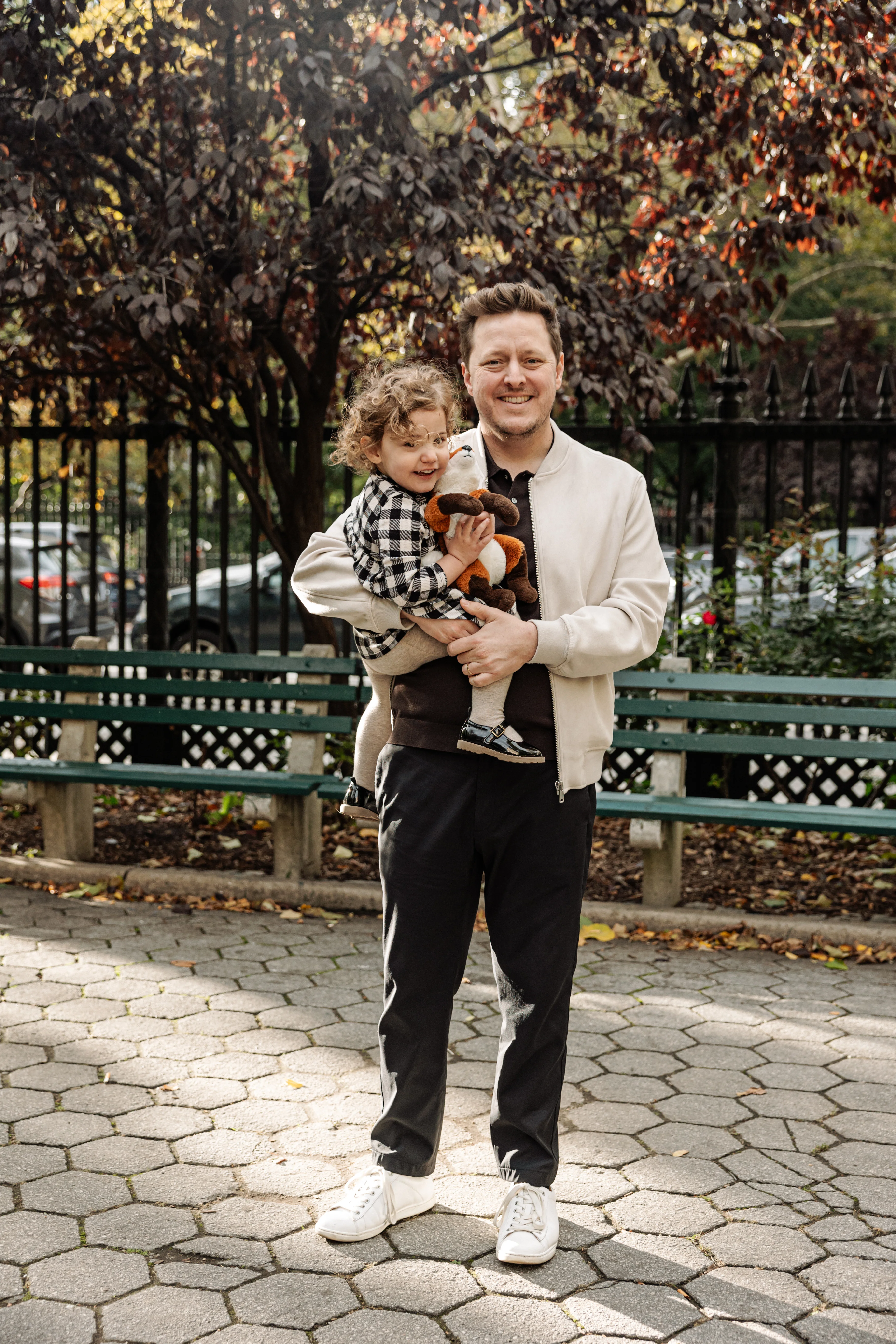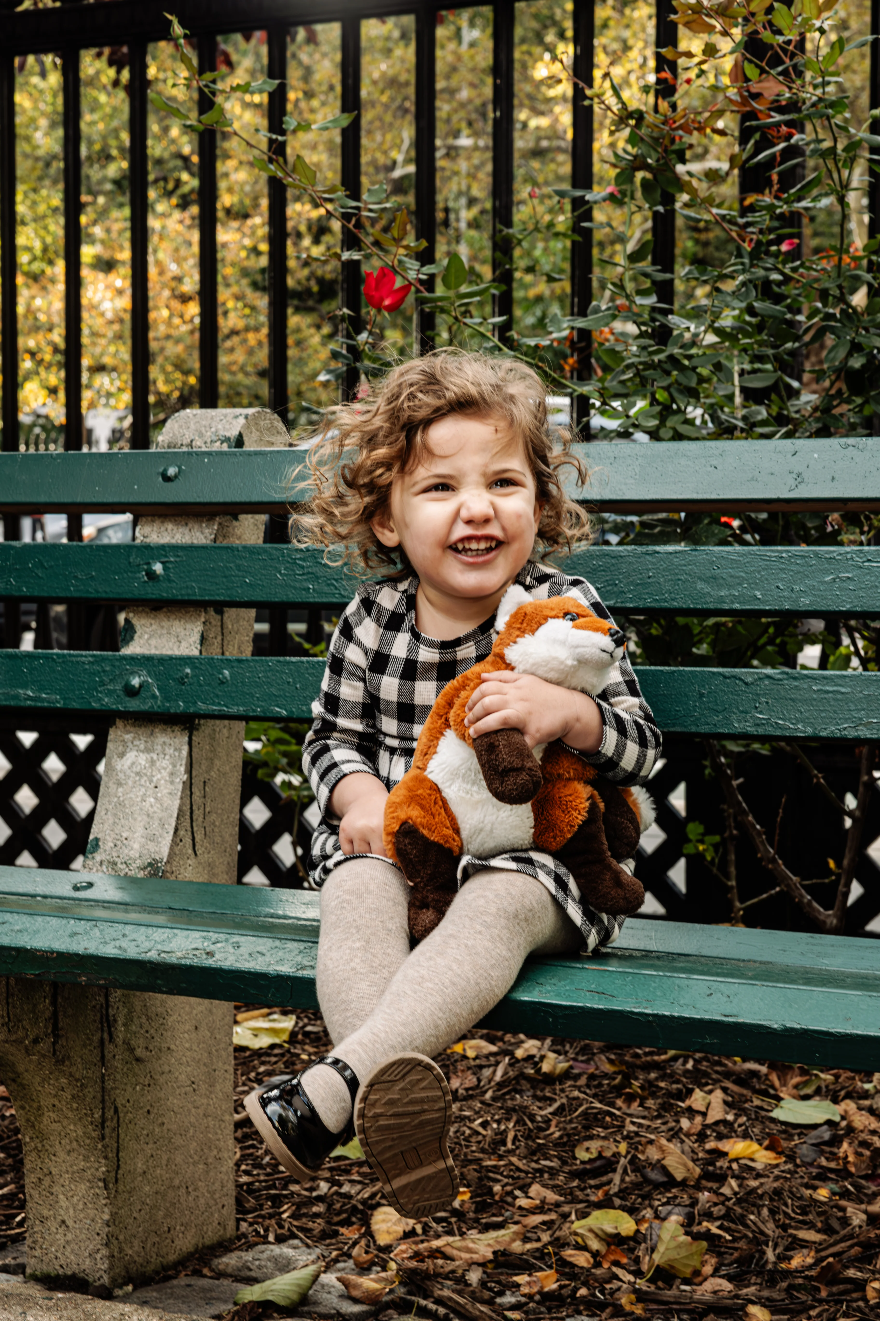 By the time Cristina, Grant and Maeve showed up to Stuyvesant Square on a sunny late October afternoon, this was already our third shoot together. I photographed their maternity session, I was there when Maeve was brand new, and now here we were two years later - Maeve and her extraordinary curls leading the way, absolutely owning every single frame (with Mr. Fox!).