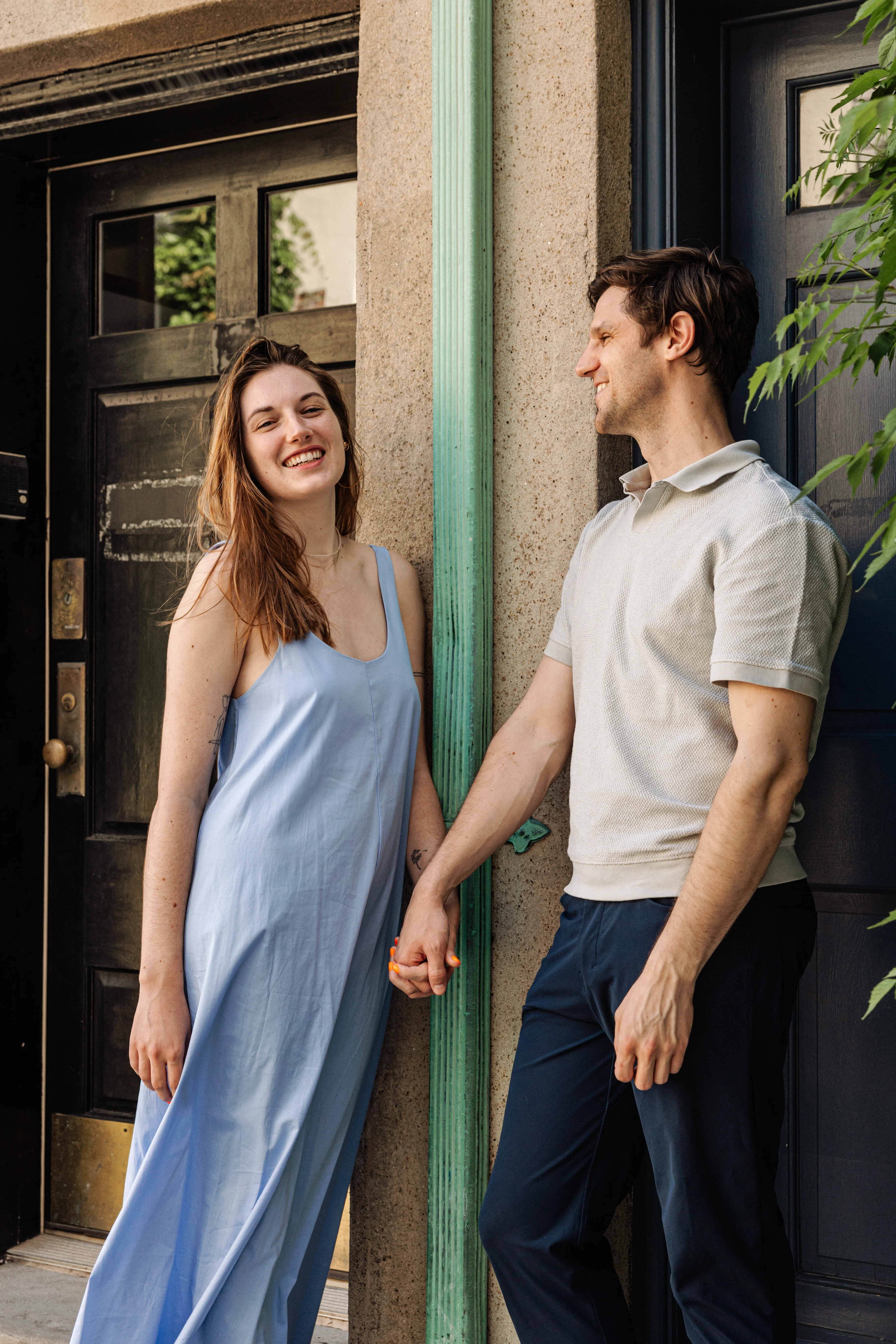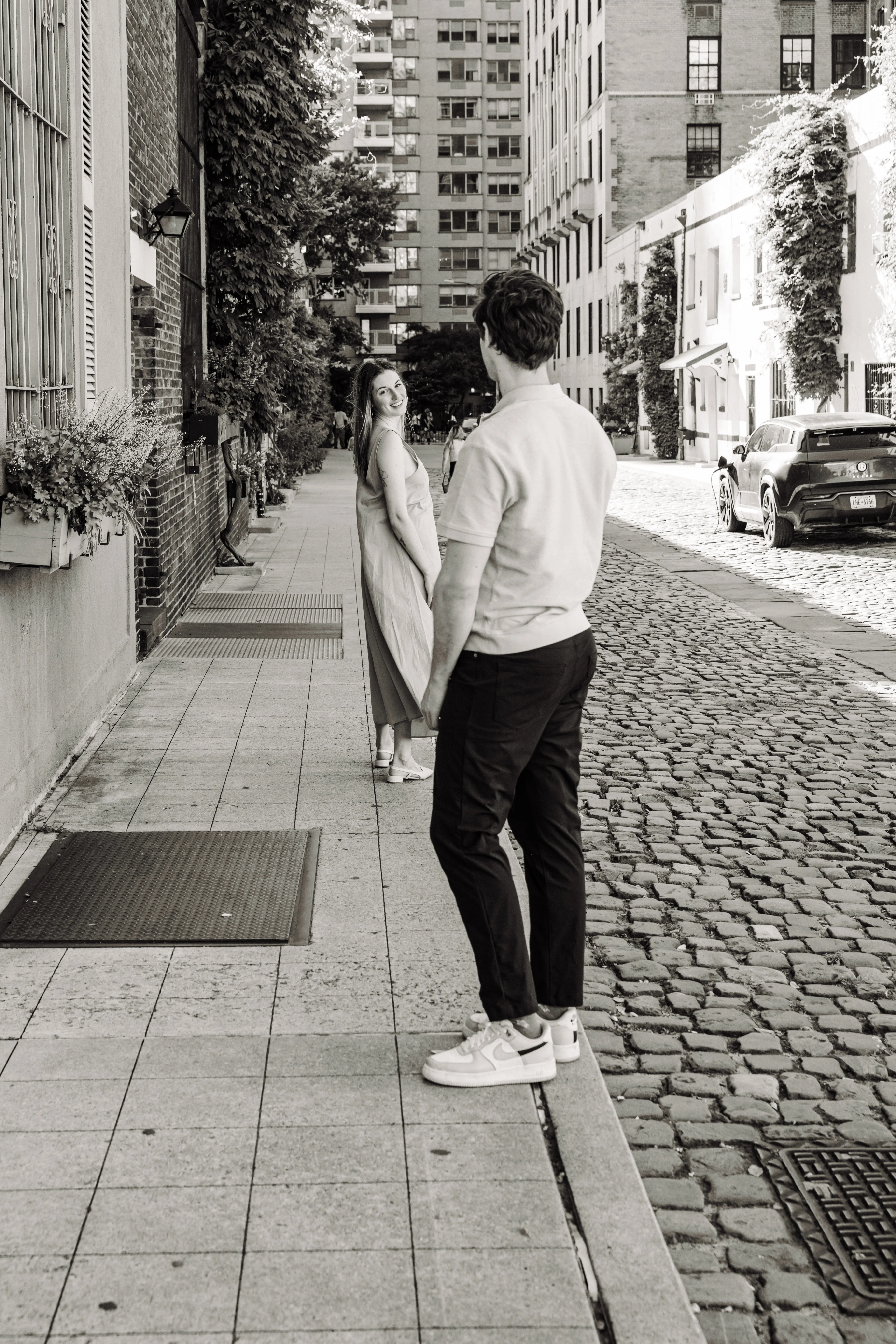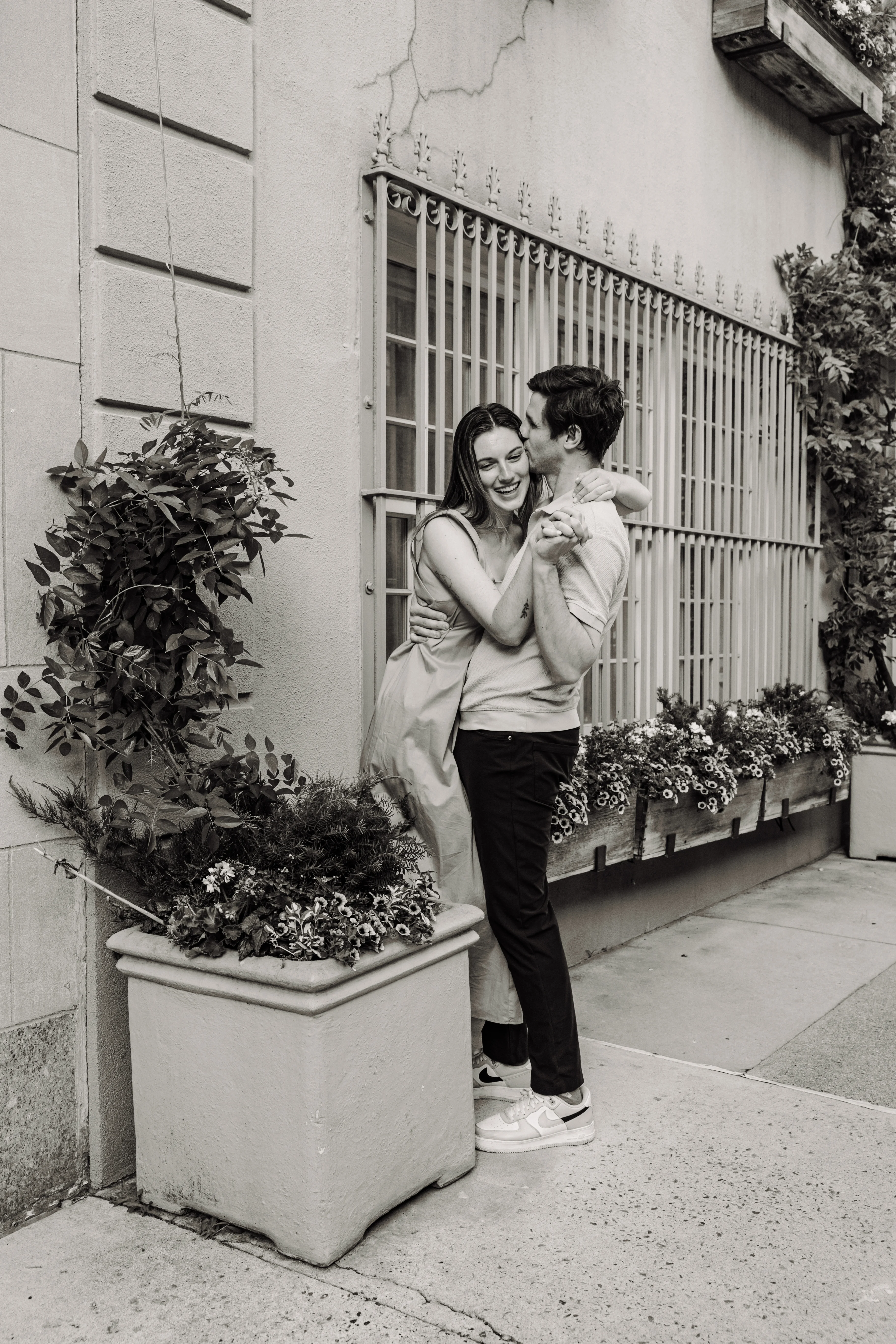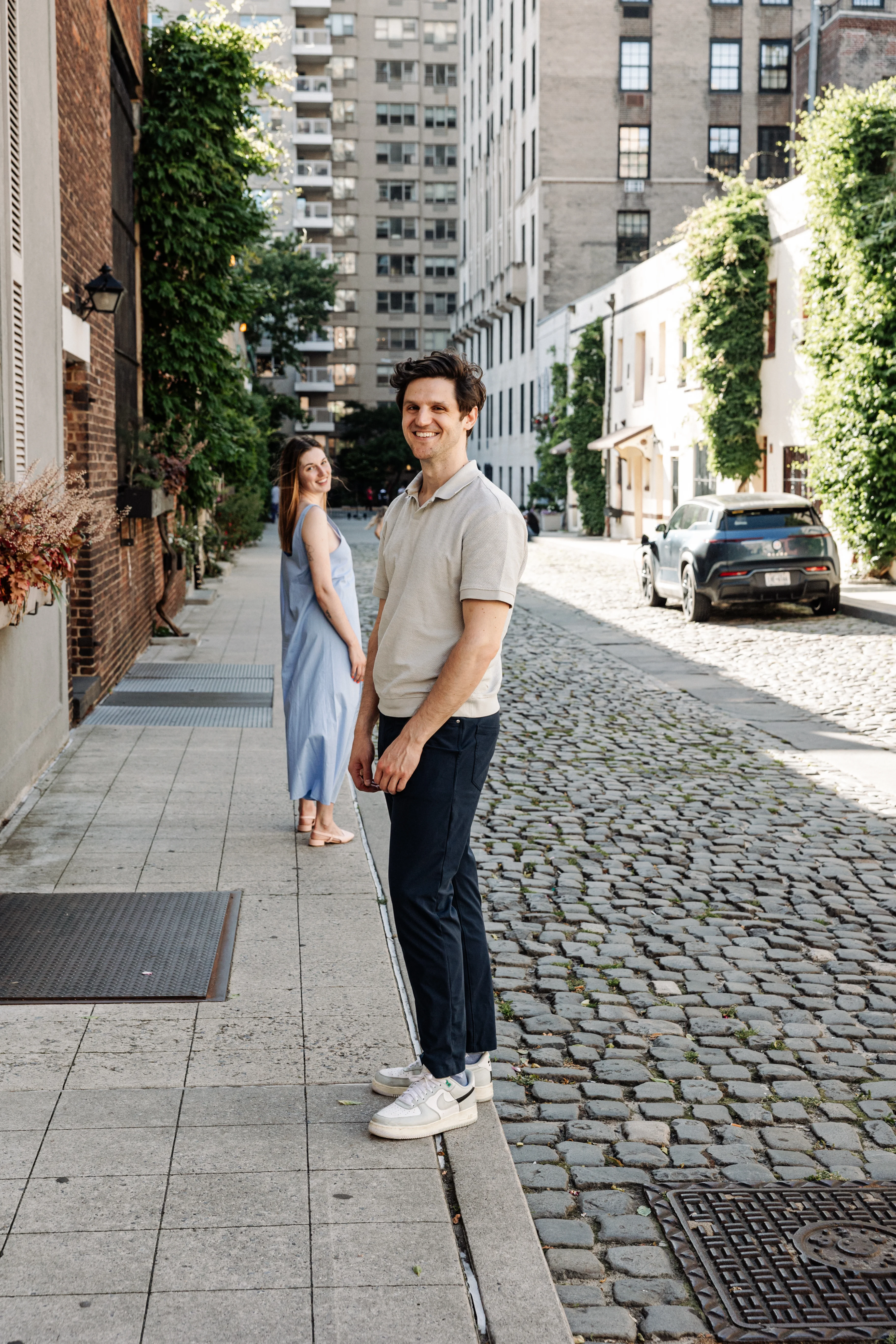 Some couples just have it. From the moment Kristen and Kendrick arrived on the cobblestones of Washington Mews on a warm May afternoon, it was clear this was going to be one of those sessions. She couldn't stop giggling — the kind of laugh you can't fake — and he was completely, utterly enamored of her the entire time. Hands always finding each other, always close, always in their own little world. There is something about two people who are genuinely, effortlessly happy together that makes my job feel less like work and more like a privilege.
