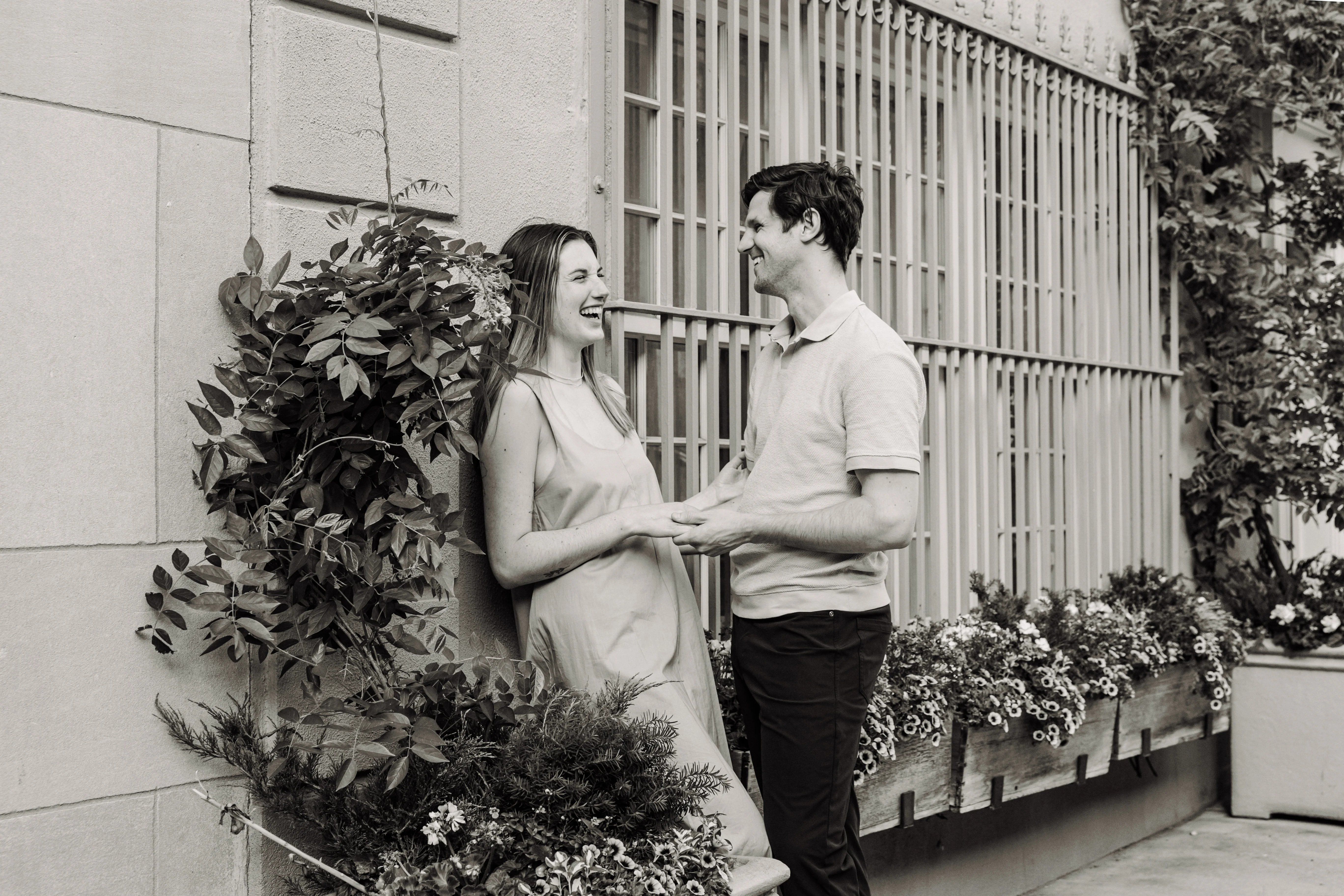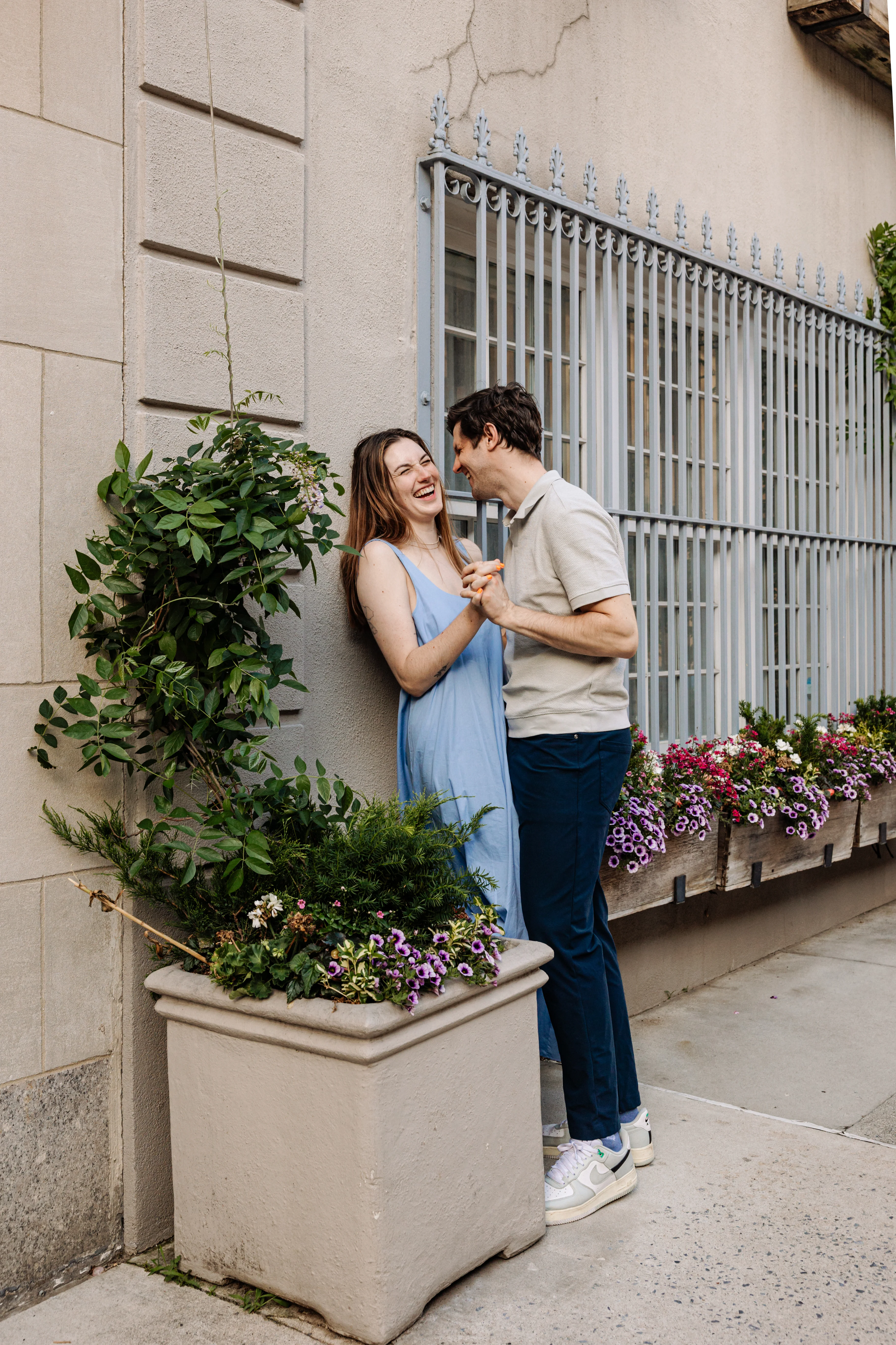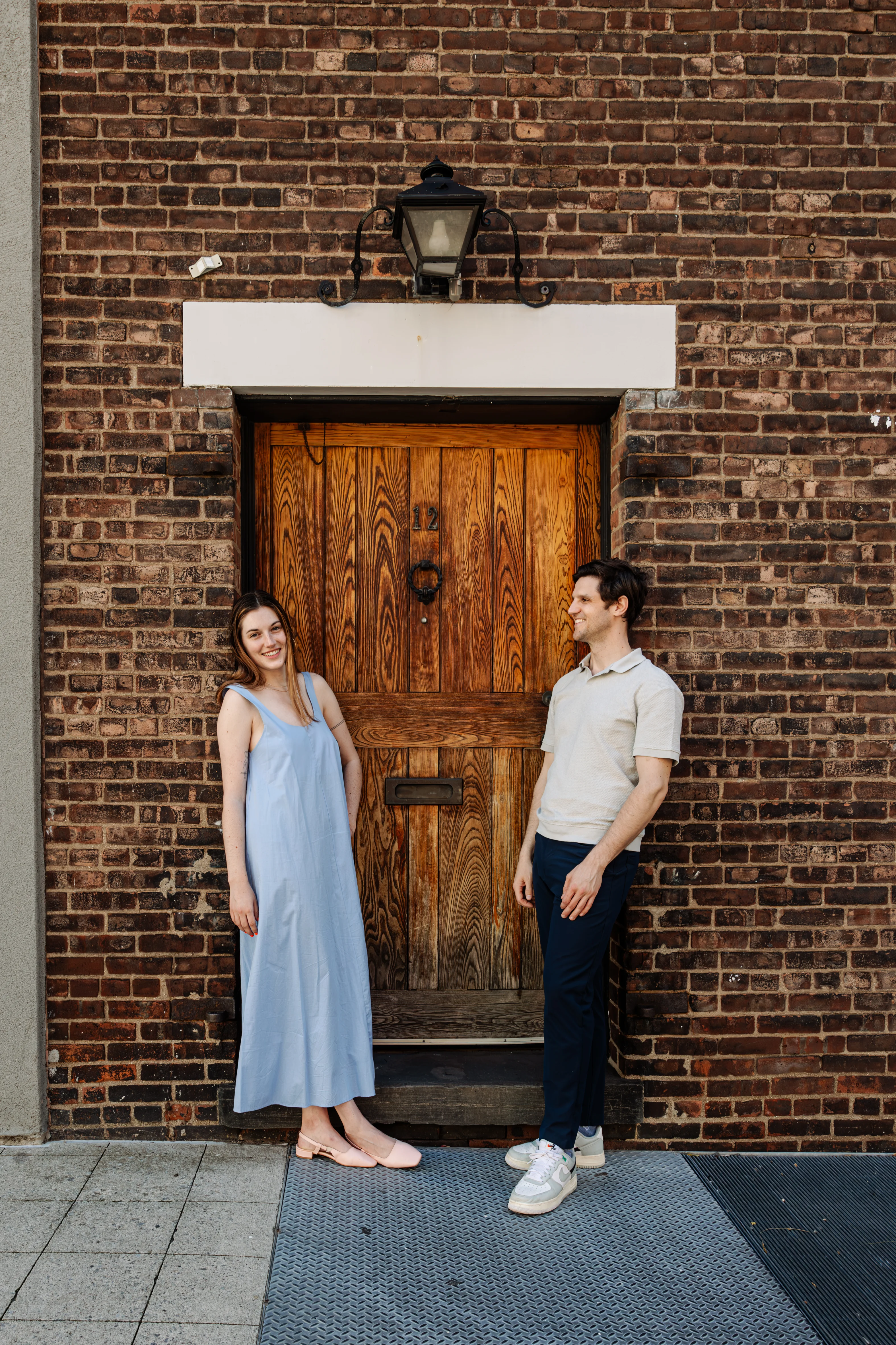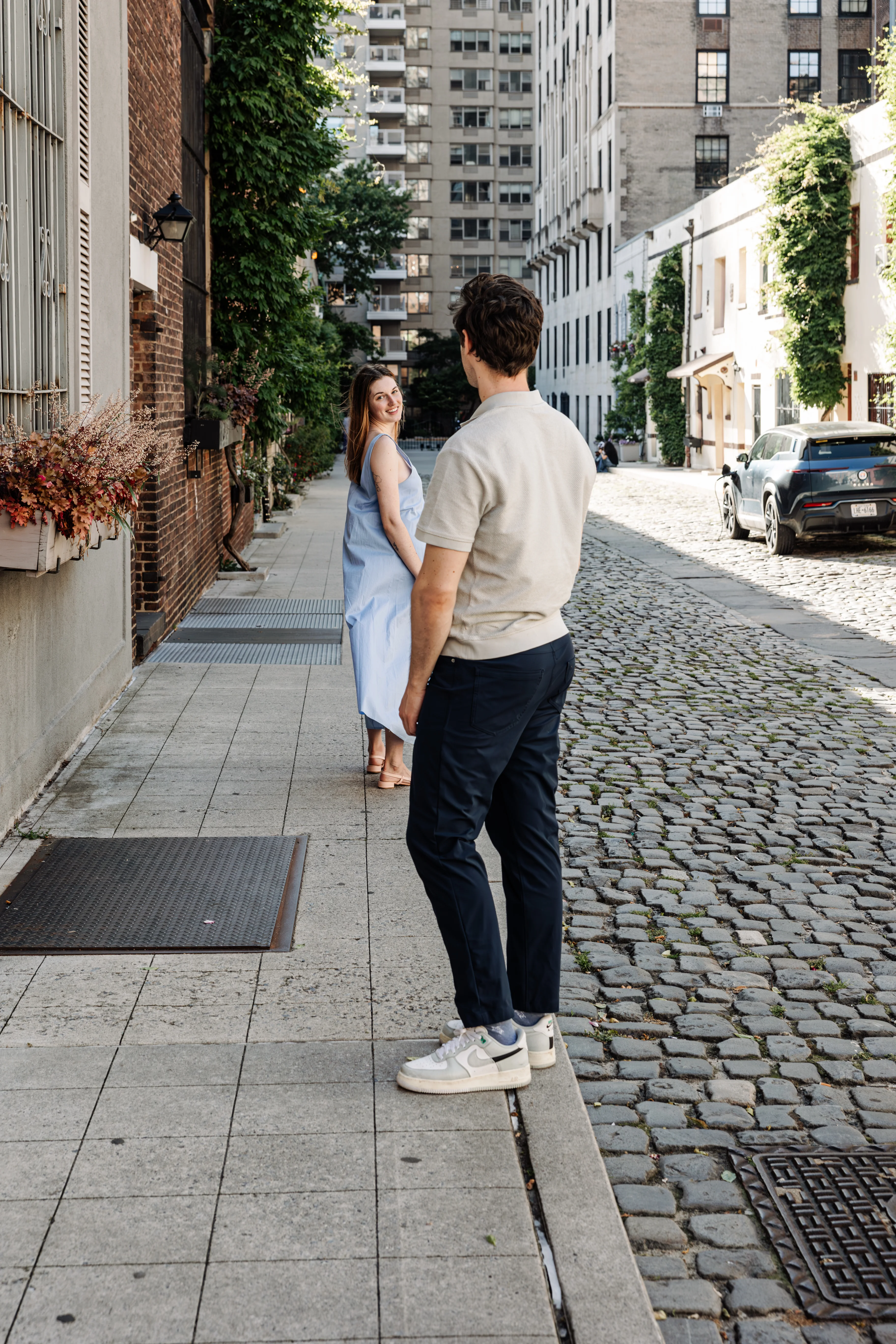 Some couples just have it. From the moment Kristen and Kendrick arrived on the cobblestones of Washington Mews on a warm May afternoon, it was clear this was going to be one of those sessions. She couldn't stop giggling — the kind of laugh you can't fake — and he was completely, utterly enamored of her the entire time. Hands always finding each other, always close, always in their own little world. There is something about two people who are genuinely, effortlessly happy together that makes my job feel less like work and more like a privilege.