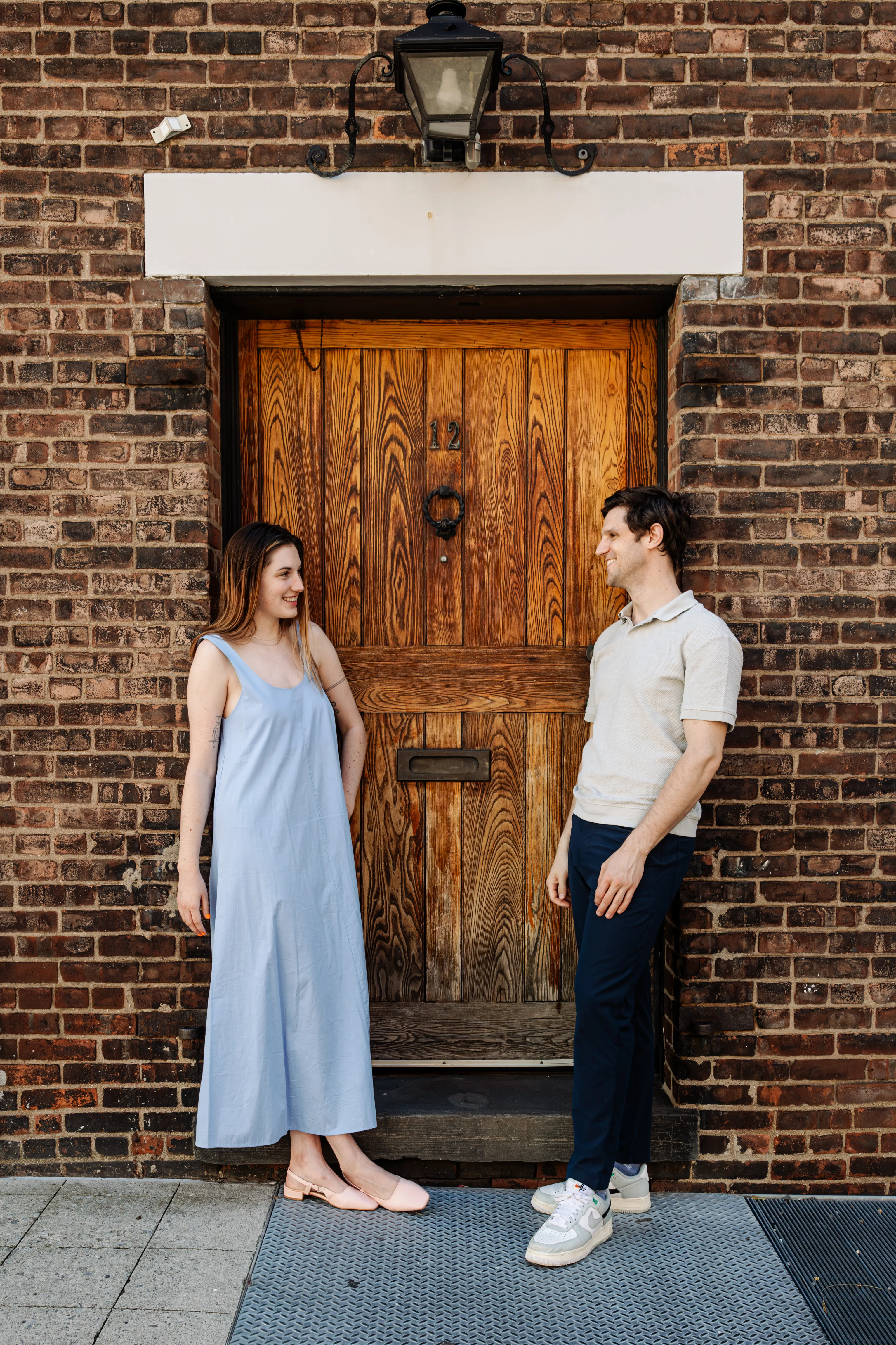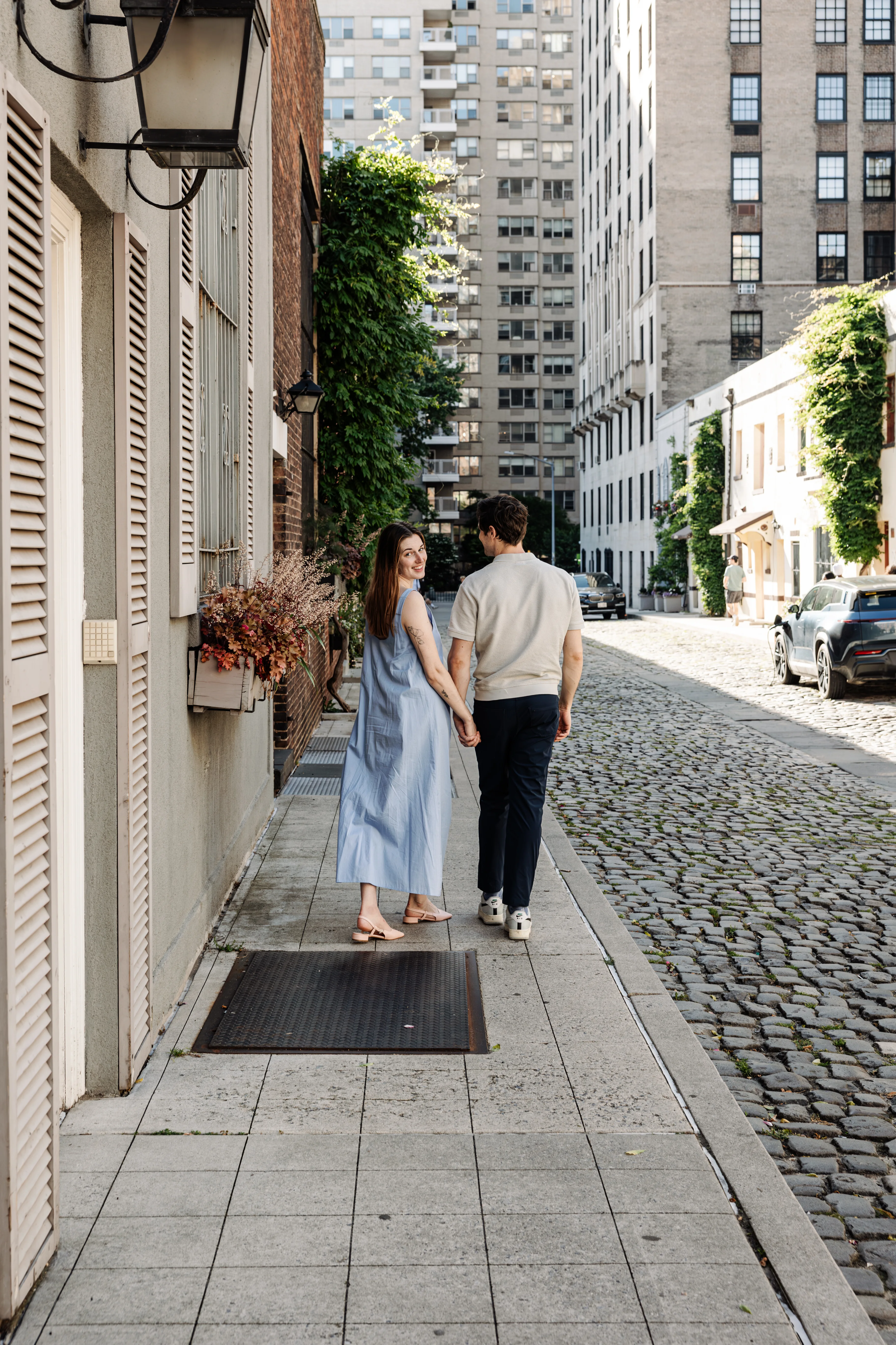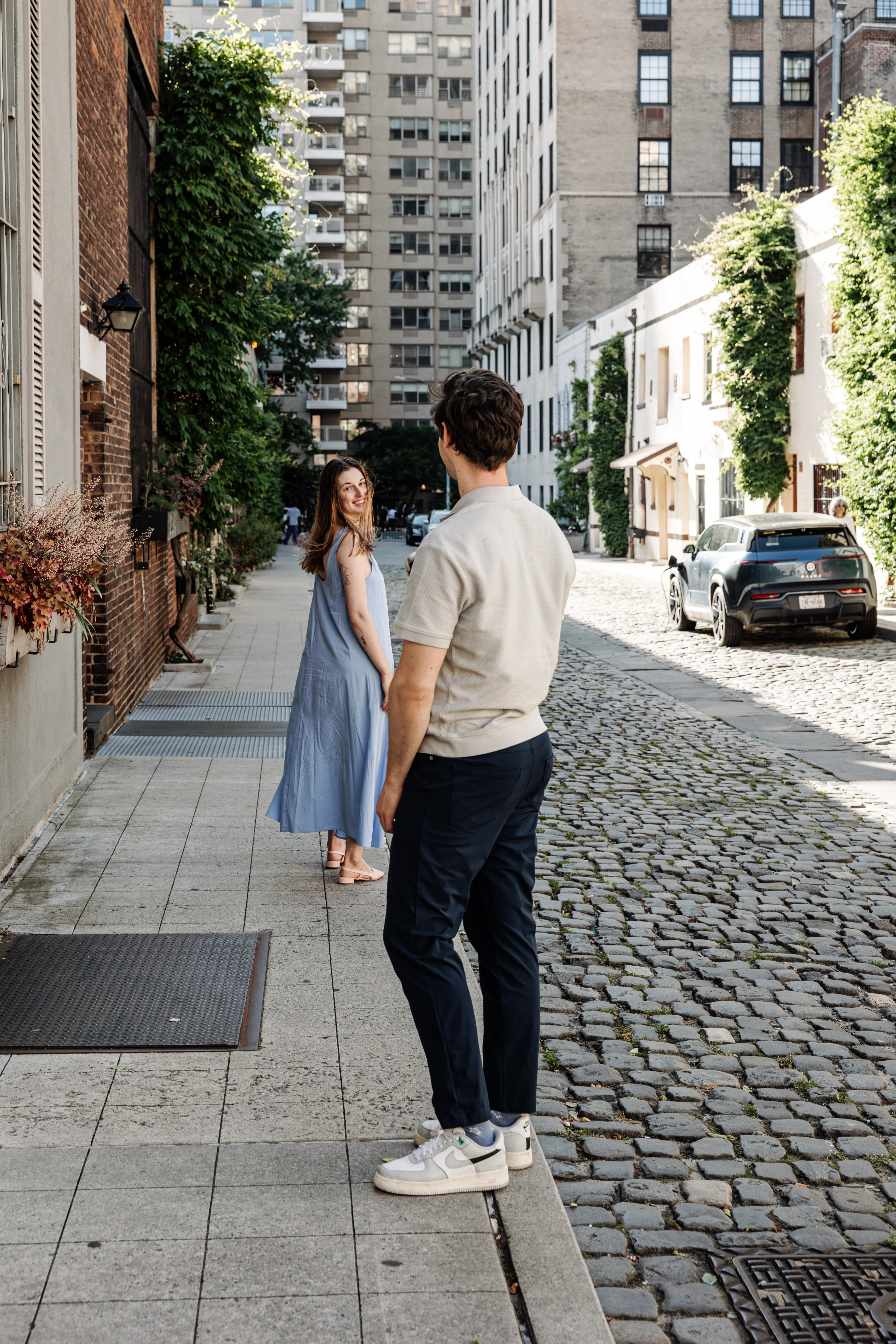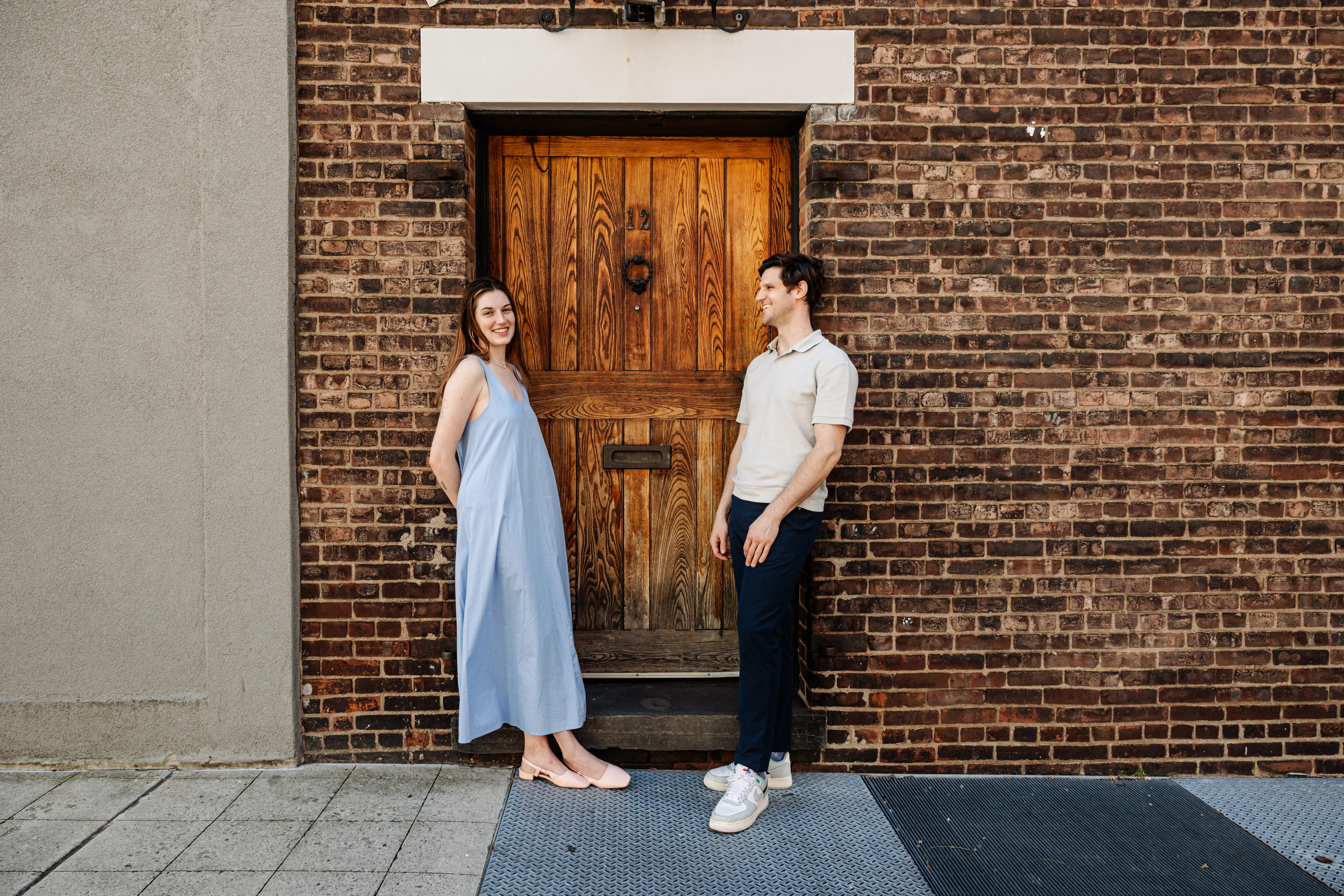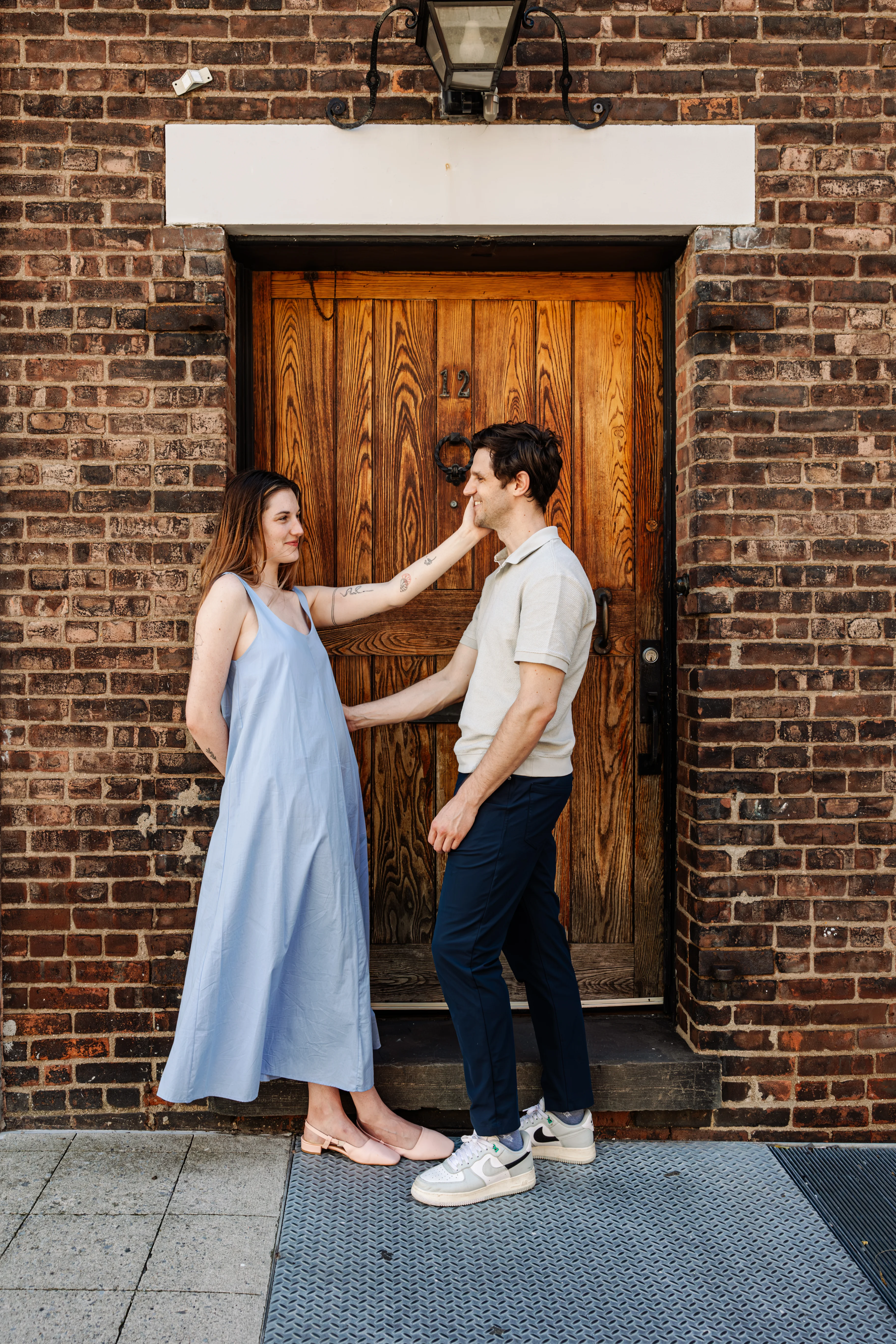 Some couples just have it. From the moment Kristen and Kendrick arrived on the cobblestones of Washington Mews on a warm May afternoon, it was clear this was going to be one of those sessions. She couldn't stop giggling — the kind of laugh you can't fake — and he was completely, utterly enamored of her the entire time. Hands always finding each other, always close, always in their own little world. There is something about two people who are genuinely, effortlessly happy together that makes my job feel less like work and more like a privilege.