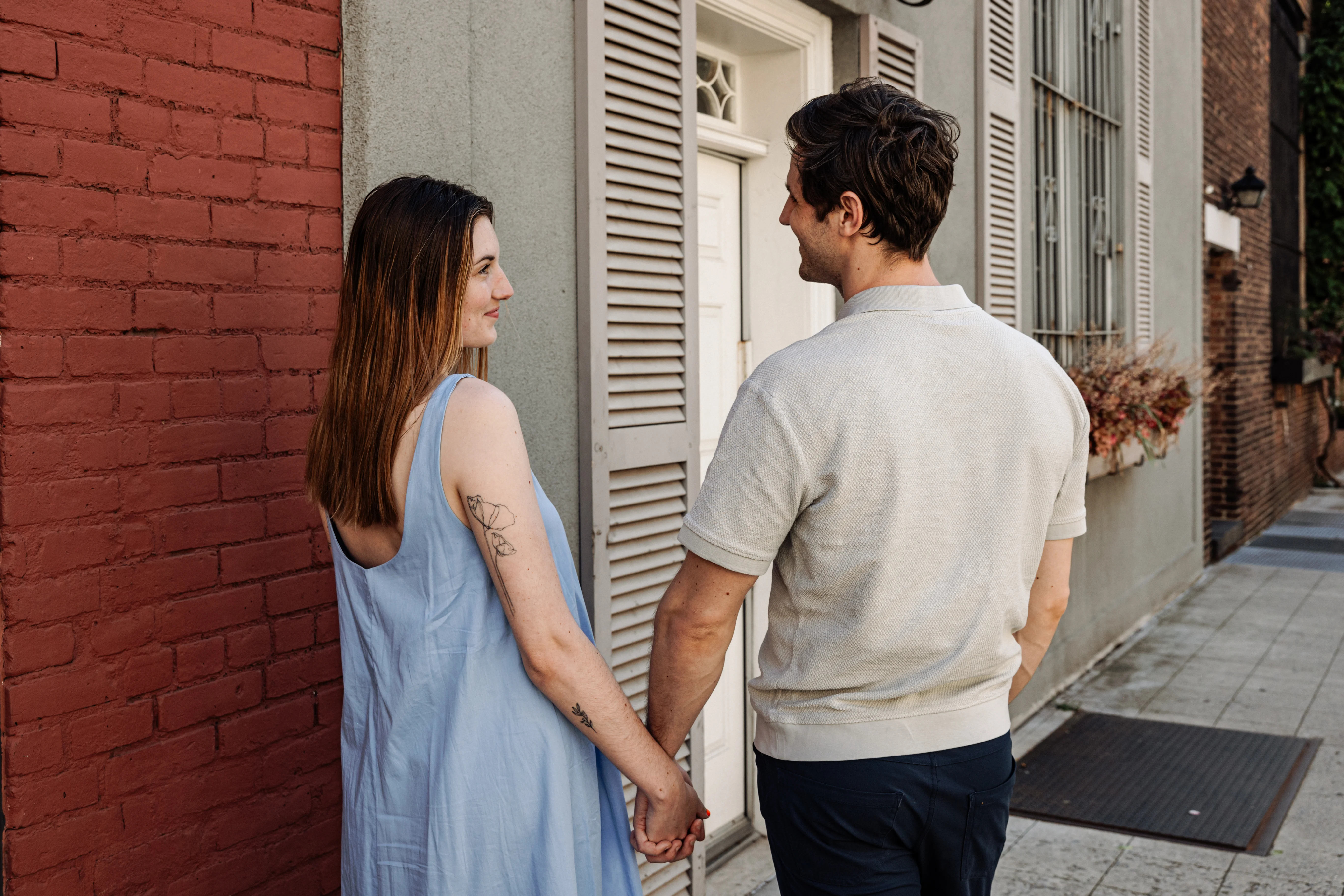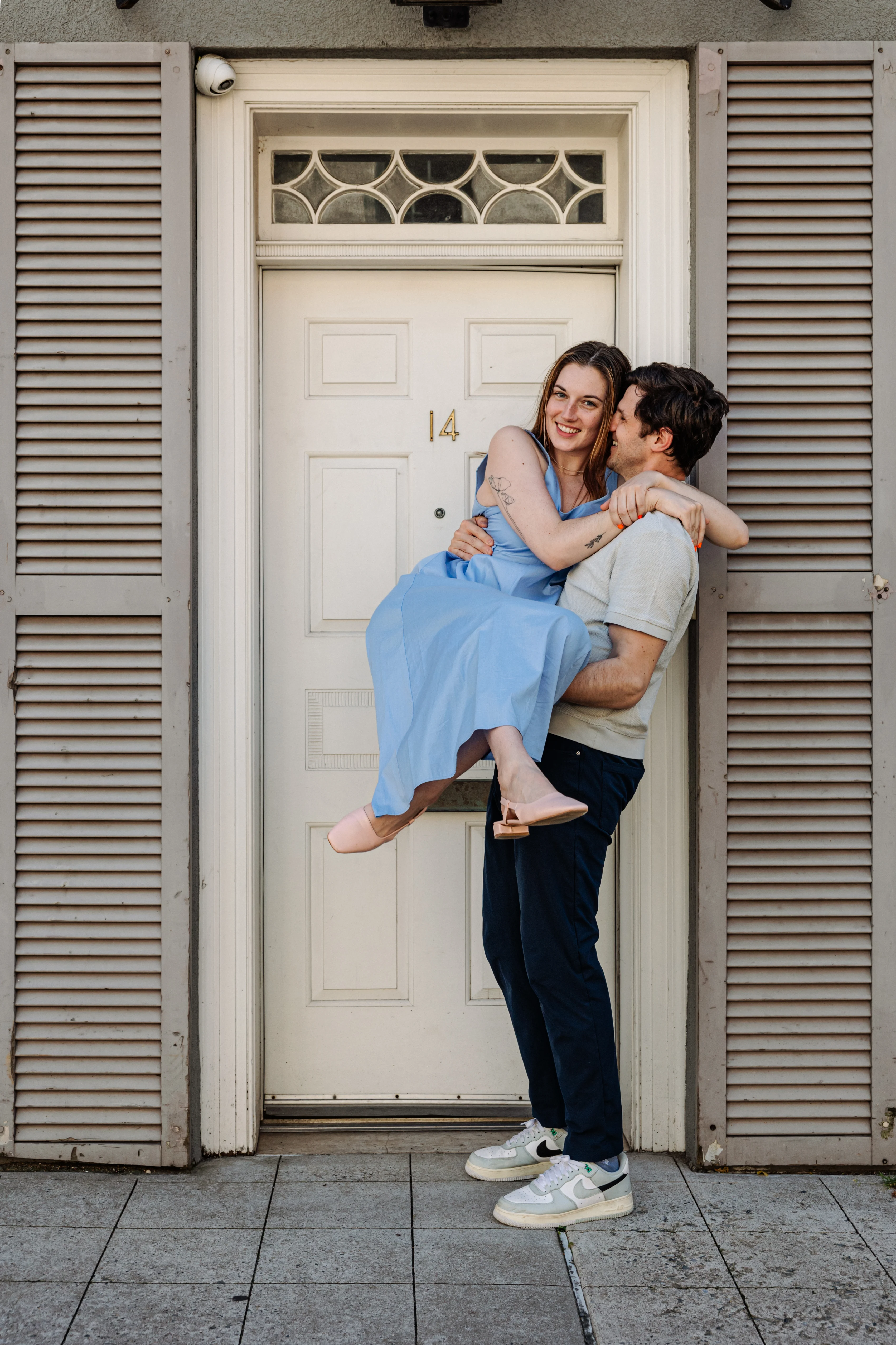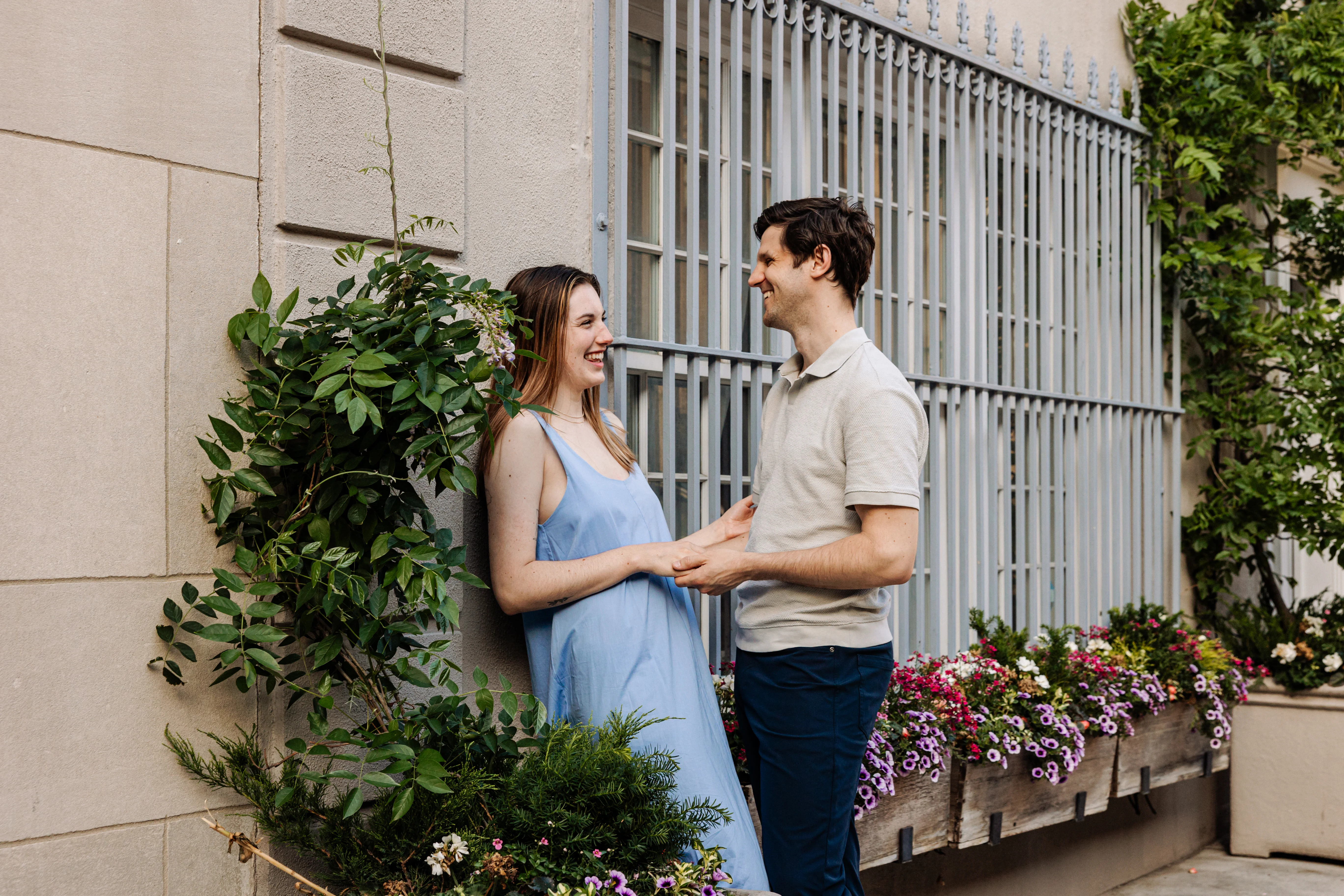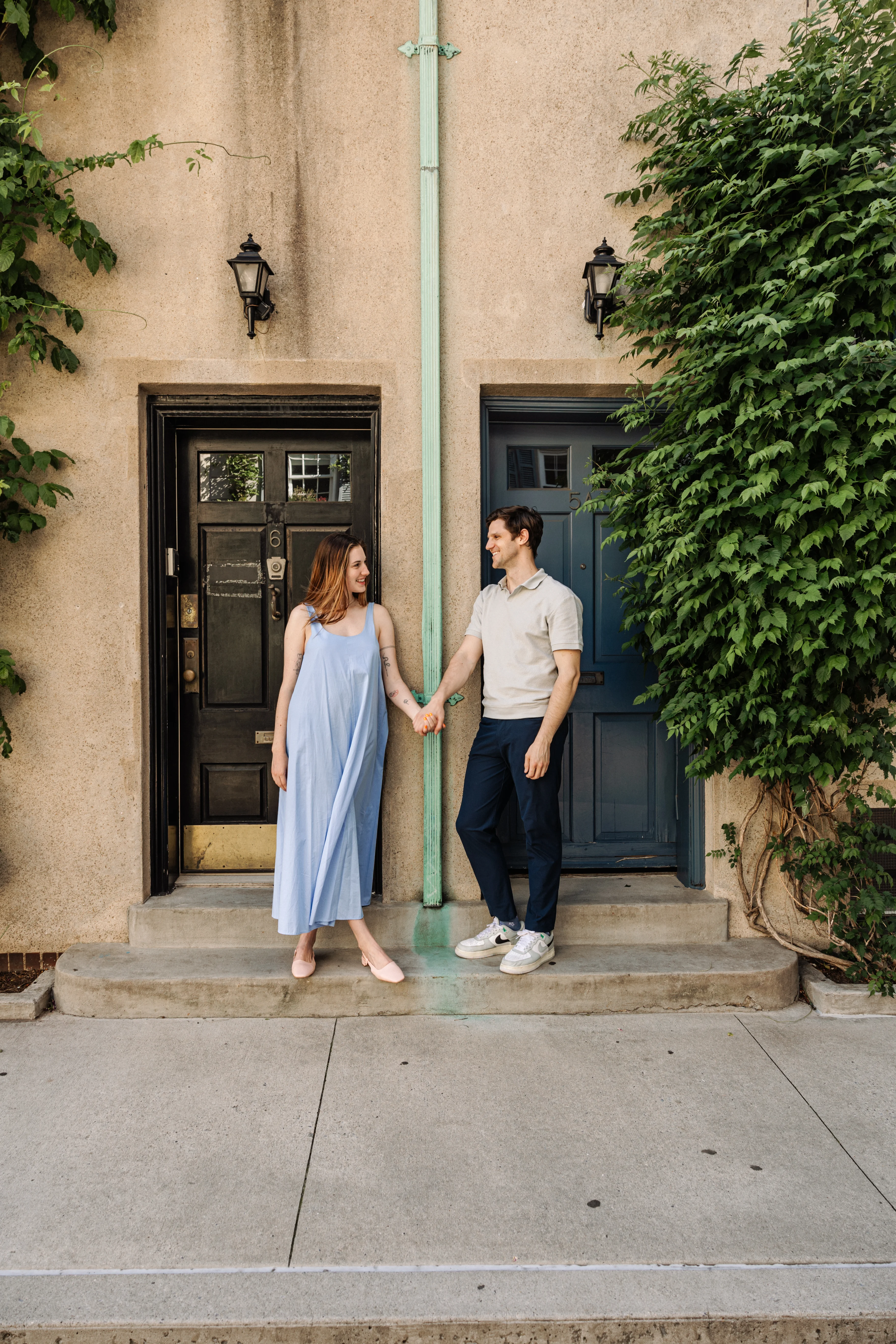 Some couples just have it. From the moment Kristen and Kendrick arrived on the cobblestones of Washington Mews on a warm May afternoon, it was clear this was going to be one of those sessions. She couldn't stop giggling — the kind of laugh you can't fake — and he was completely, utterly enamored of her the entire time. Hands always finding each other, always close, always in their own little world. There is something about two people who are genuinely, effortlessly happy together that makes my job feel less like work and more like a privilege.