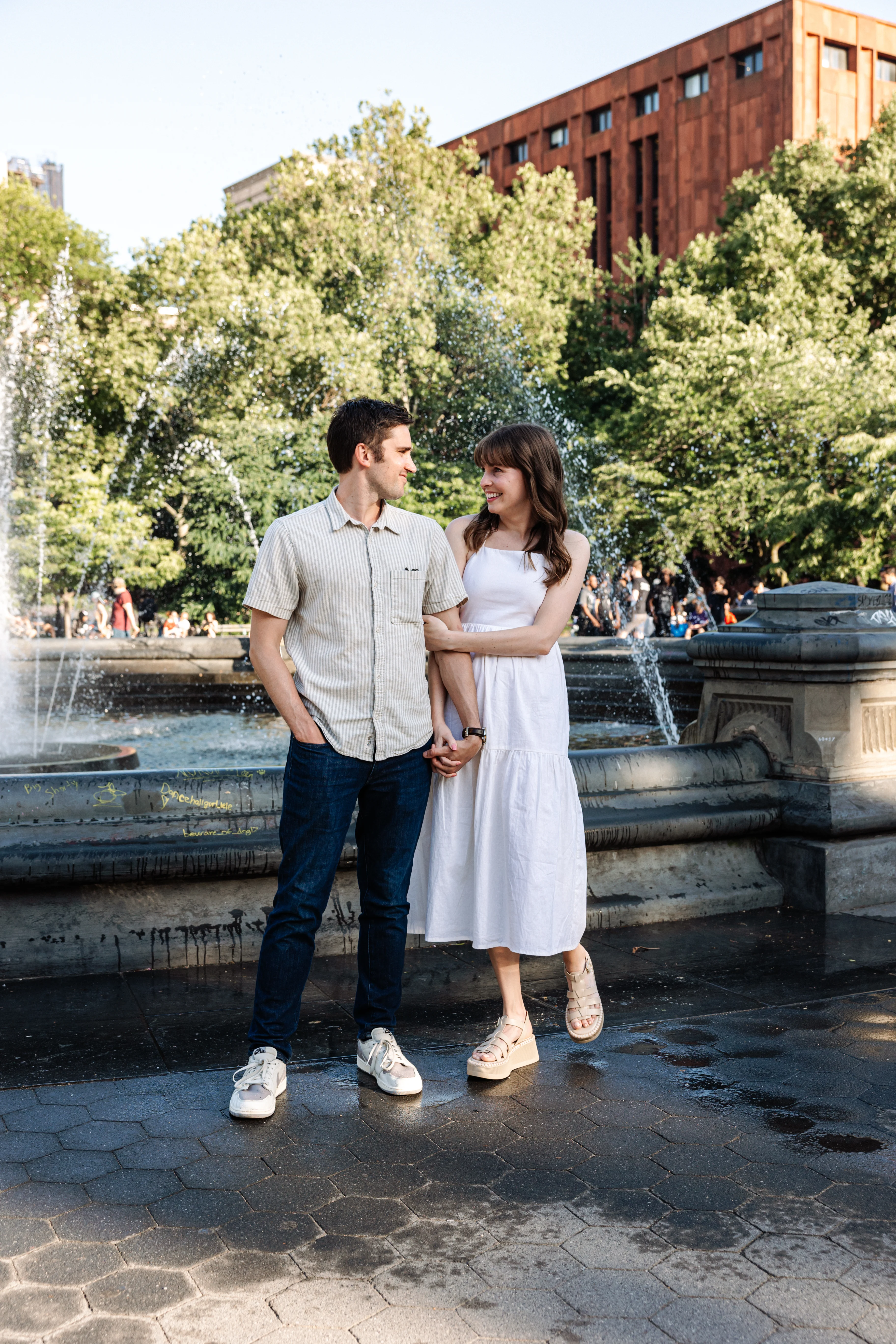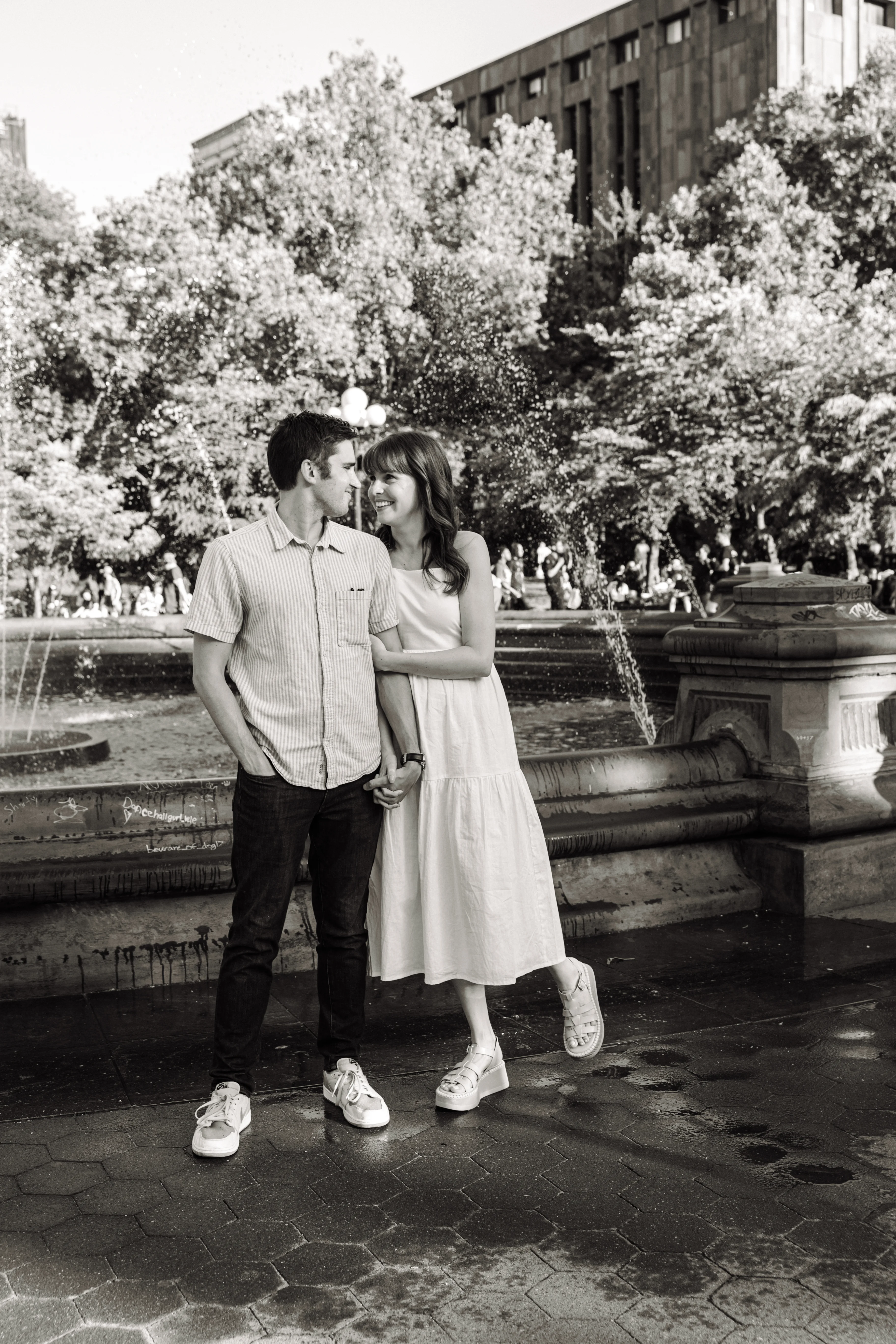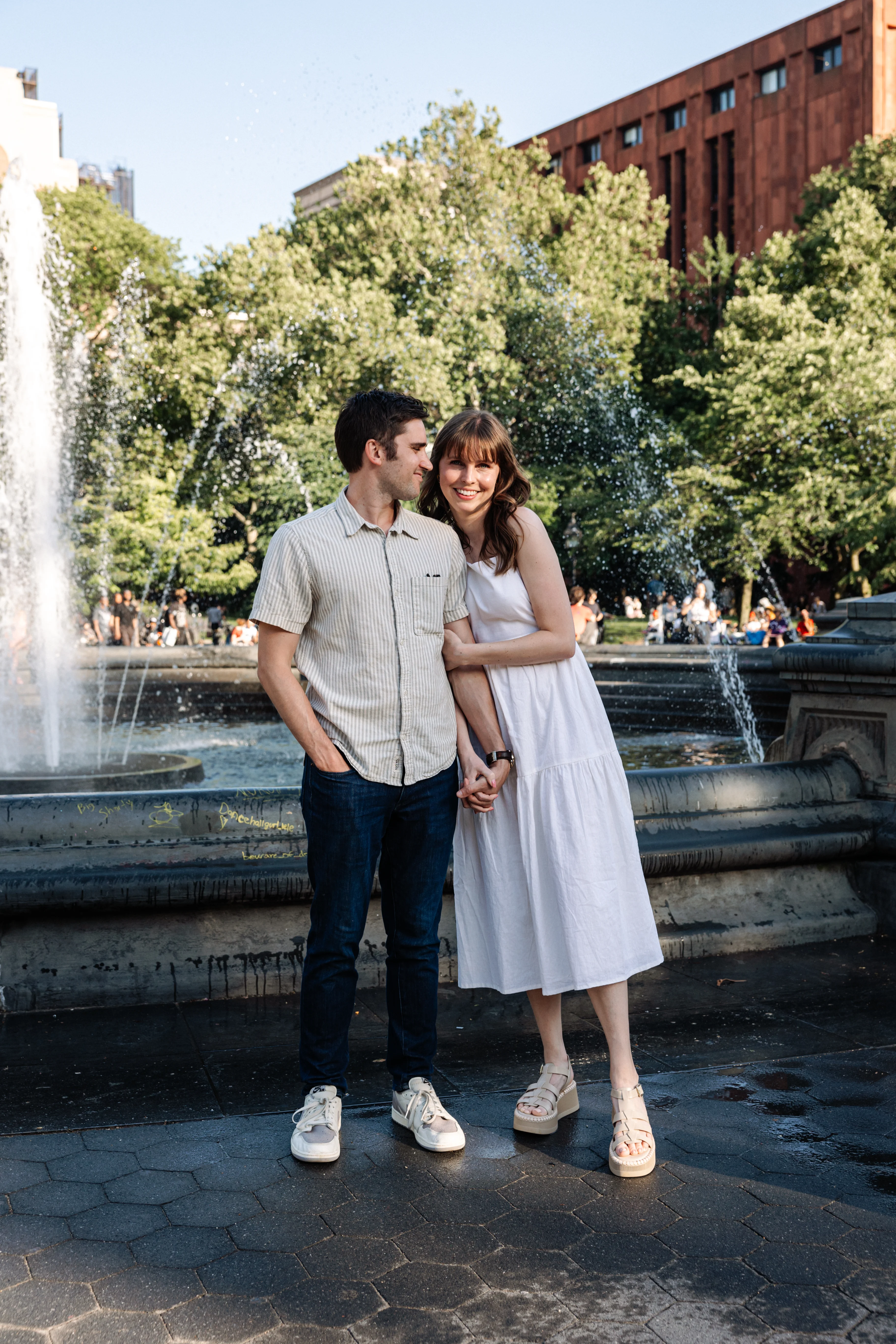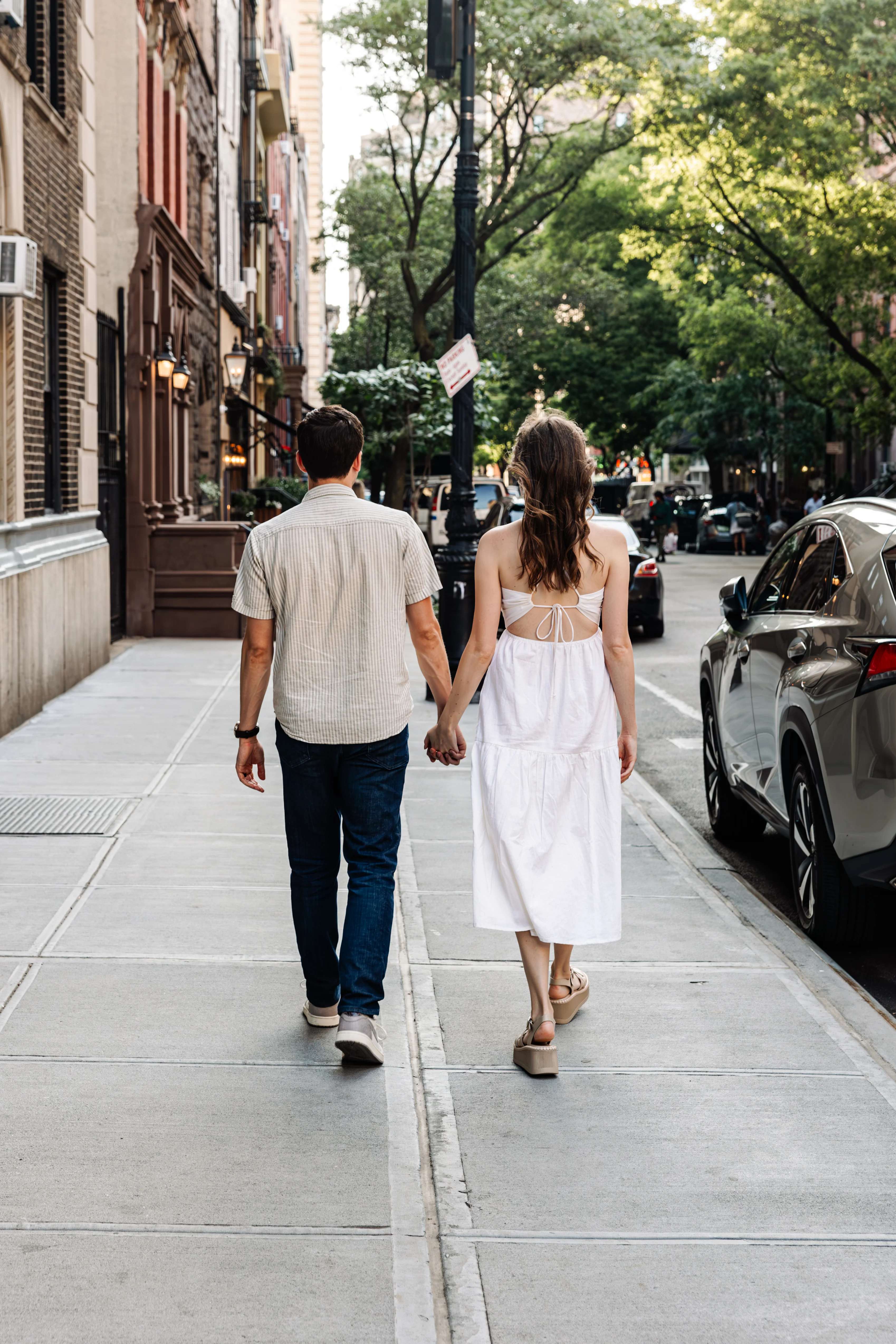 It was warm, Maggie was in all white - already David's wife for years, and still very much his bride. We started at Washington Mews and wound our way through the streets of Greenwich Village, yellow cabs rolling by in that perfectly chaotic way, through Washington Square Park (with the fountain bursting!), all the way to the middle of Sixth Avenue where IYKYK — one of the best views of the Freedom Tower in the entire city. We finished up right outside of their subway stop.