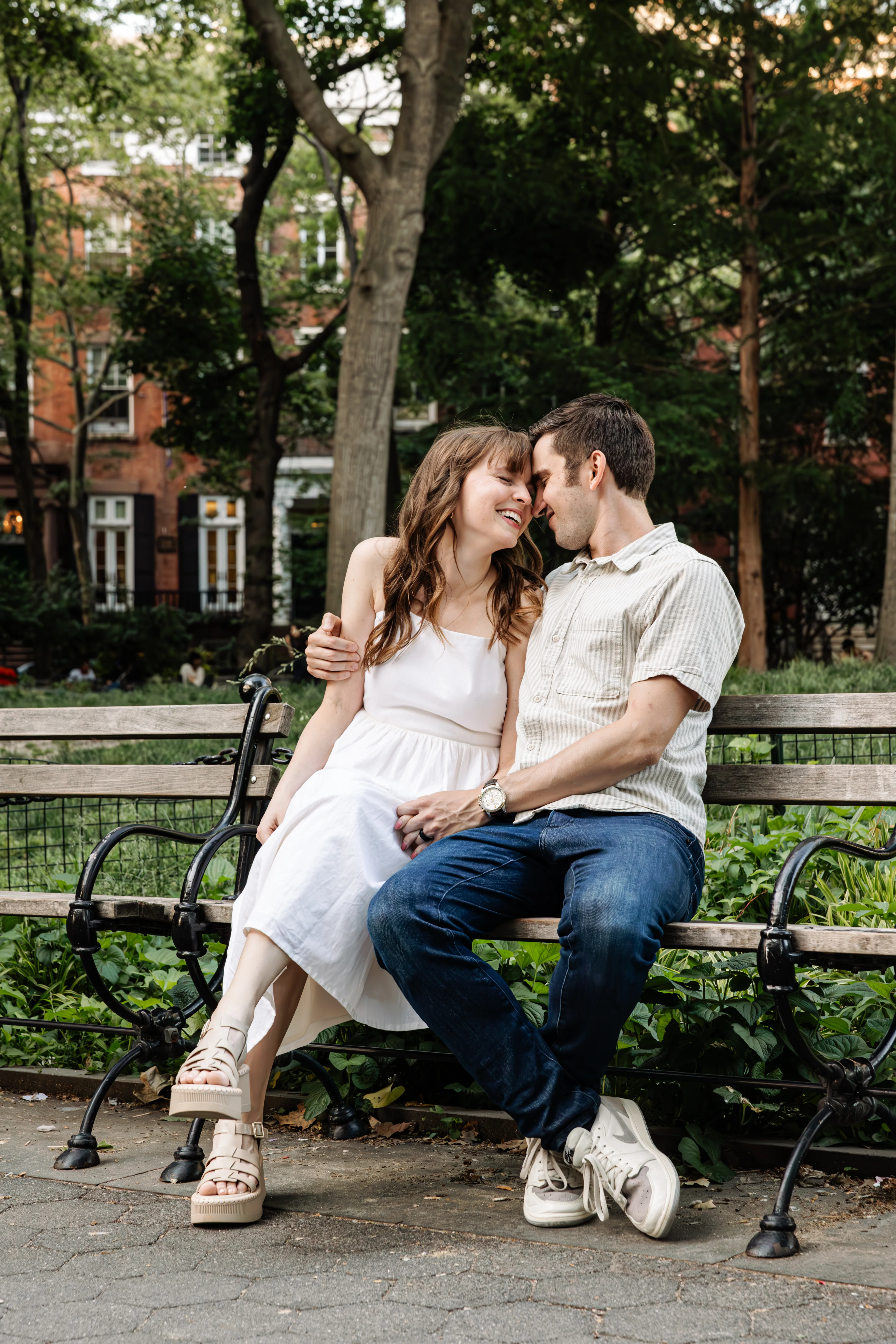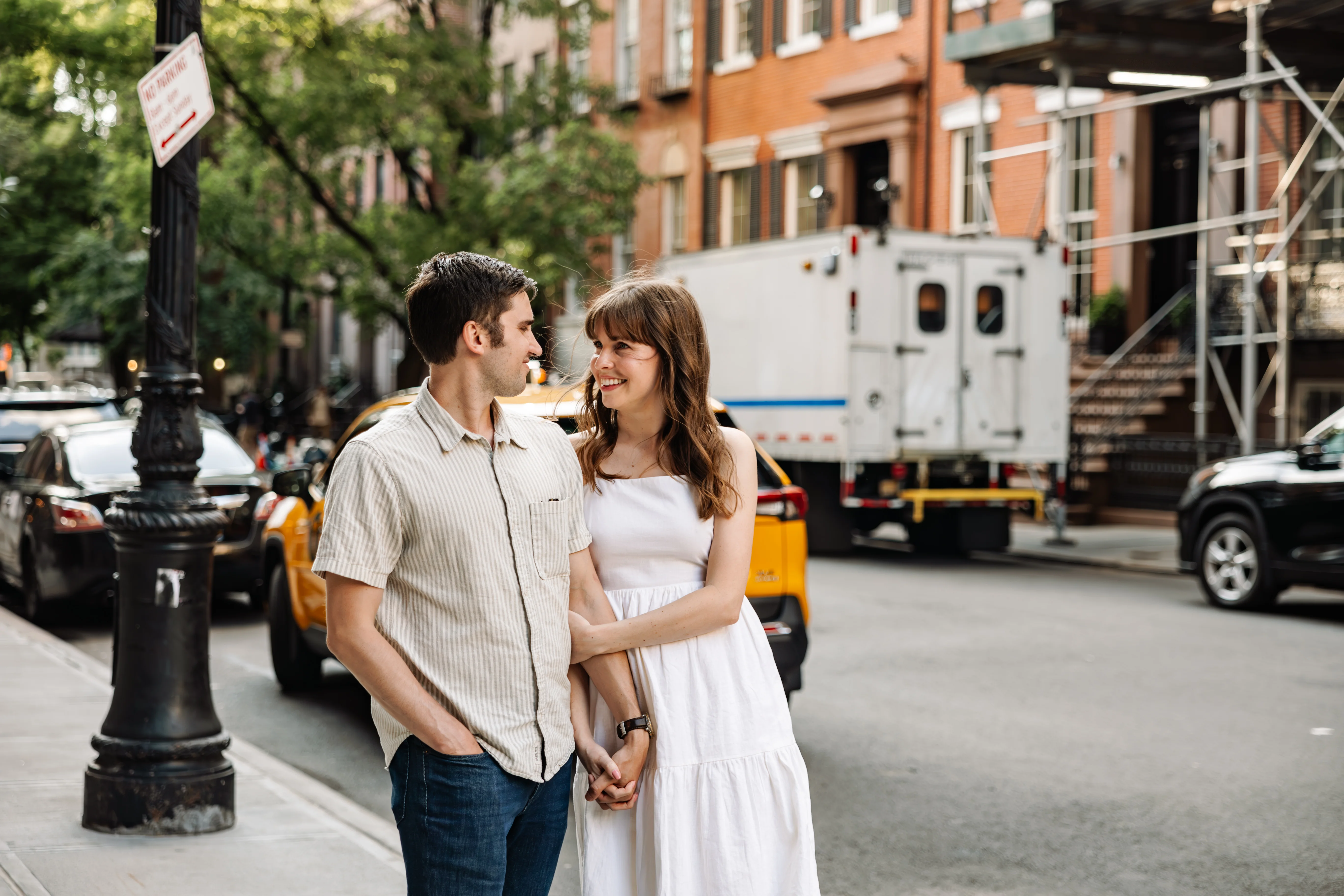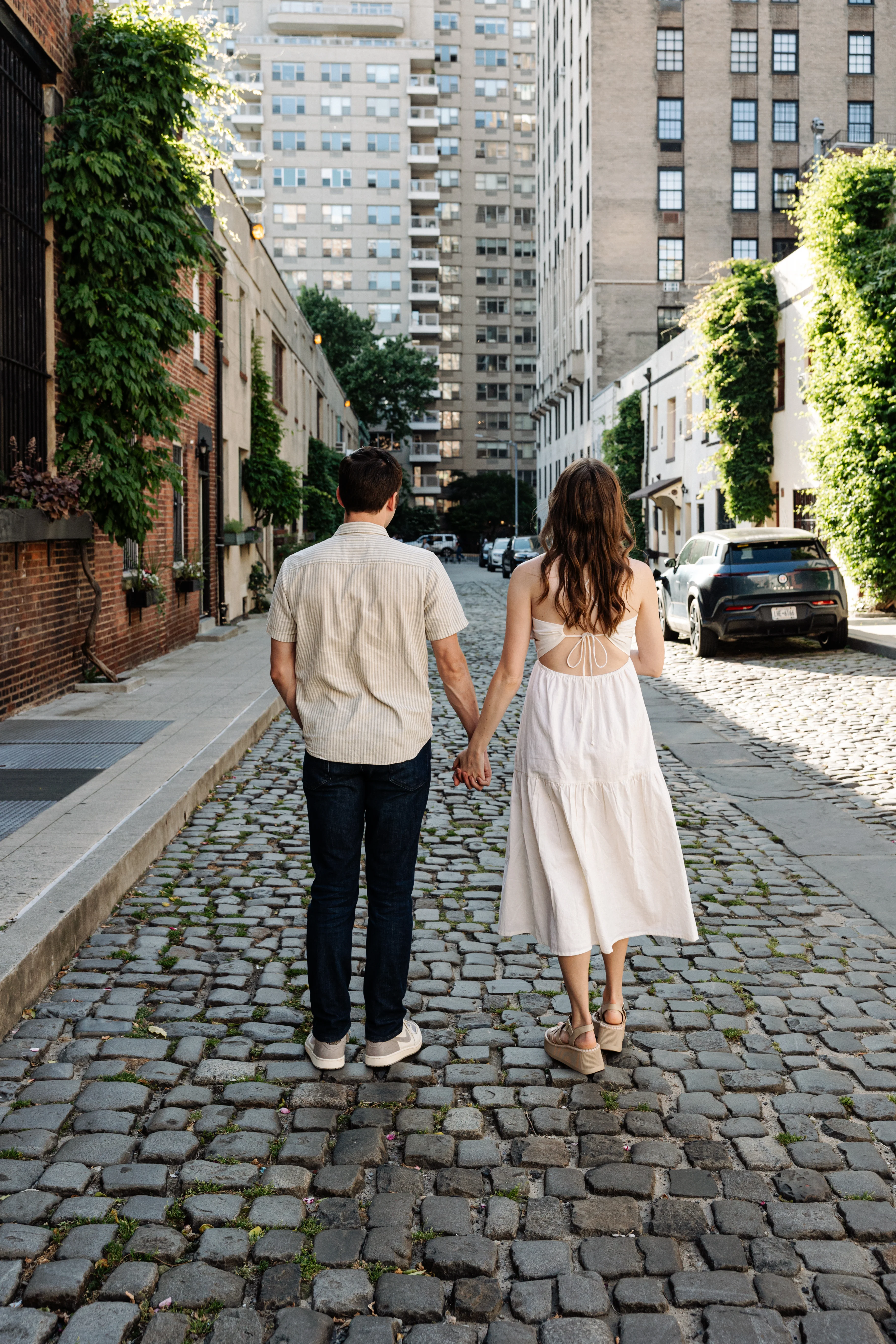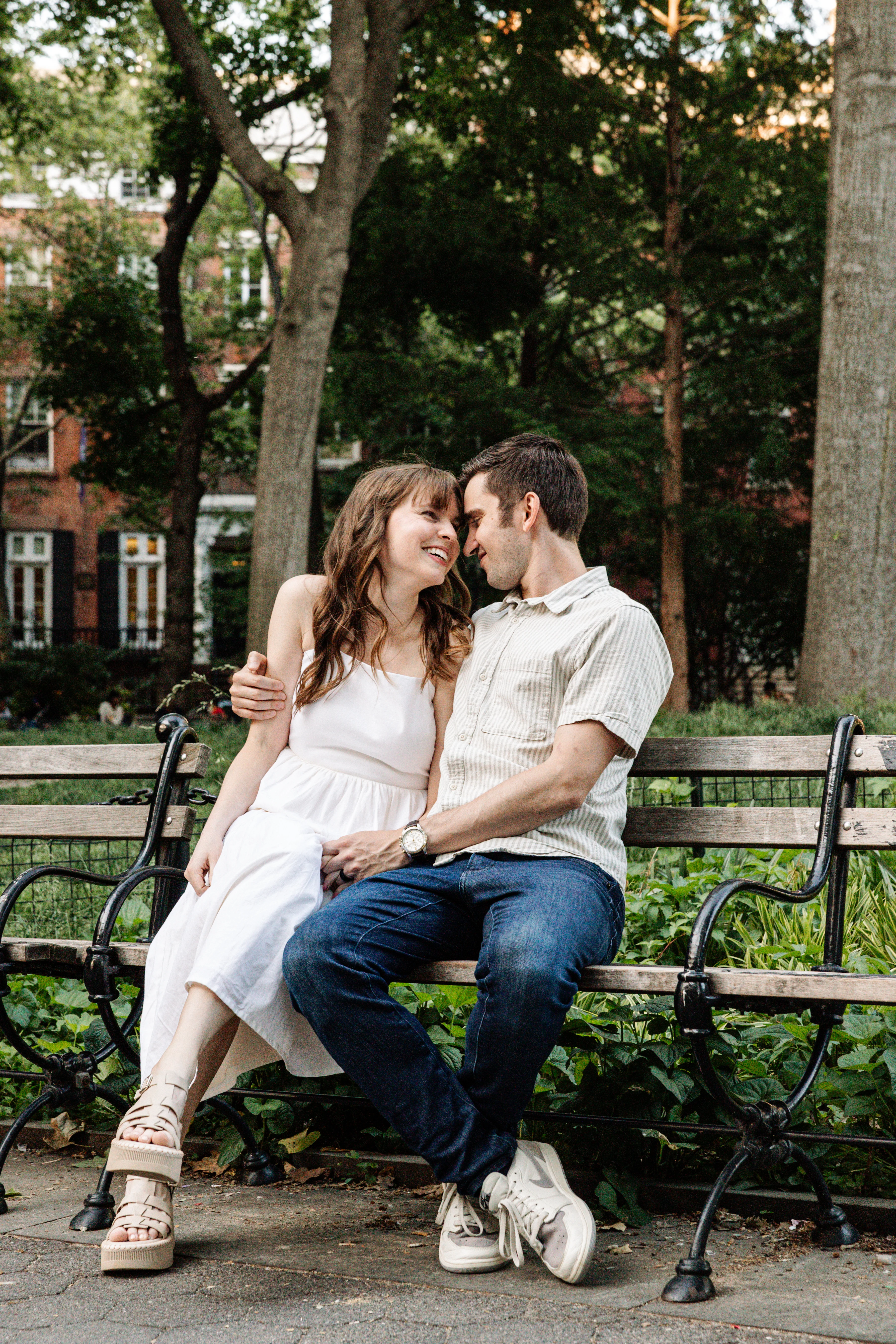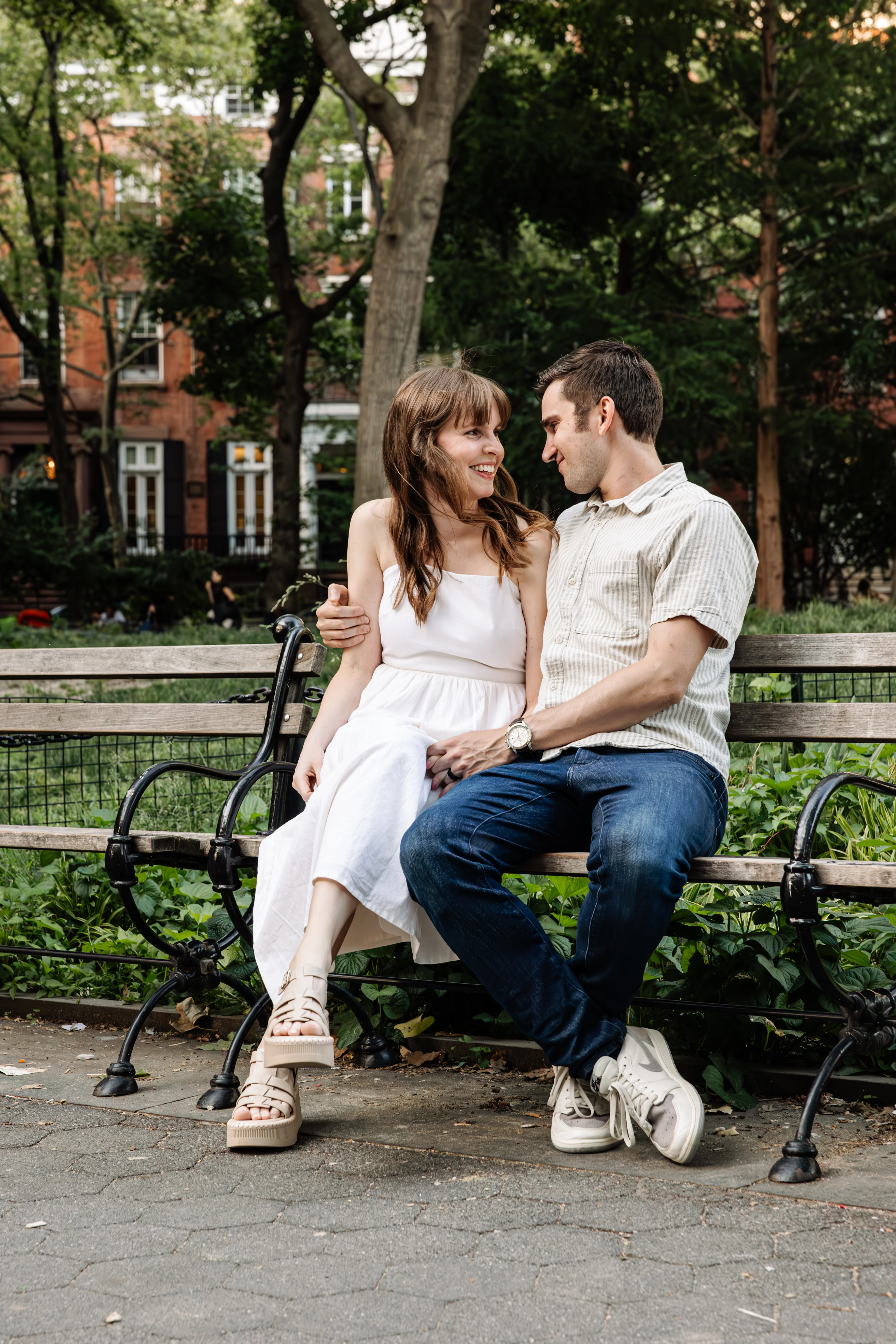 It was warm, Maggie was in all white - already David's wife for years, and still very much his bride. We started at Washington Mews and wound our way through the streets of Greenwich Village, yellow cabs rolling by in that perfectly chaotic way, through Washington Square Park (with the fountain bursting!), all the way to the middle of Sixth Avenue where IYKYK — one of the best views of the Freedom Tower in the entire city. We finished up right outside of their subway stop.