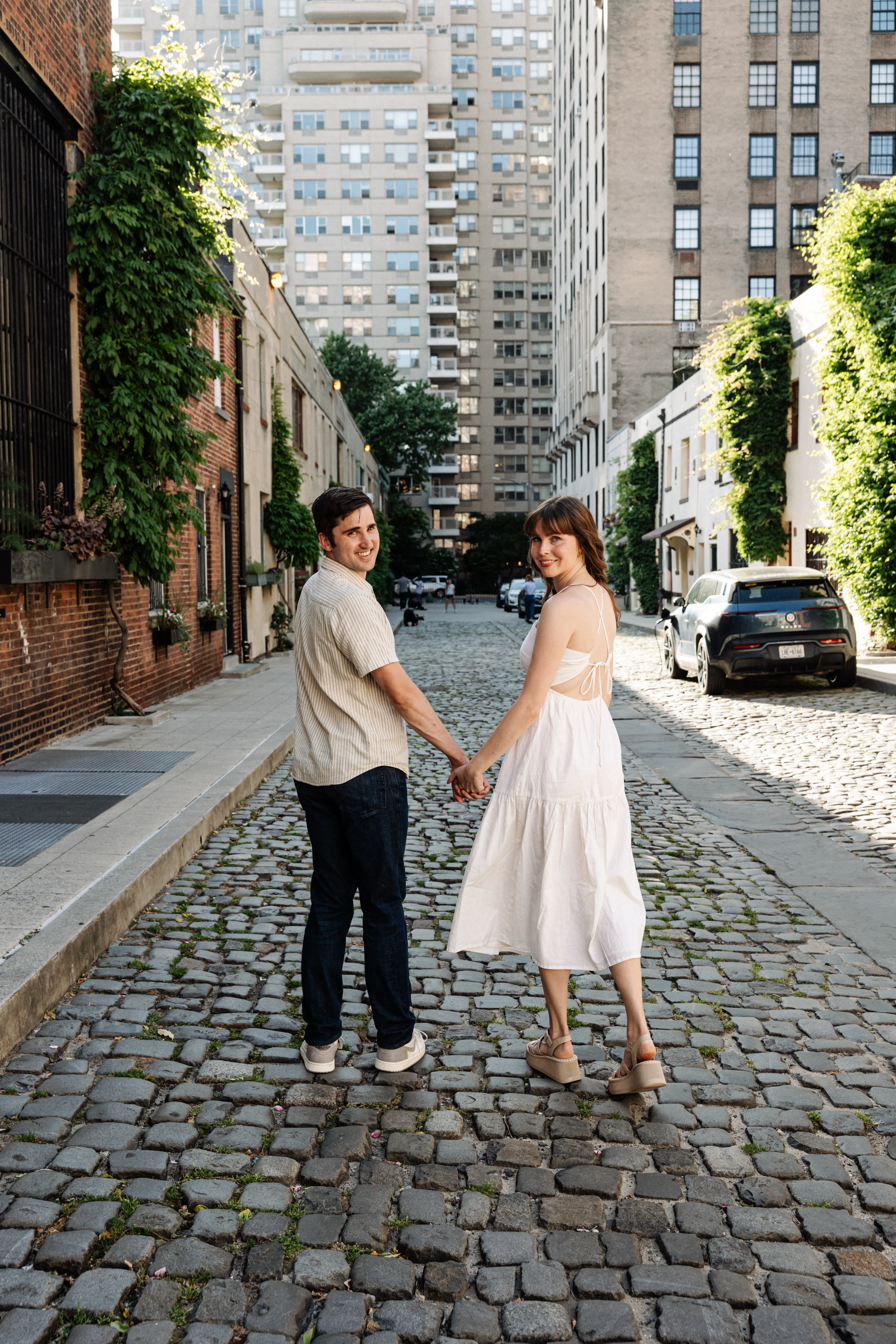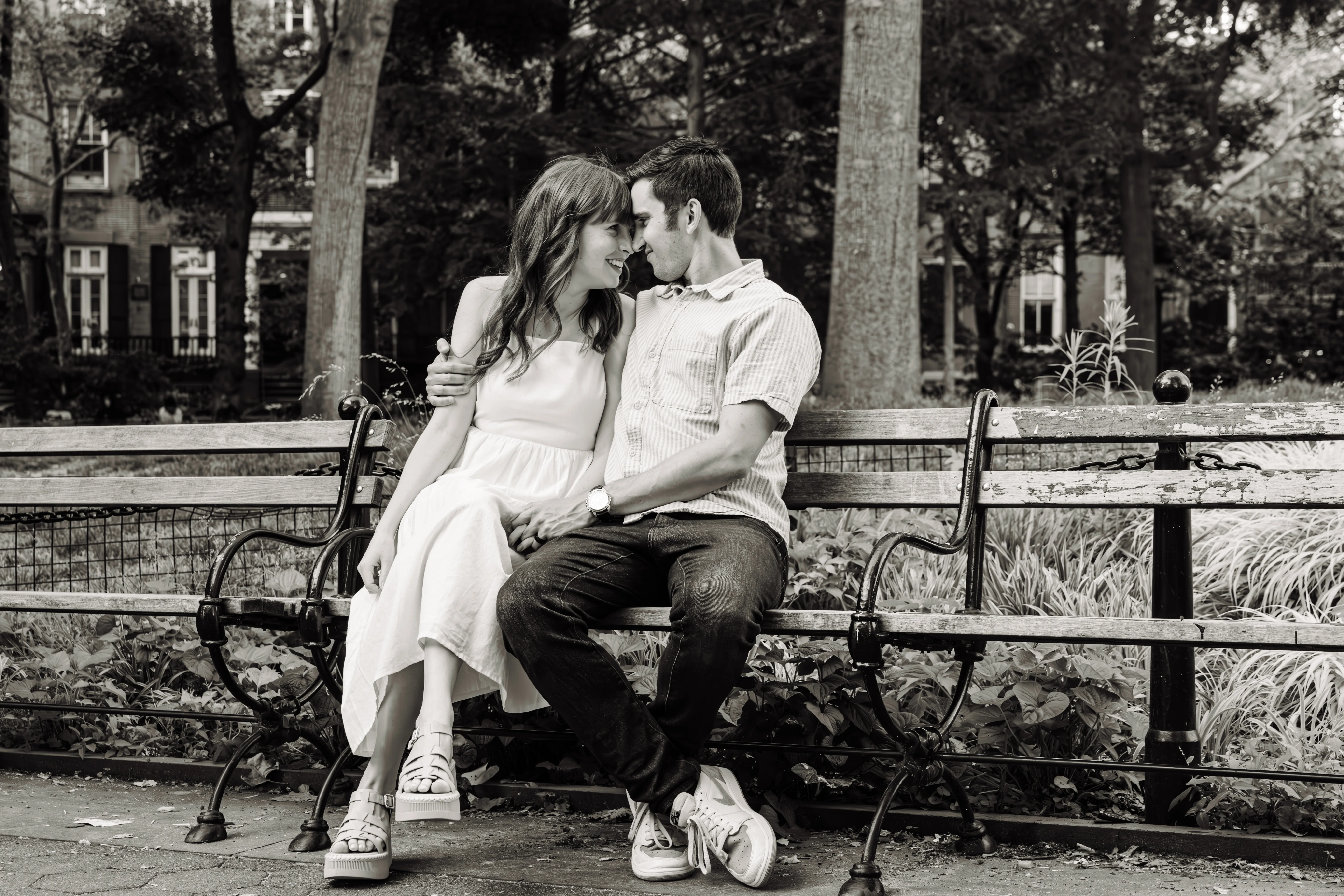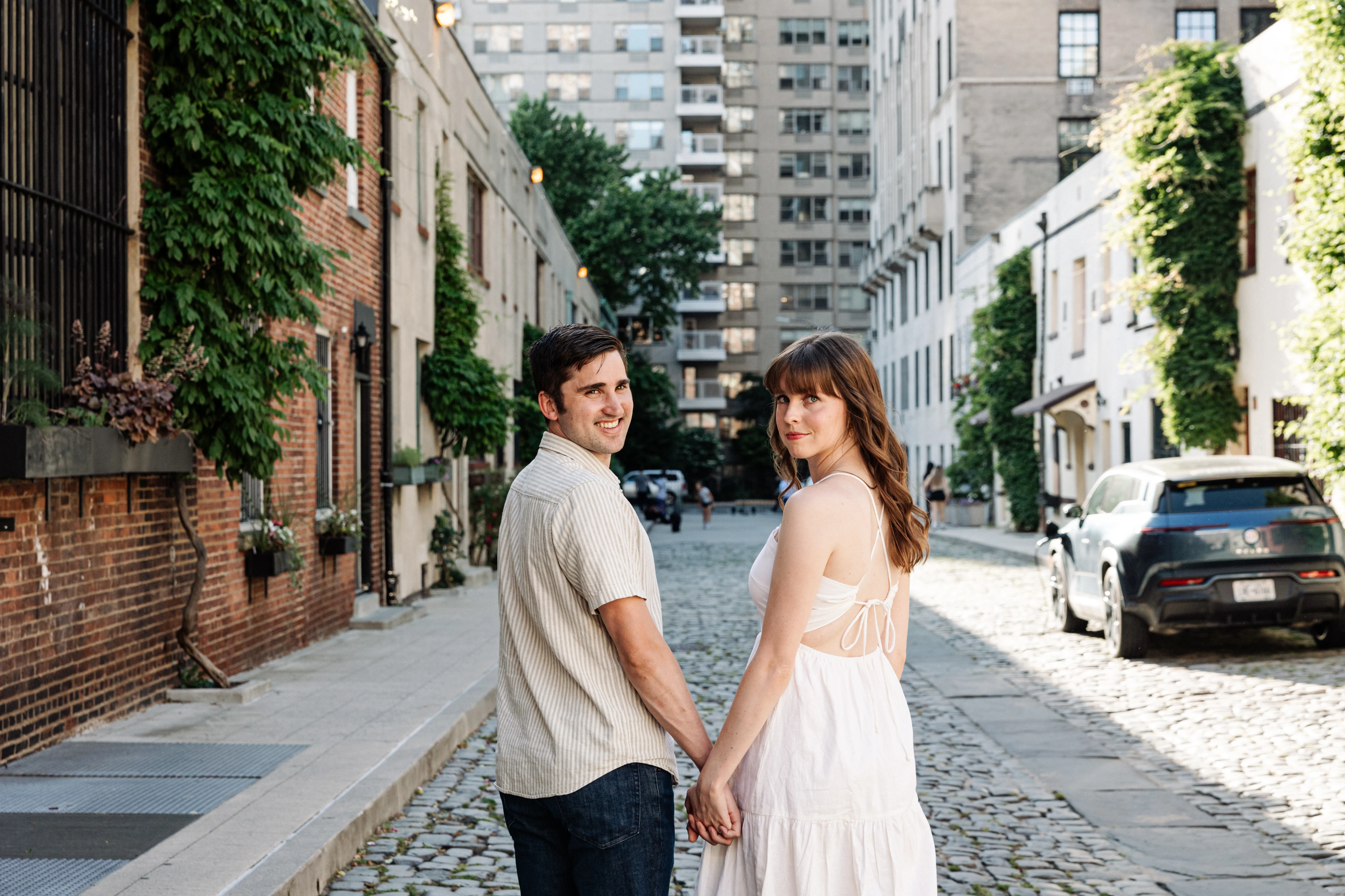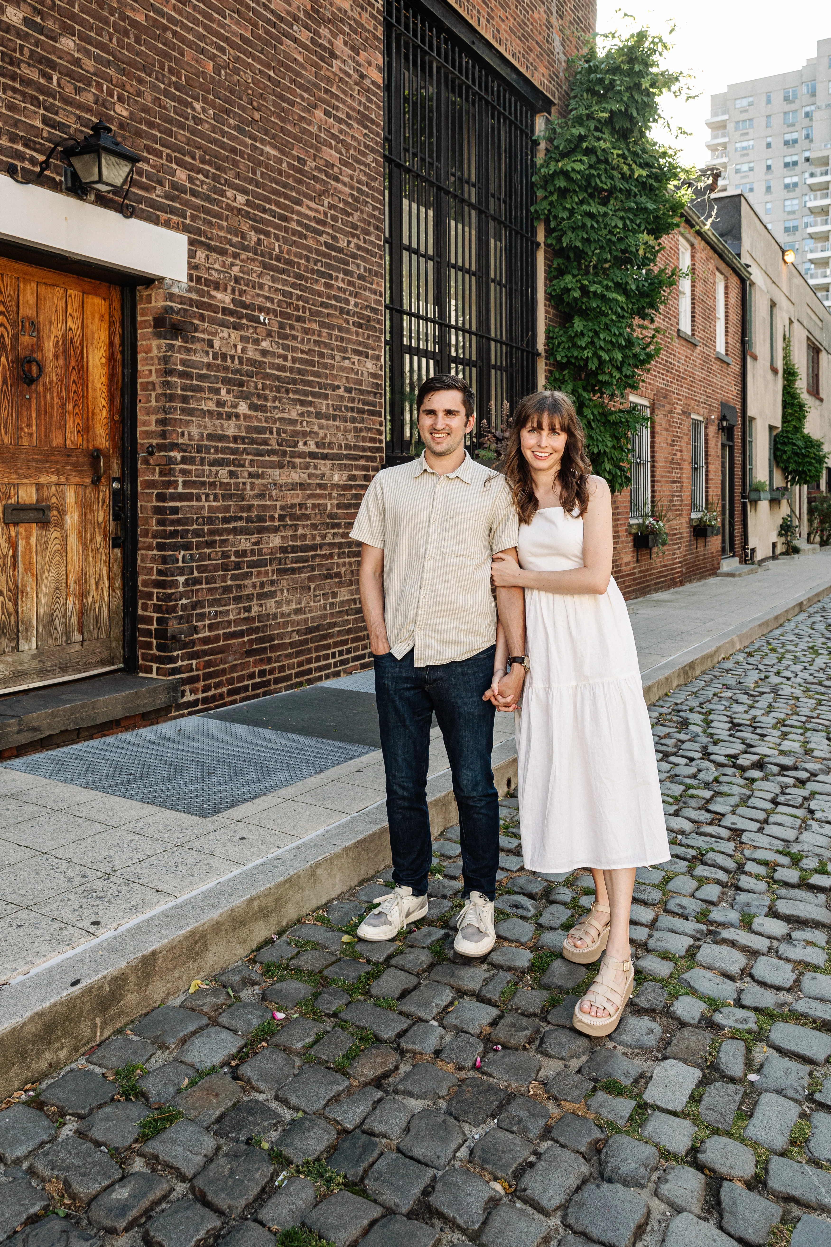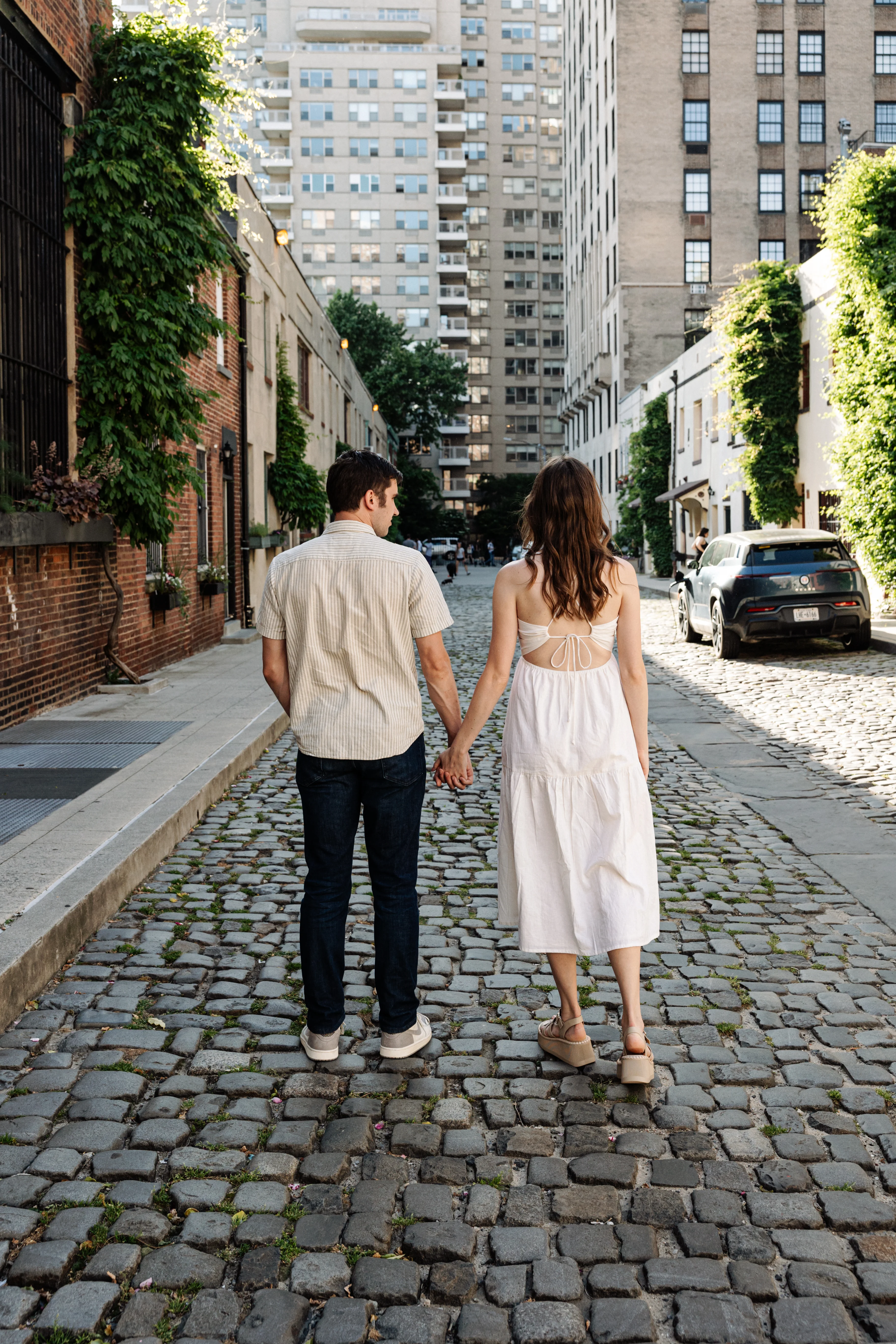 It was warm, Maggie was in all white - already David's wife for years, and still very much his bride. We started at Washington Mews and wound our way through the streets of Greenwich Village, yellow cabs rolling by in that perfectly chaotic way, through Washington Square Park (with the fountain bursting!), all the way to the middle of Sixth Avenue where IYKYK — one of the best views of the Freedom Tower in the entire city. We finished up right outside of their subway stop.