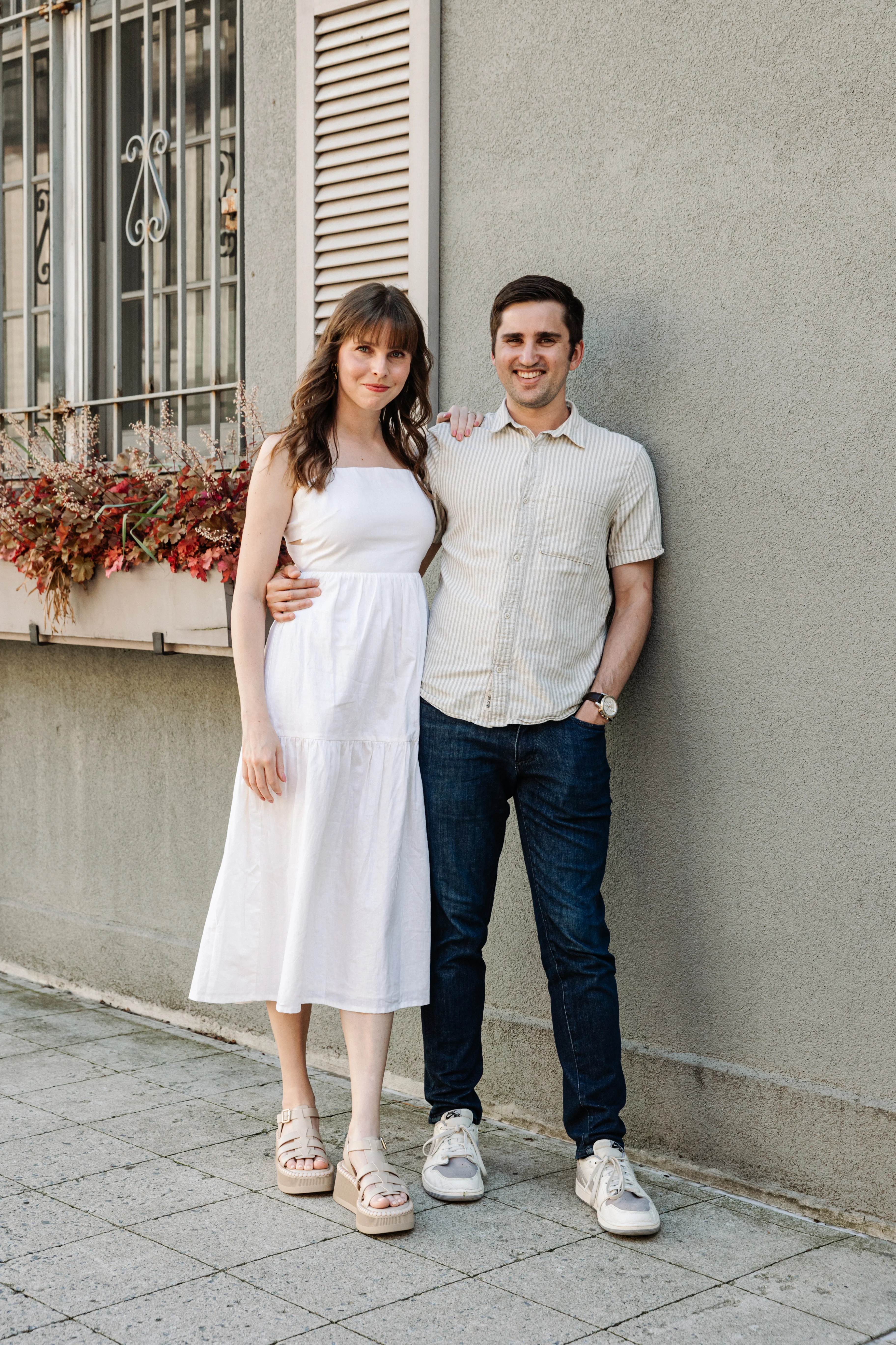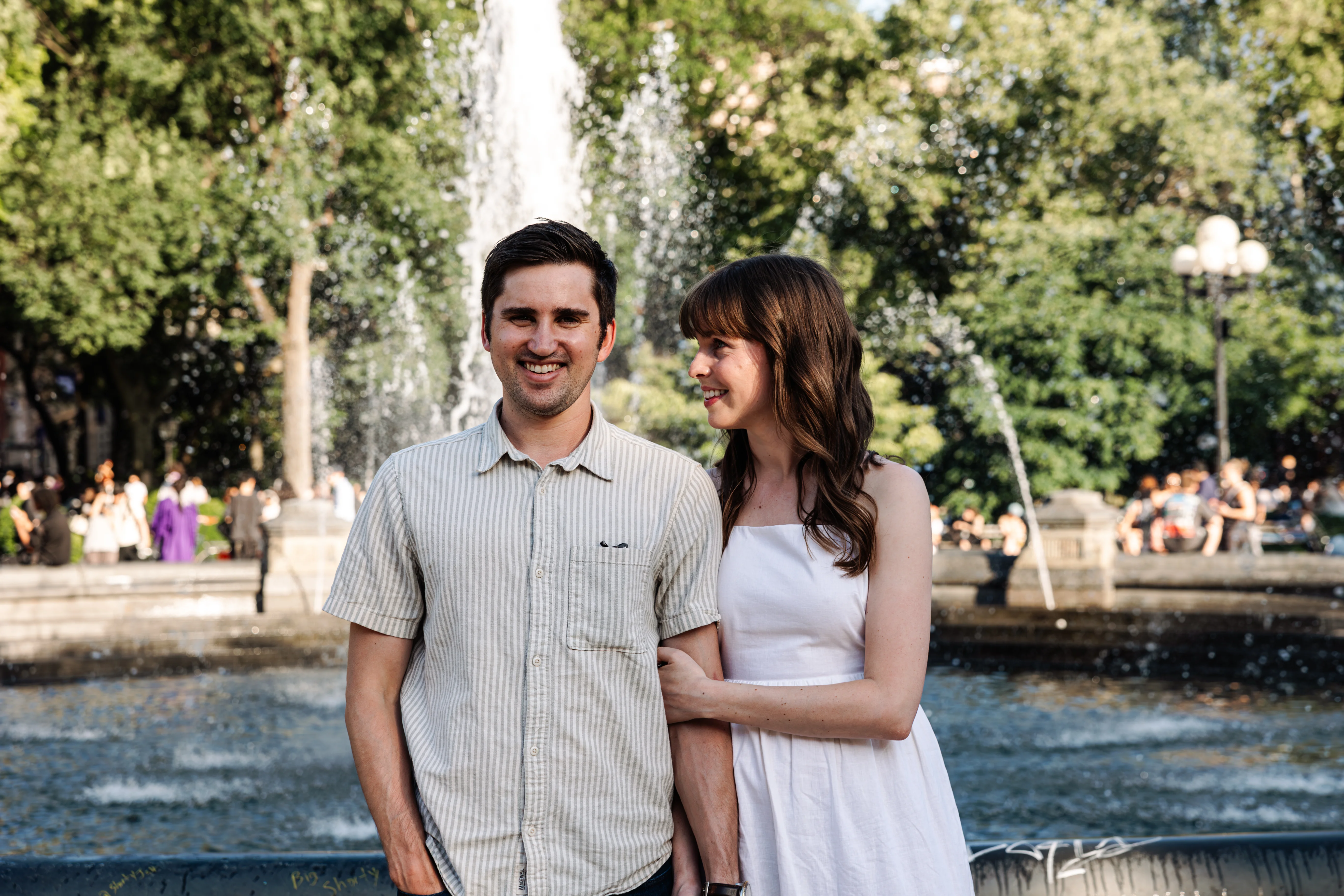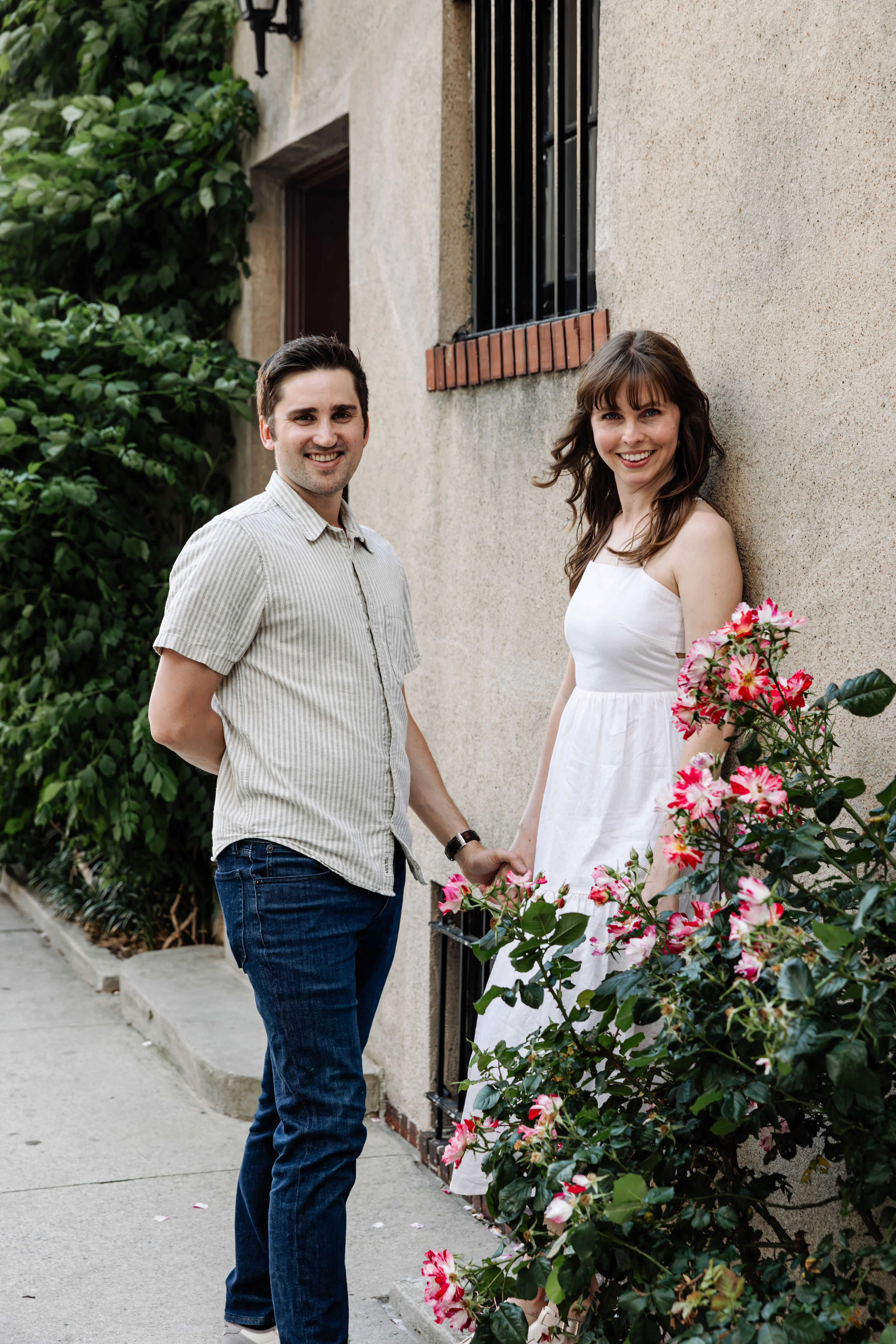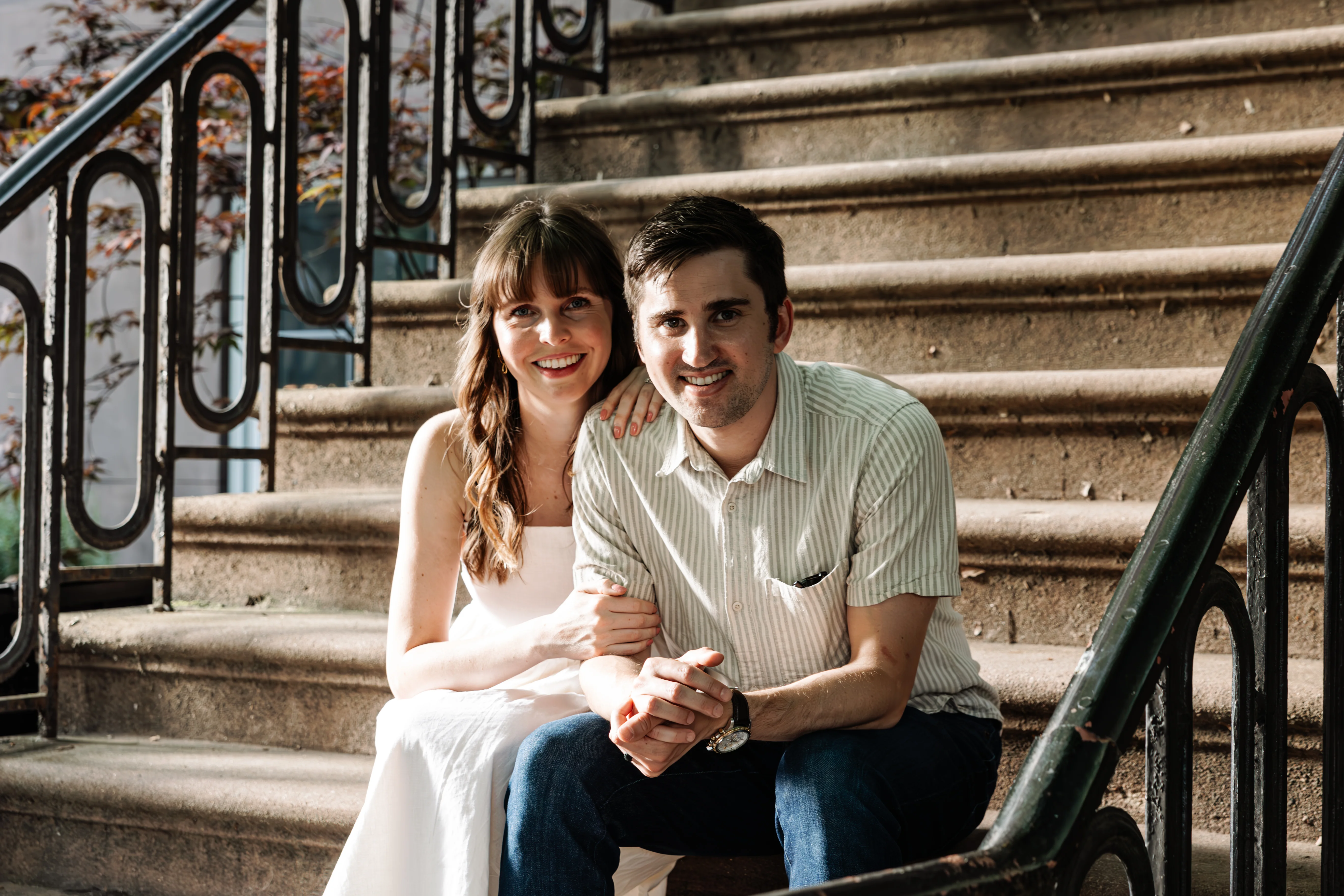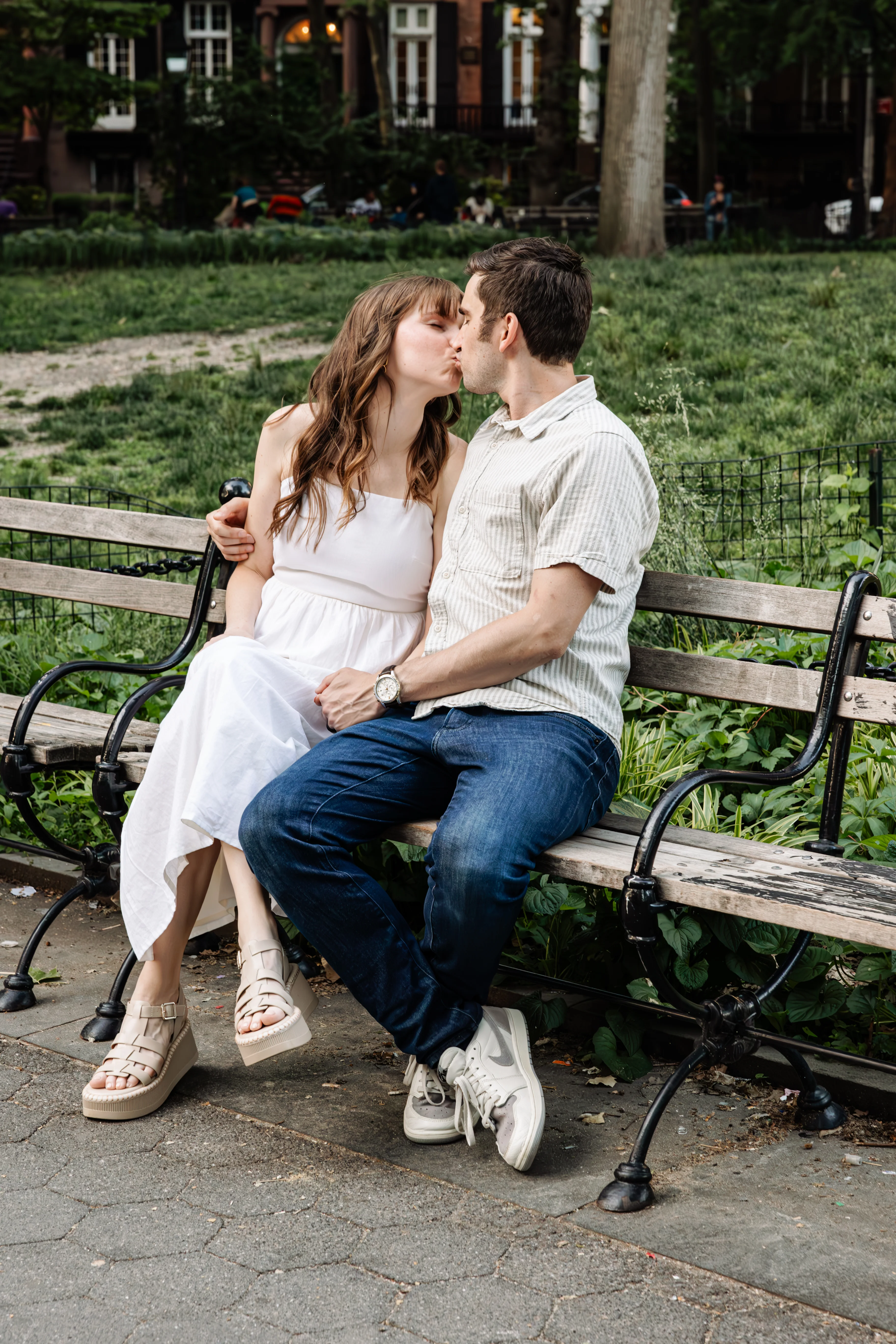 It was warm, Maggie was in all white - already David's wife for years, and still very much his bride. We started at Washington Mews and wound our way through the streets of Greenwich Village, yellow cabs rolling by in that perfectly chaotic way, through Washington Square Park (with the fountain bursting!), all the way to the middle of Sixth Avenue where IYKYK — one of the best views of the Freedom Tower in the entire city. We finished up right outside of their subway stop.