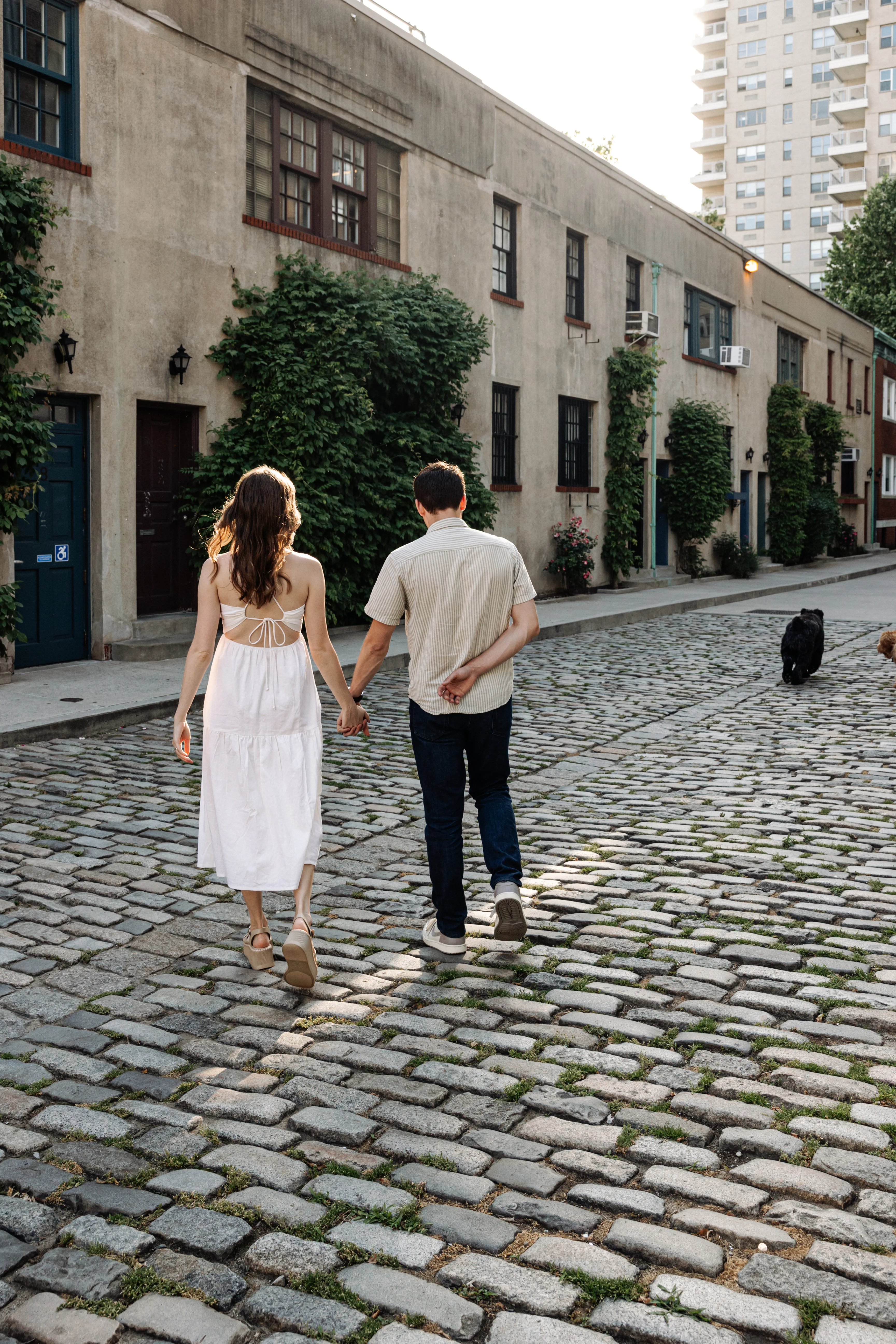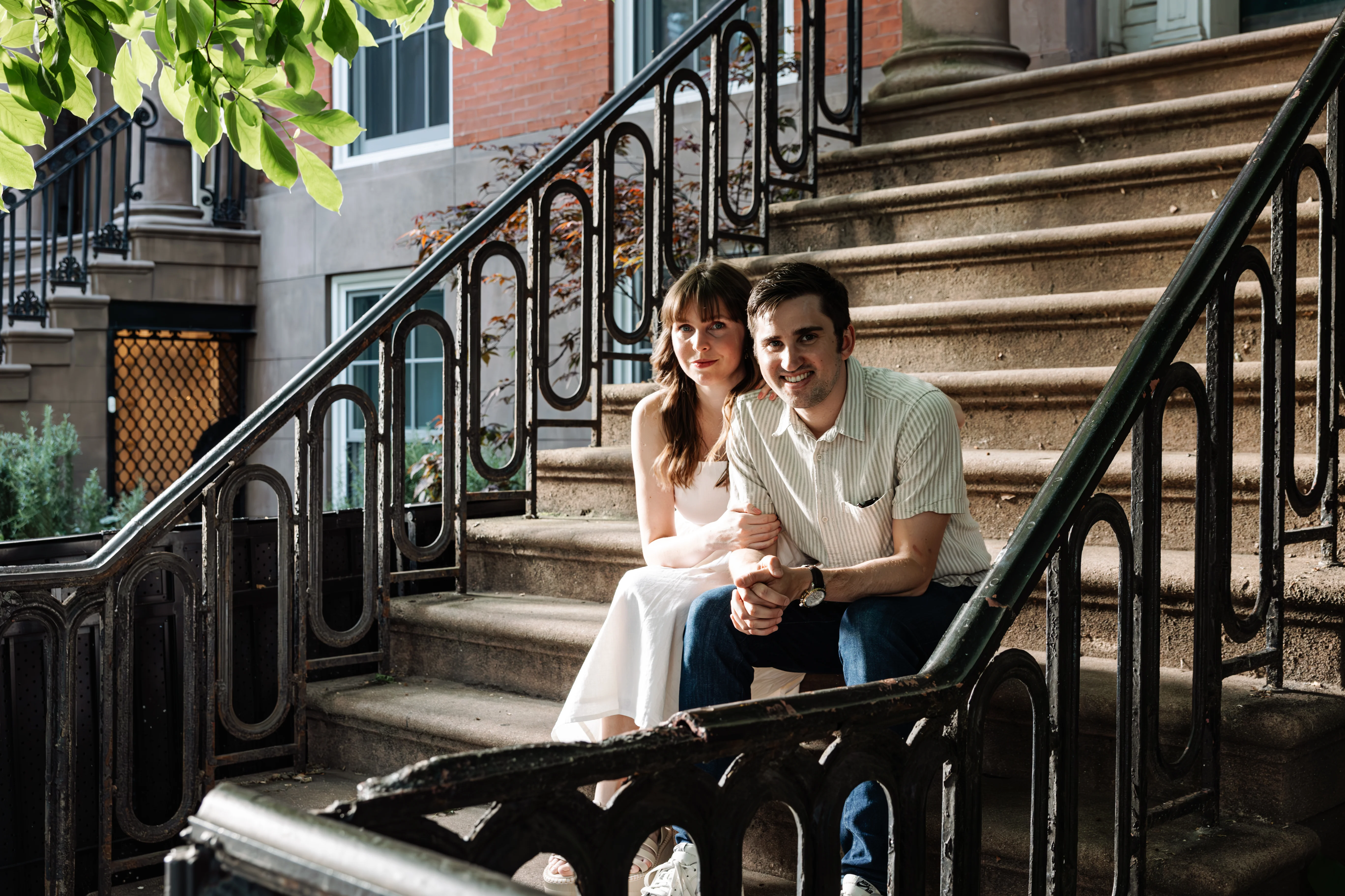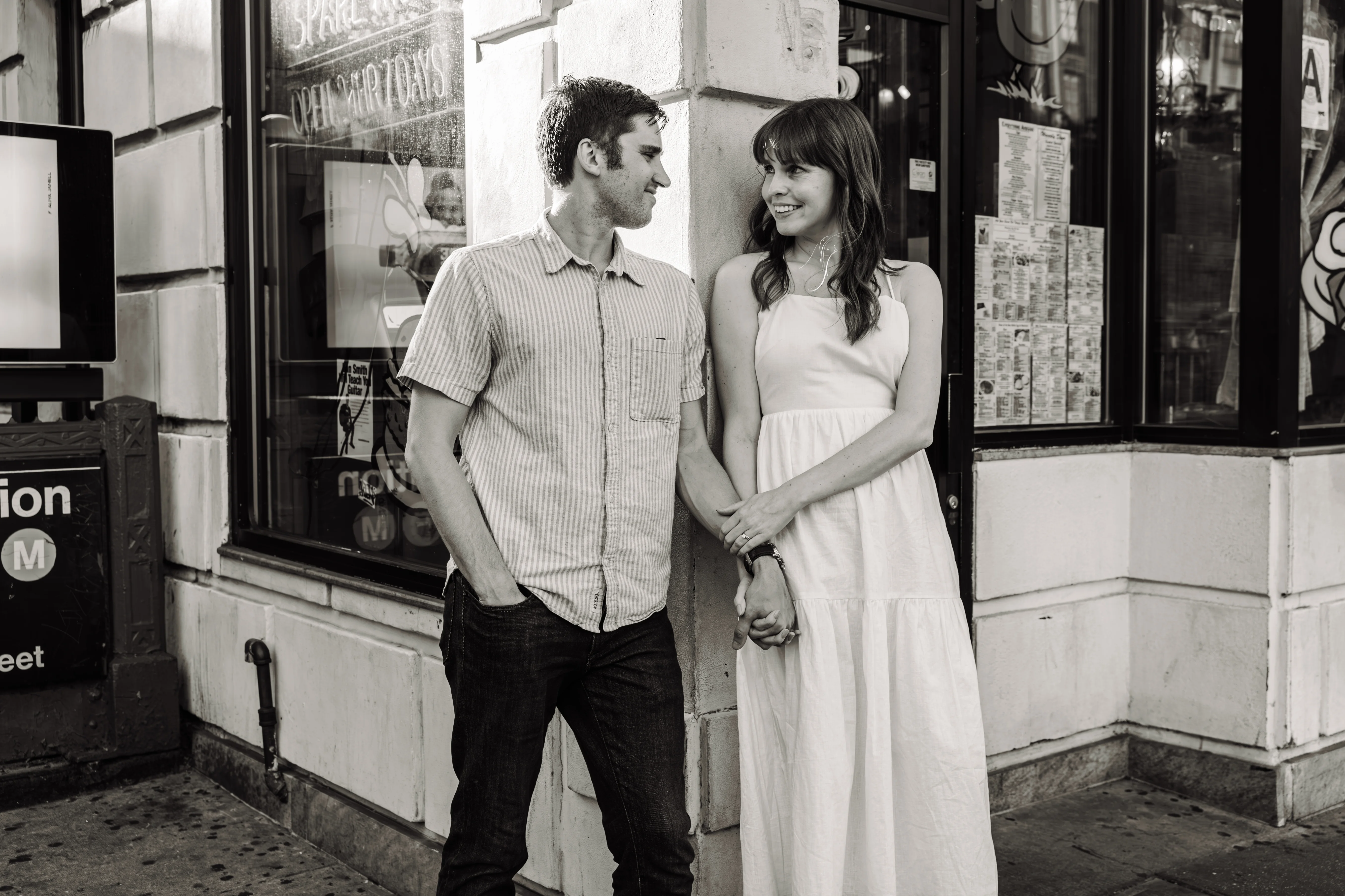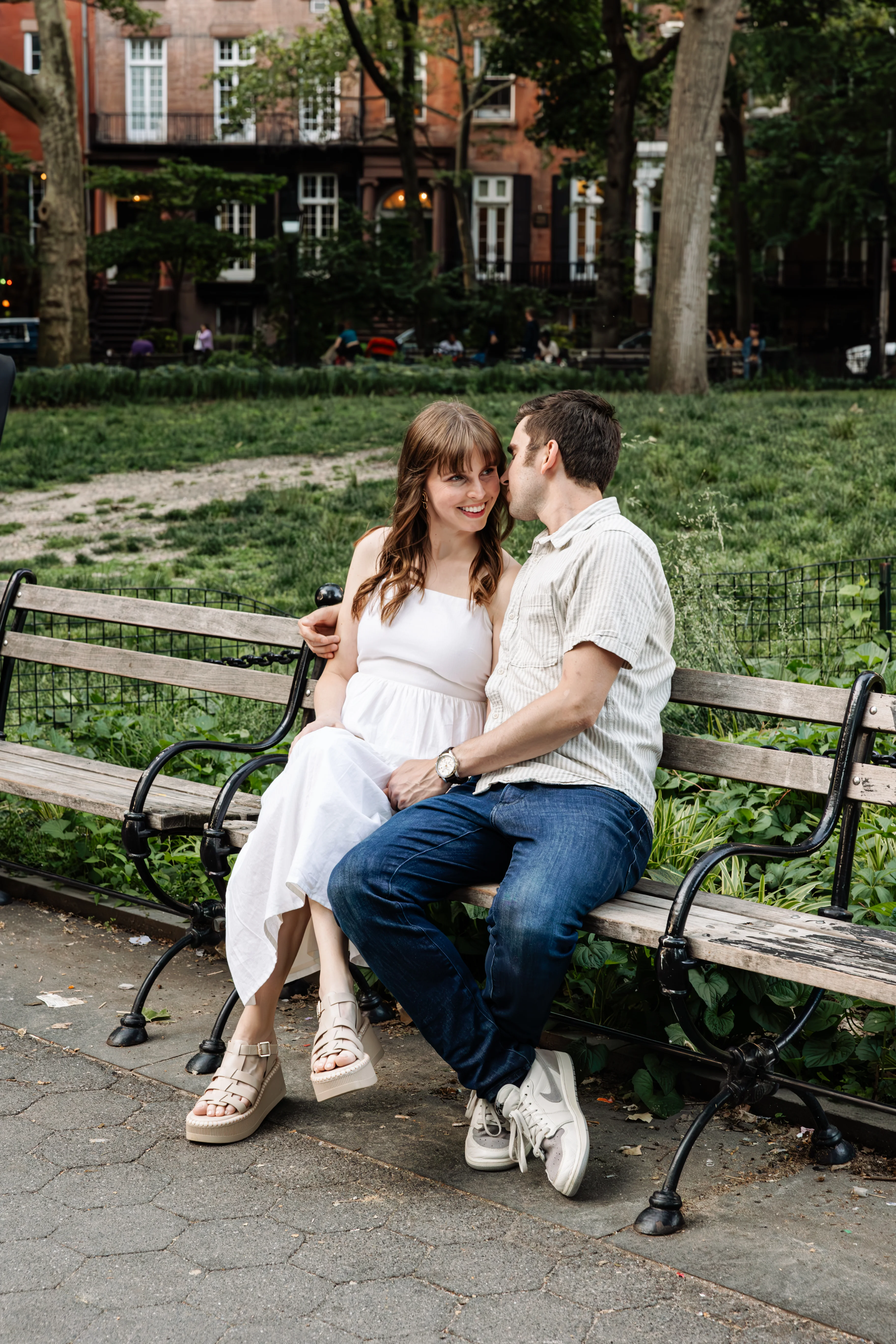 It was warm, Maggie was in all white - already David's wife for years, and still very much his bride. We started at Washington Mews and wound our way through the streets of Greenwich Village, yellow cabs rolling by in that perfectly chaotic way, through Washington Square Park (with the fountain bursting!), all the way to the middle of Sixth Avenue where IYKYK — one of the best views of the Freedom Tower in the entire city. We finished up right outside of their subway stop.
