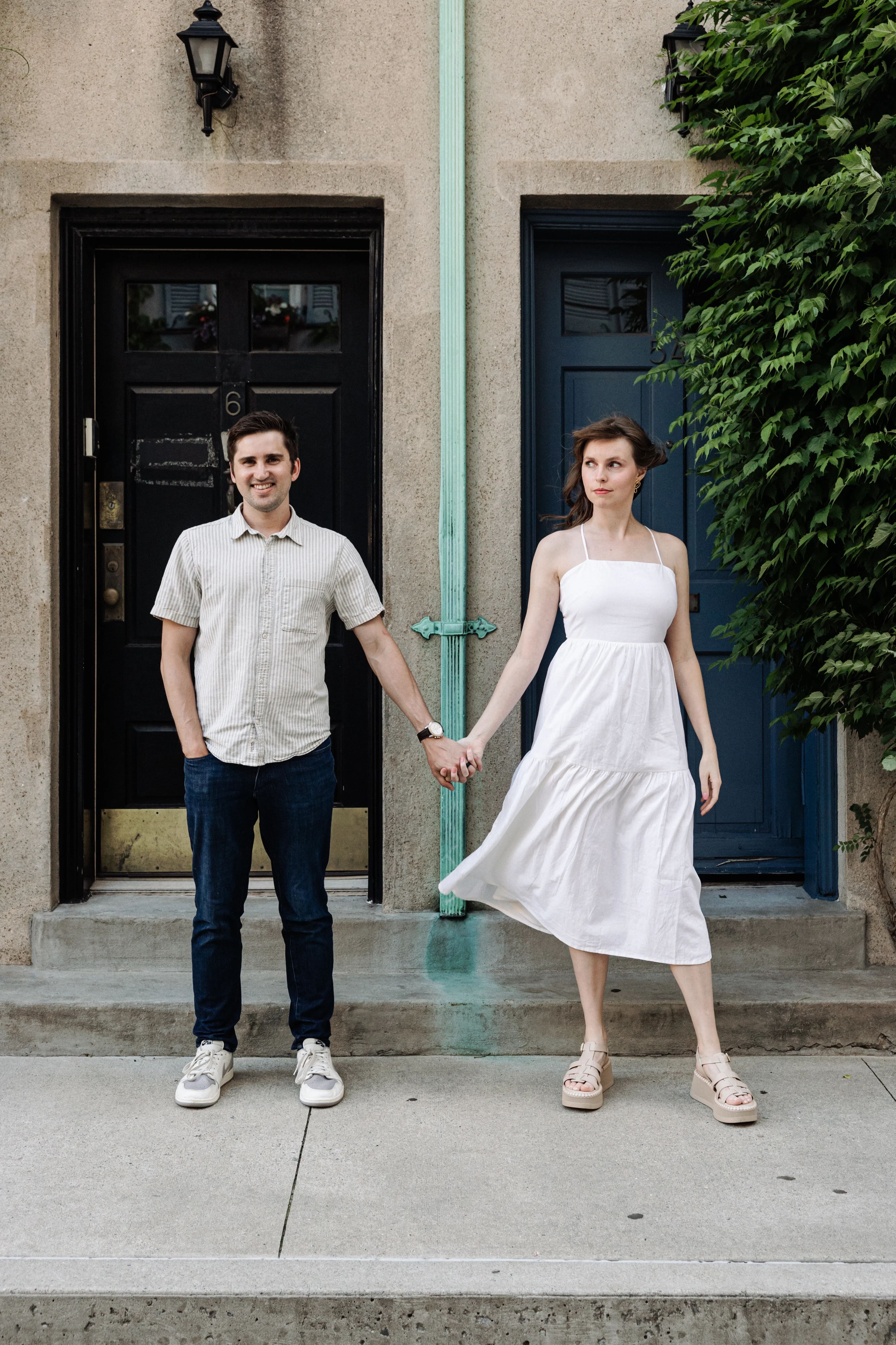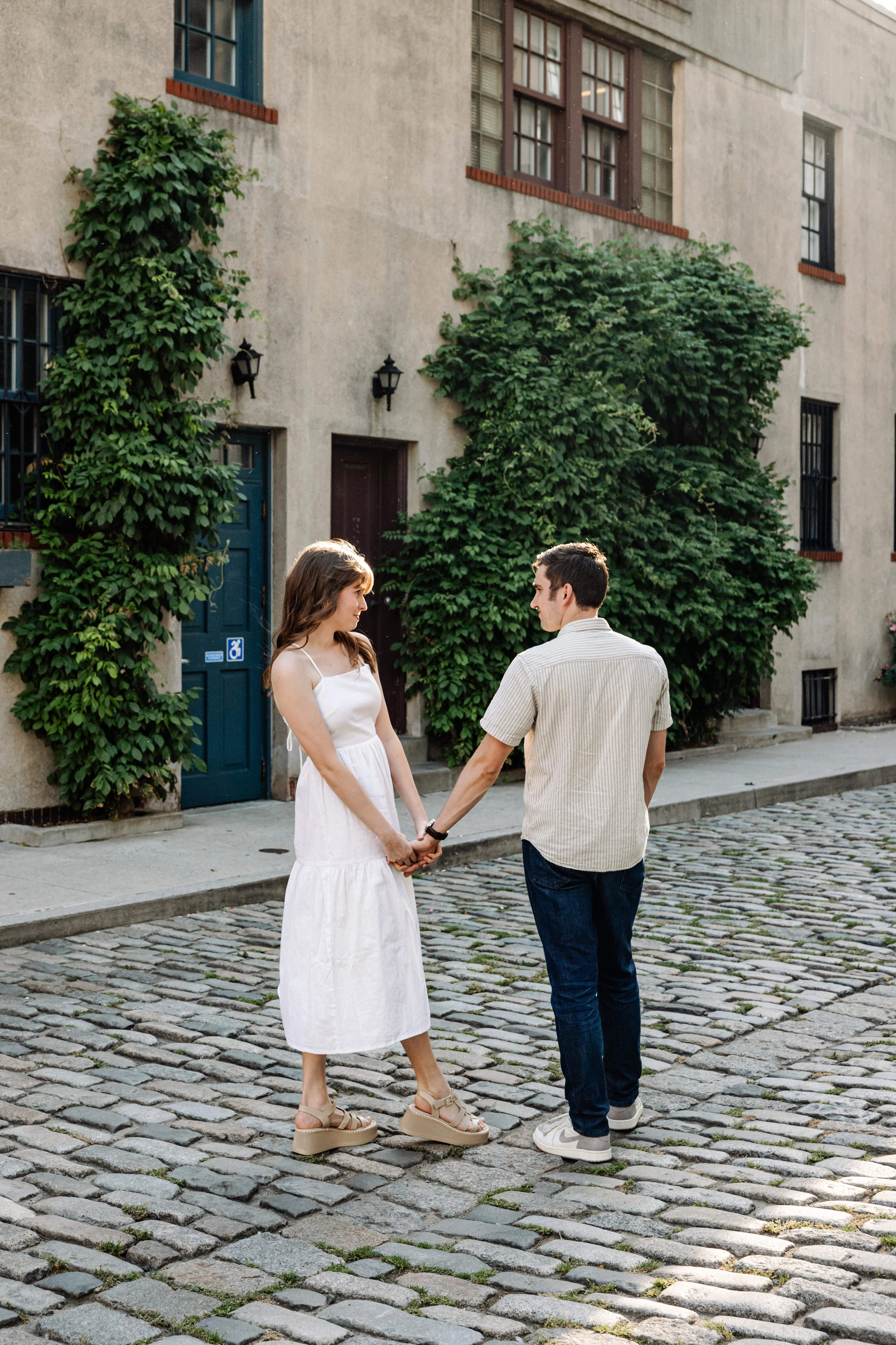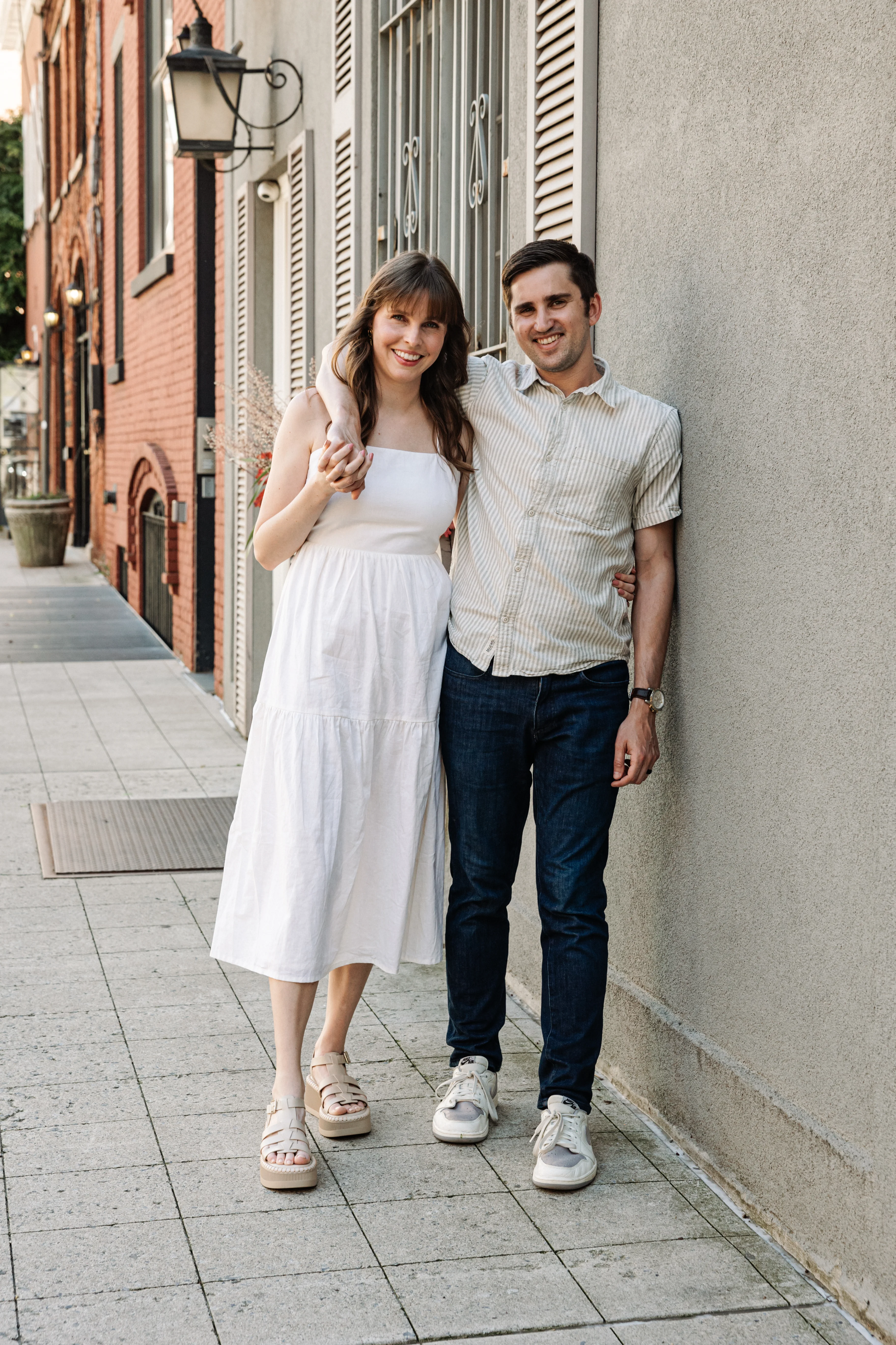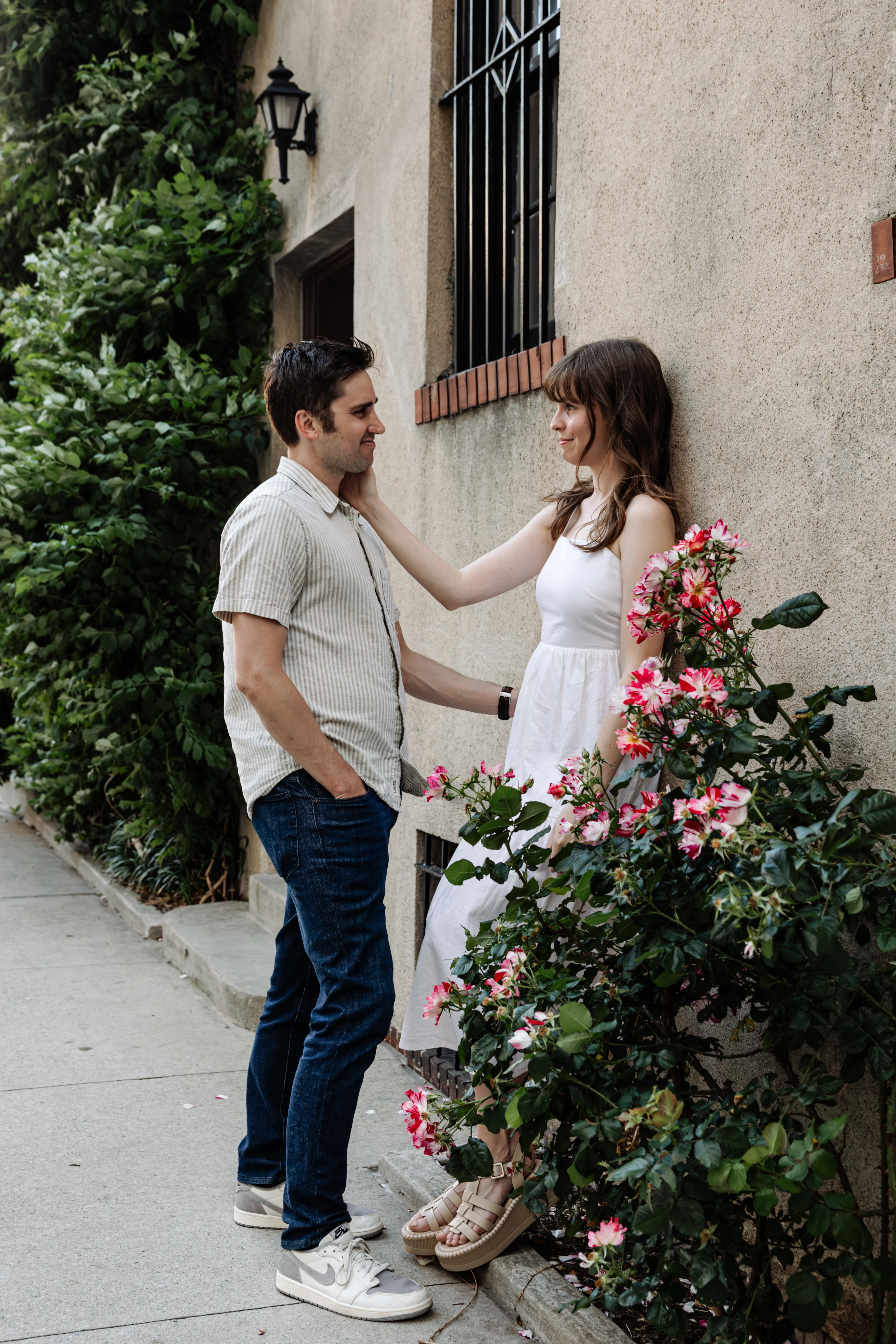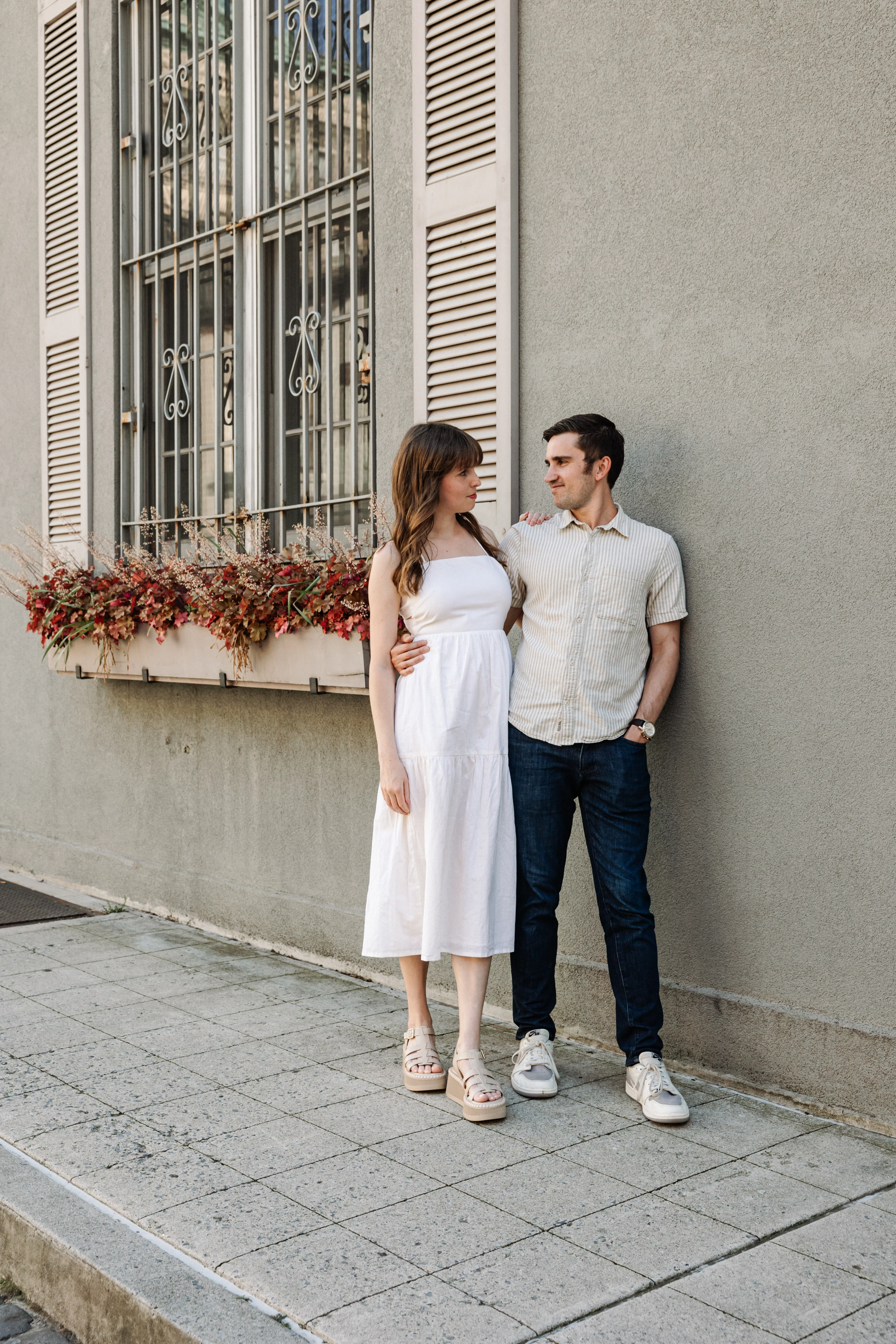 It was warm, Maggie was in all white - already David's wife for years, and still very much his bride. We started at Washington Mews and wound our way through the streets of Greenwich Village, yellow cabs rolling by in that perfectly chaotic way, through Washington Square Park (with the fountain bursting!), all the way to the middle of Sixth Avenue where IYKYK — one of the best views of the Freedom Tower in the entire city. We finished up right outside of their subway stop.