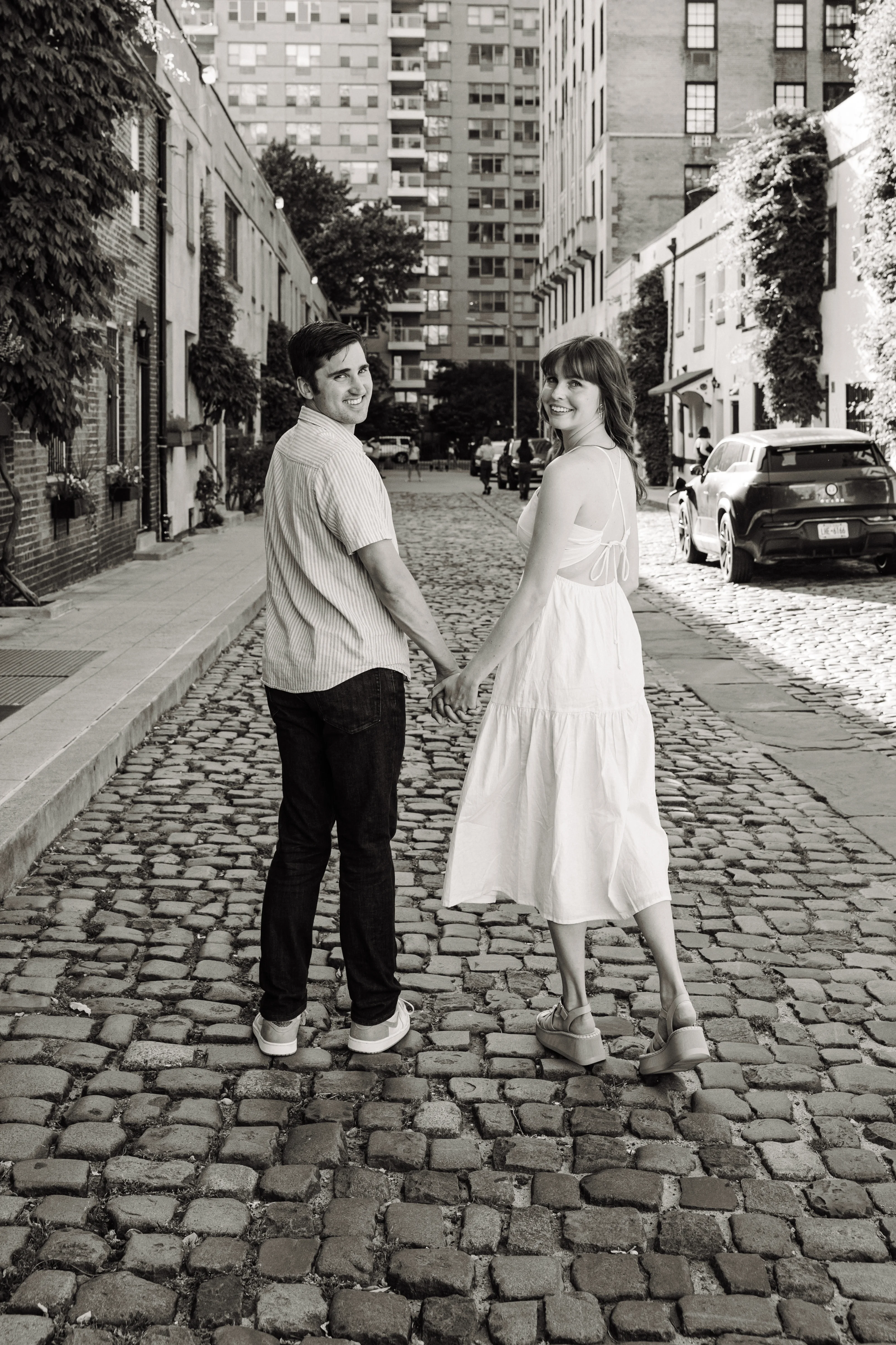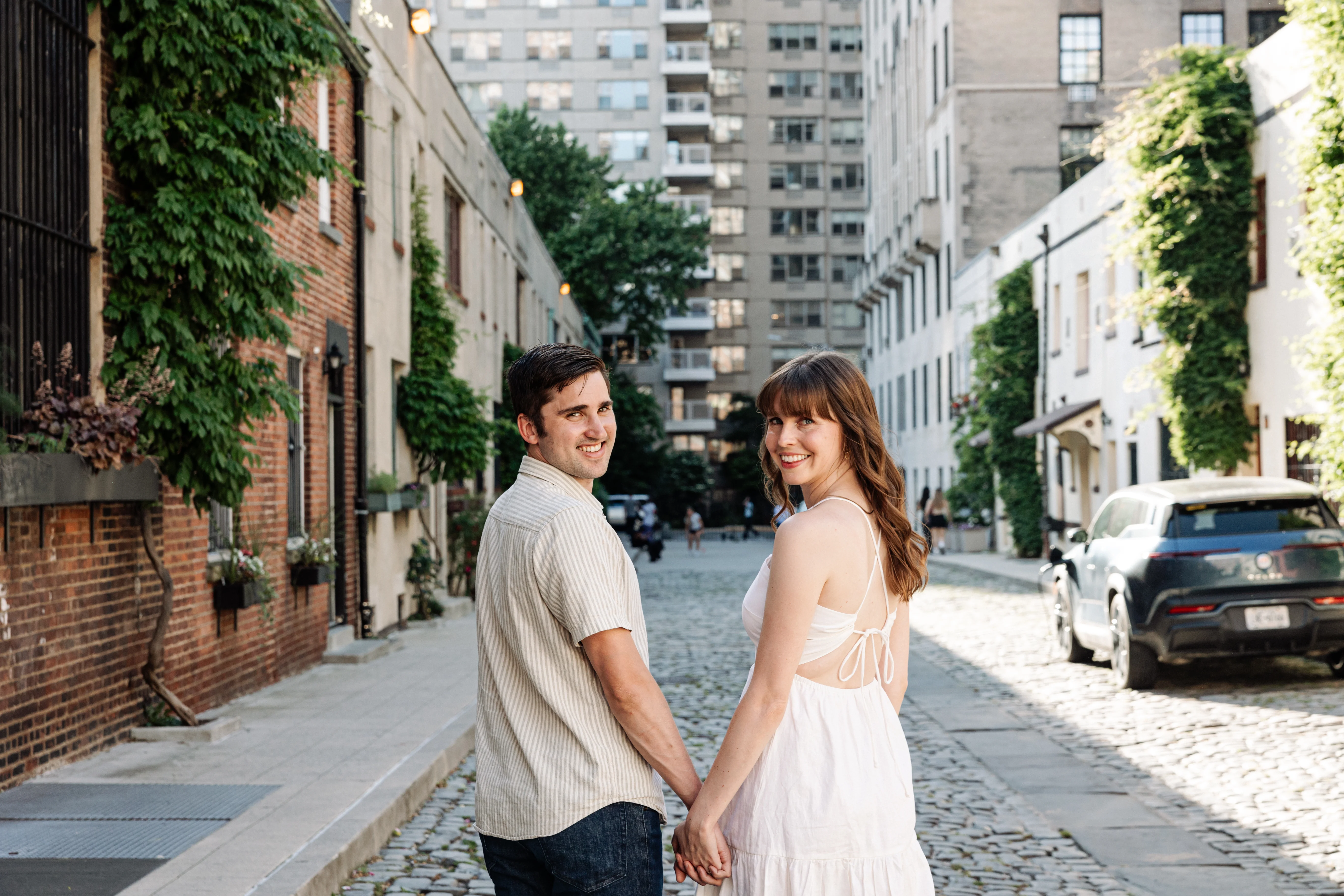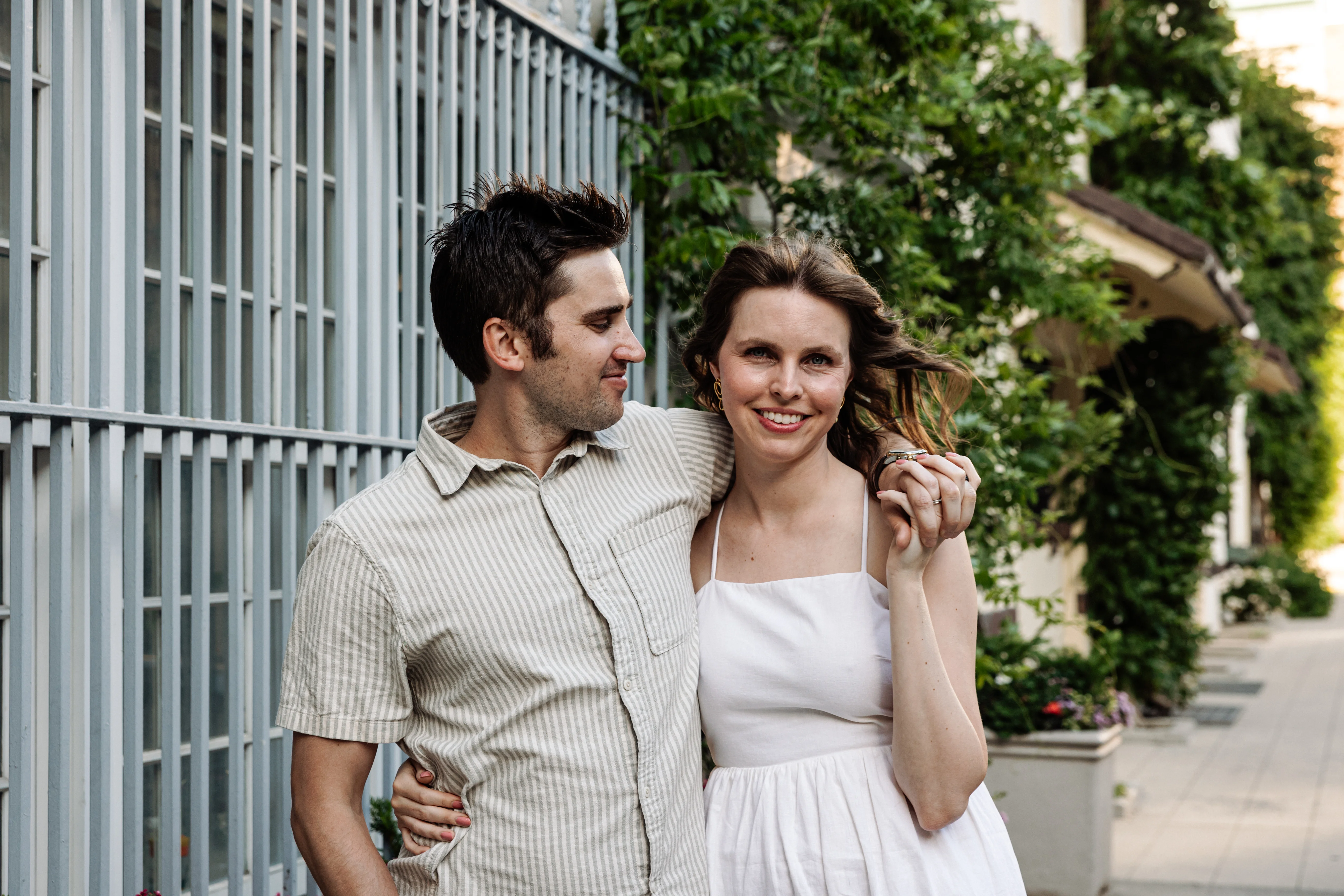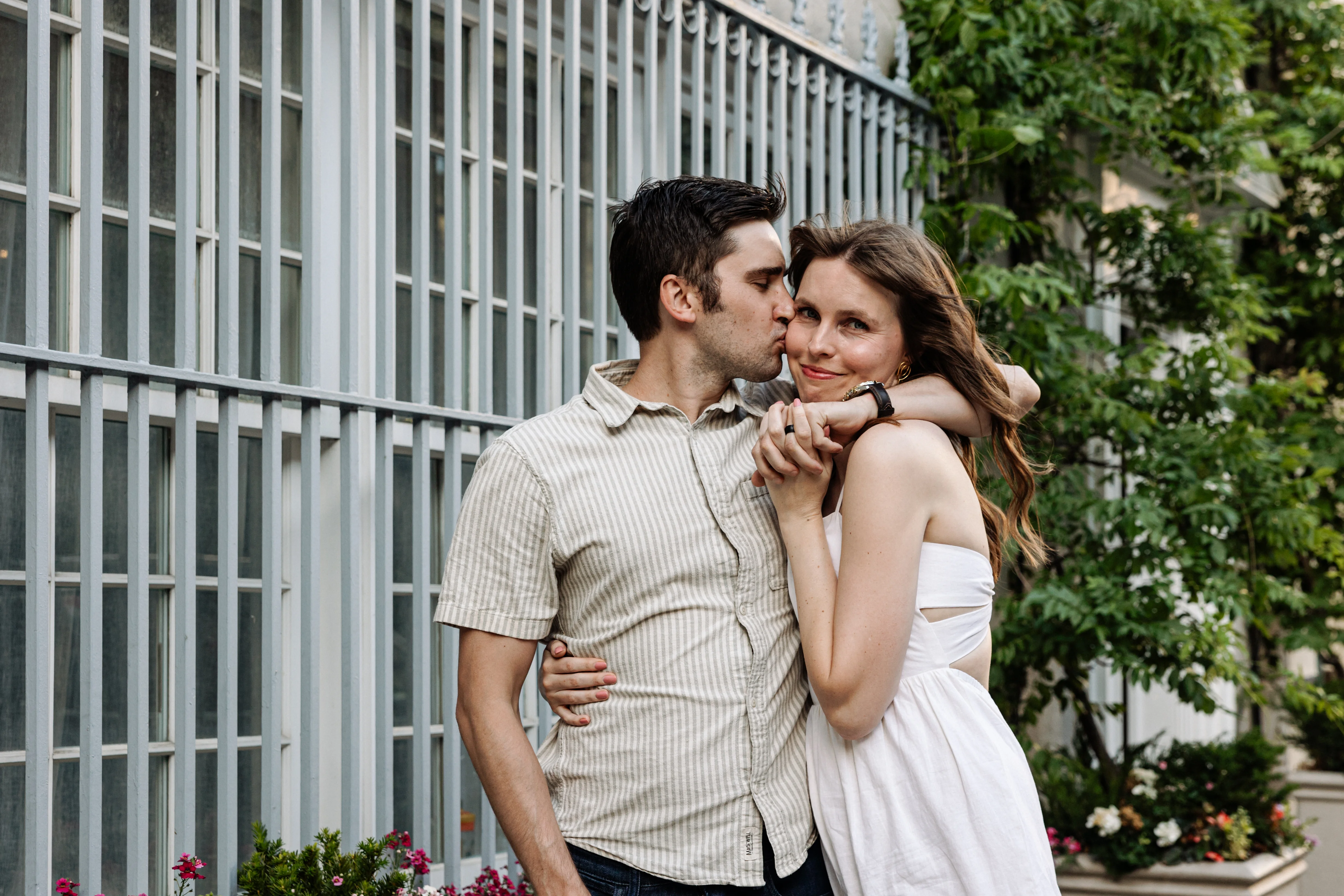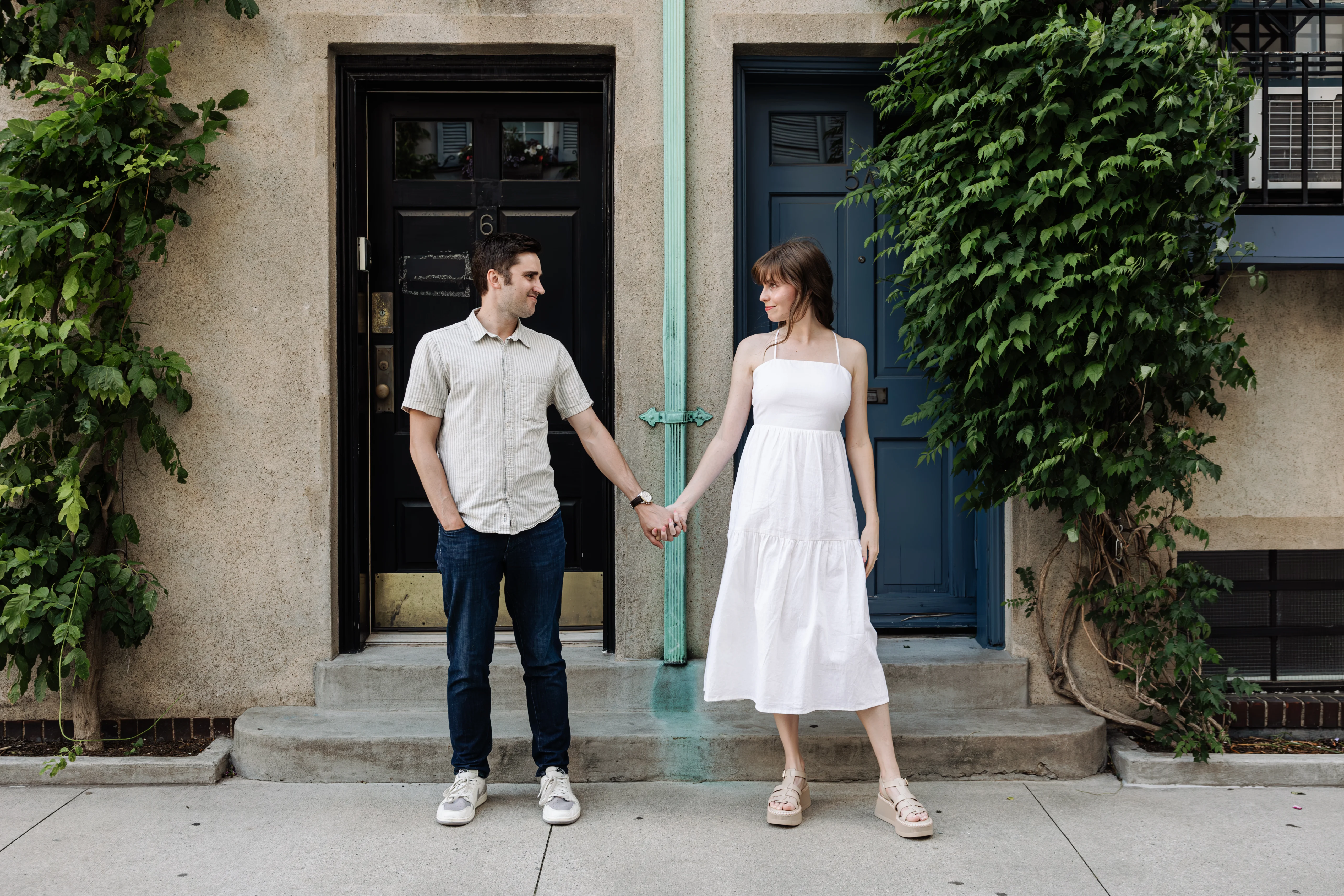 It was warm, Maggie was in all white - already David's wife for years, and still very much his bride. We started at Washington Mews and wound our way through the streets of Greenwich Village, yellow cabs rolling by in that perfectly chaotic way, through Washington Square Park (with the fountain bursting!), all the way to the middle of Sixth Avenue where IYKYK — one of the best views of the Freedom Tower in the entire city. We finished up right outside of their subway stop.